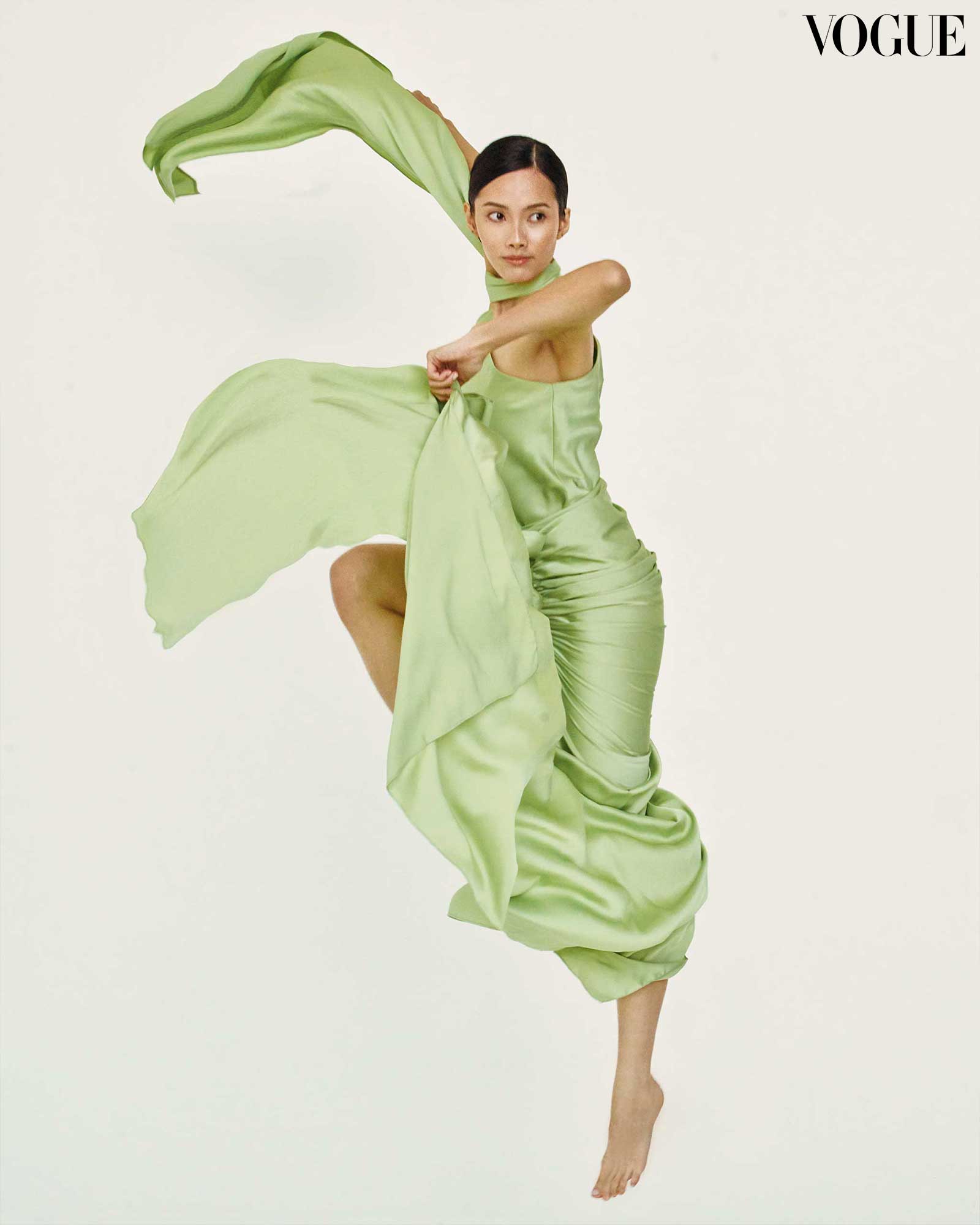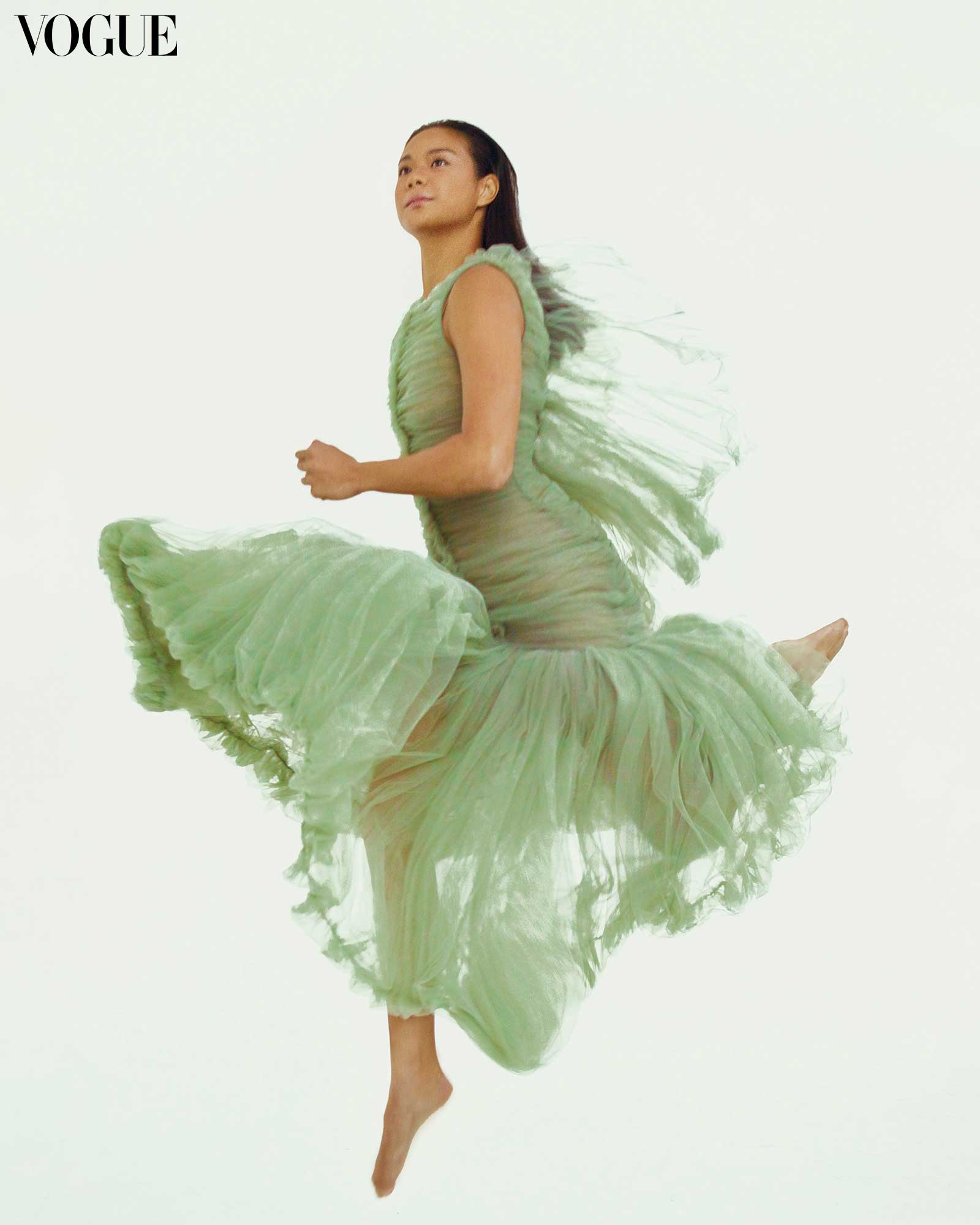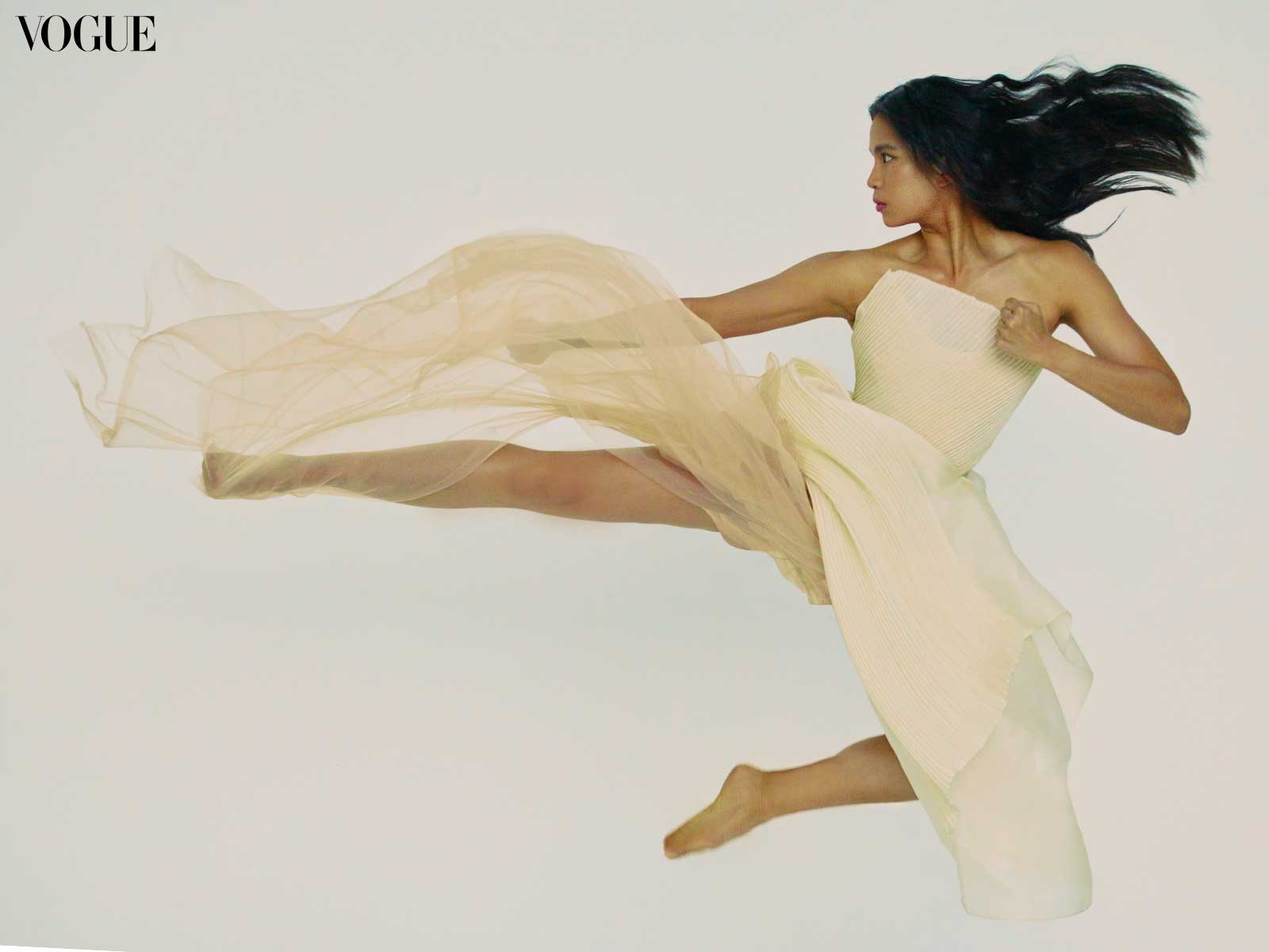 Wushu athlete Agatha Wong wears a MARTIN BAUTISTA dress. Photographed by Mark Nicdao for the July 2024 Issue of Vogue Philippines.