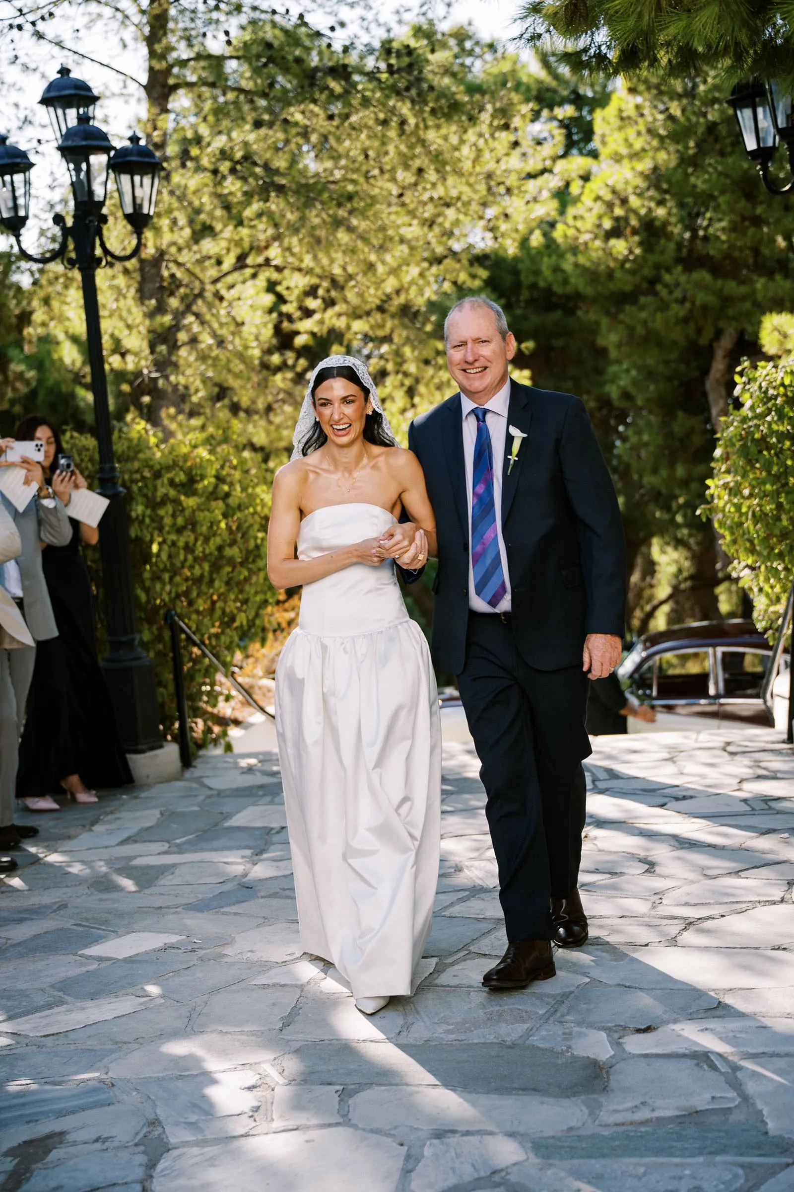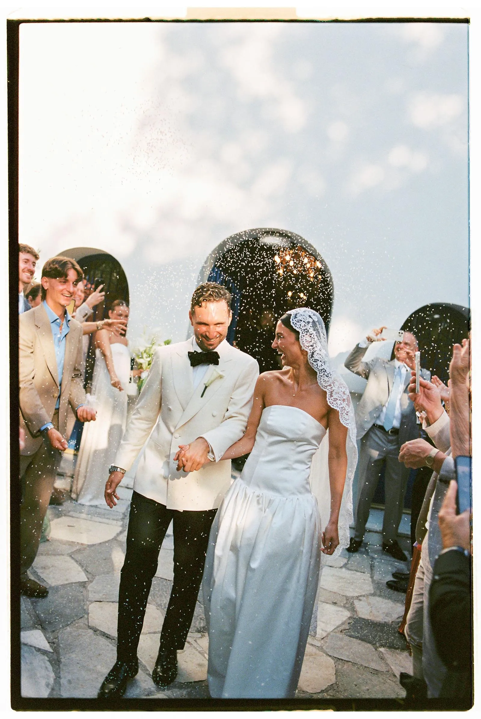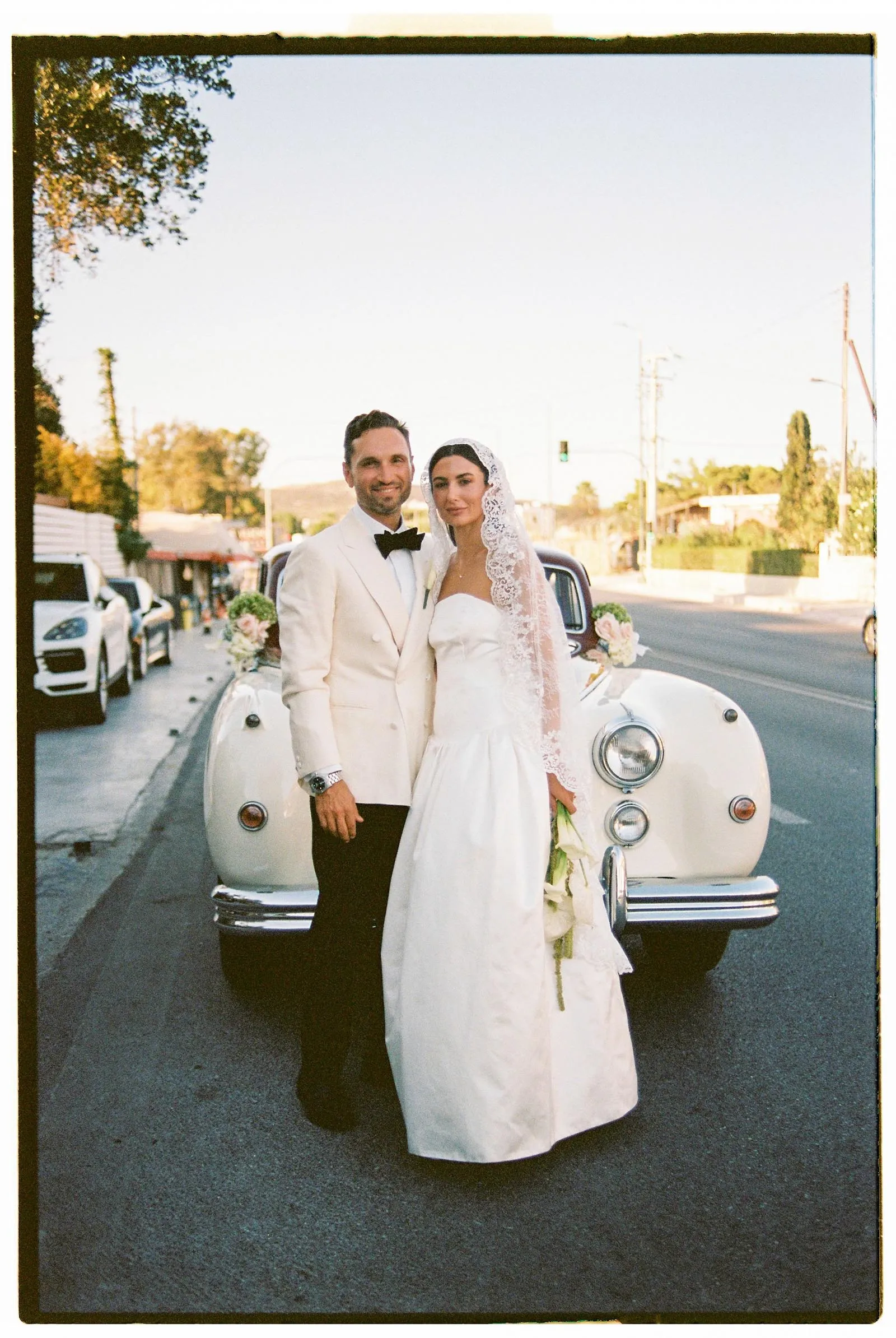 When it came to the accessories, Rebecca knew she wanted to wear a veil for her Greek Orthodox ceremony—but struggled to find the perfect one at first. “I knew I wanted a heavy lace veil around the face, so I travelled to Madrid to find one at a local market, but had no luck,” the bride explains. It was only when she came across New Zealand-based brand Harriett Falvey that she was able to find the “clean, structured” veil she was looking for, working with the bridal designer to ensure that it was the right length, as well as complementing the colour of her dress. “Until the day itself, I hadn’t actually tried them together,” Rebecca says. “The veil was honestly the MVP of the day.”