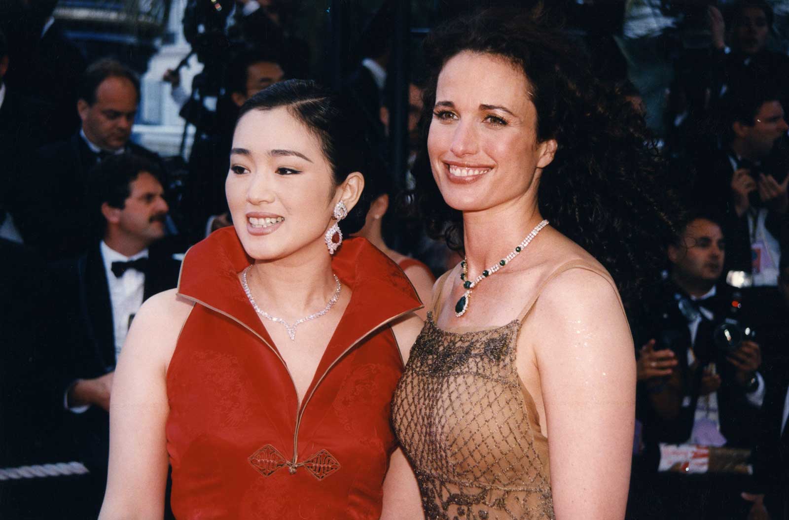 Gong Li wth Andie MacDowell on the red carpet.