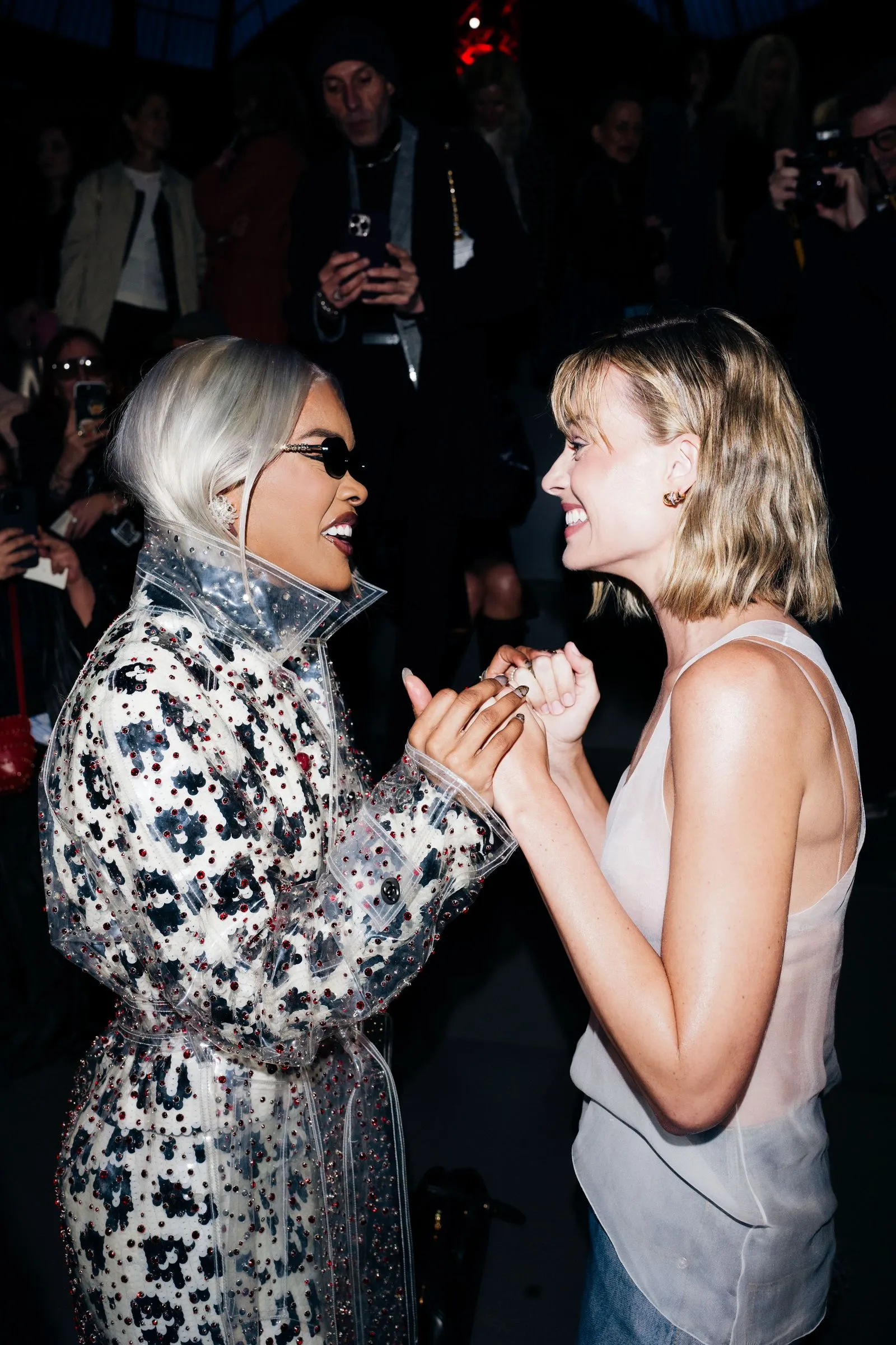 Given the starry guest list, then, Vogue simply had to document more of the front-row action, so we enlisted photographer German Larkin to document these notable names in their VIP seats. Below, scroll on as Larkin caught all of the candid moments between stars. (Come for the Teyana-Margot embrace, stay for the Oprah-Kylie meet-cute.) Plus, we asked them to weigh in on the inspiration behind their outfits, as well as their favorite looks from the show—and what their favorite French words are.
