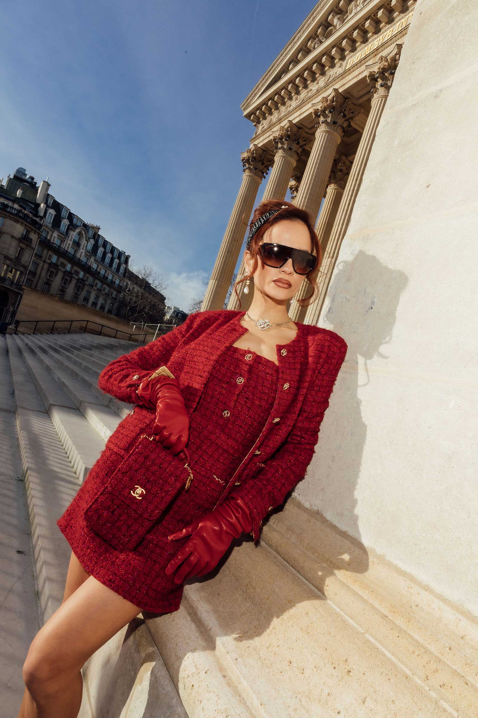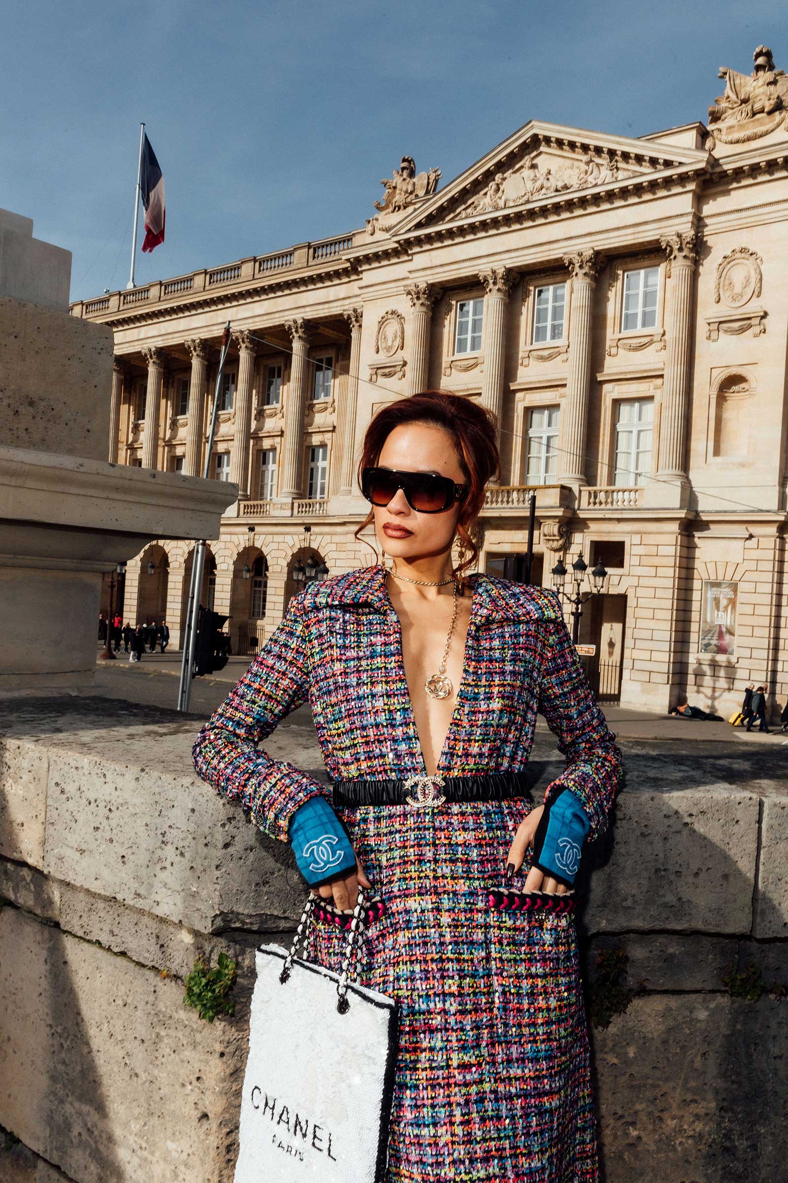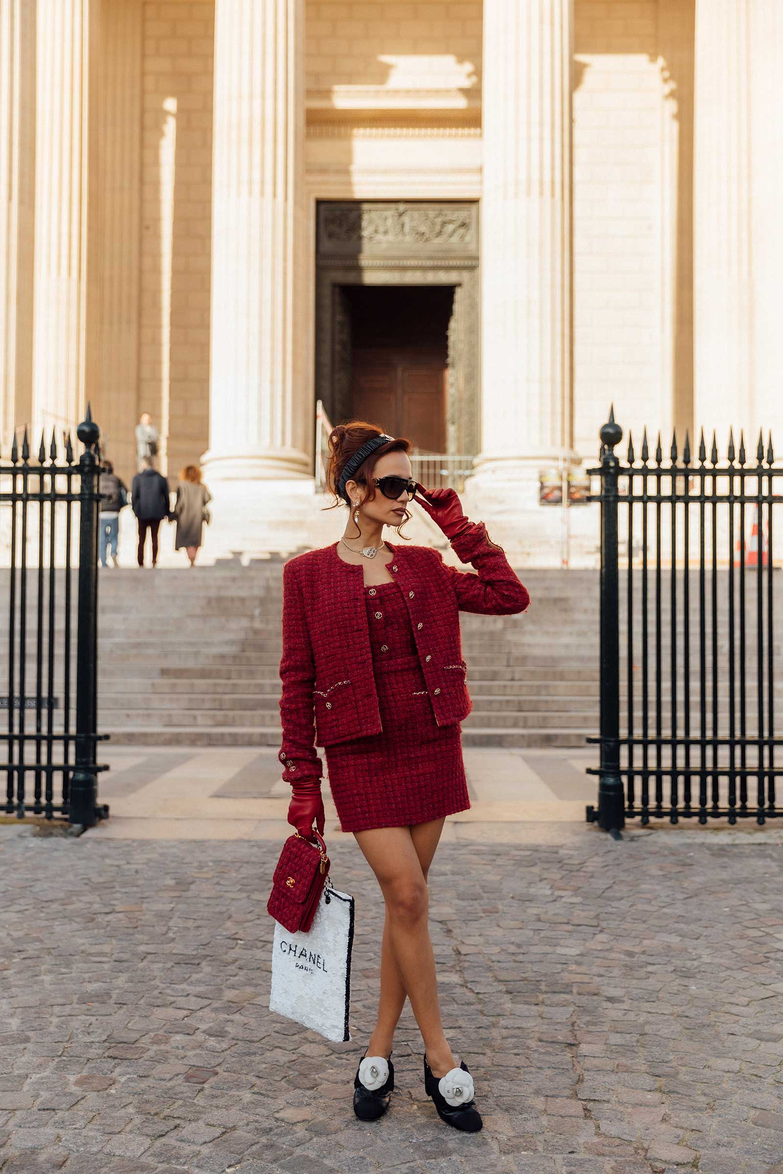 When Coco Chanel first introduced her tweed suits in the 1920s, iterated for the first time in sportier silhouettes and playful colours, she imagined women moving freely and elegantly about their day. So, here I find myself, running around this picturesque city in the most timeless tailoring of them all from collections current and past. You see, no matter how many years, occasions and seasons pass, two things are certain to never lose their charm: Paris and the house of Chanel.