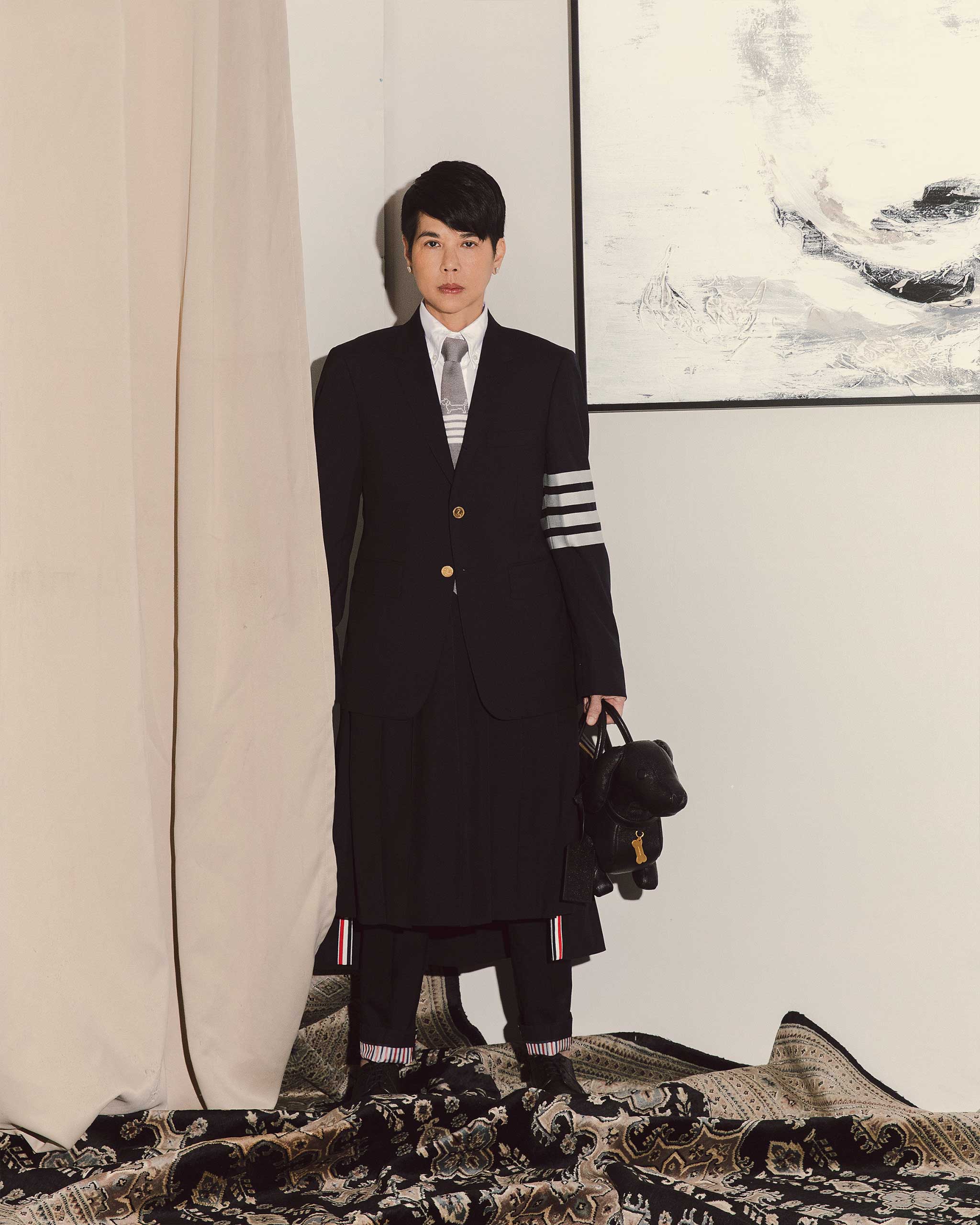 Tessa wears looks from Thom Browne available at Univers, and Ivarluski Aseron.