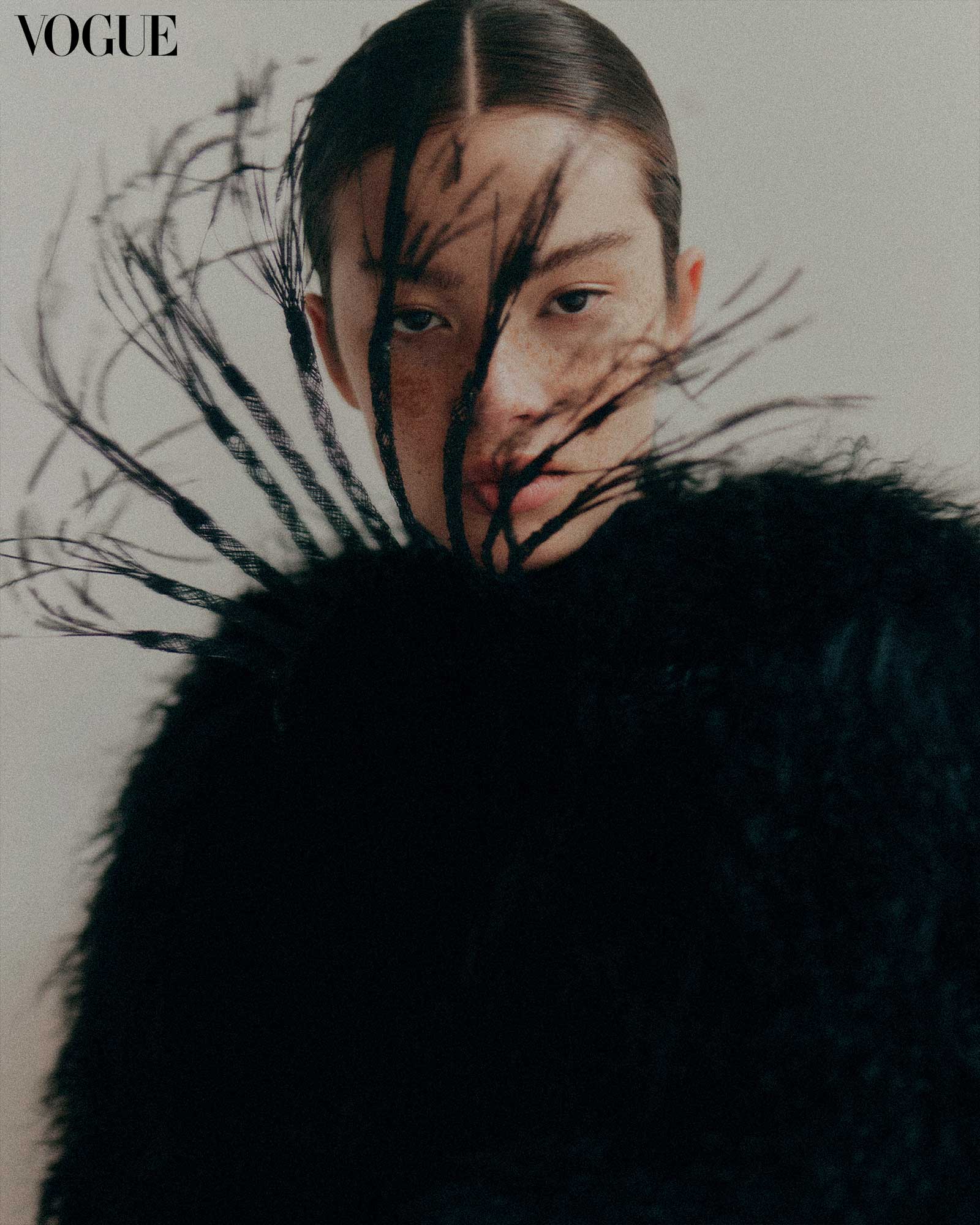 TETE BY ODETTE eco-fur coat, WOLFORD tights, ANN DREU HATS headpiece. Photographed by Álvaro Gracia for the November 2024 Issue of Vogue Philippines