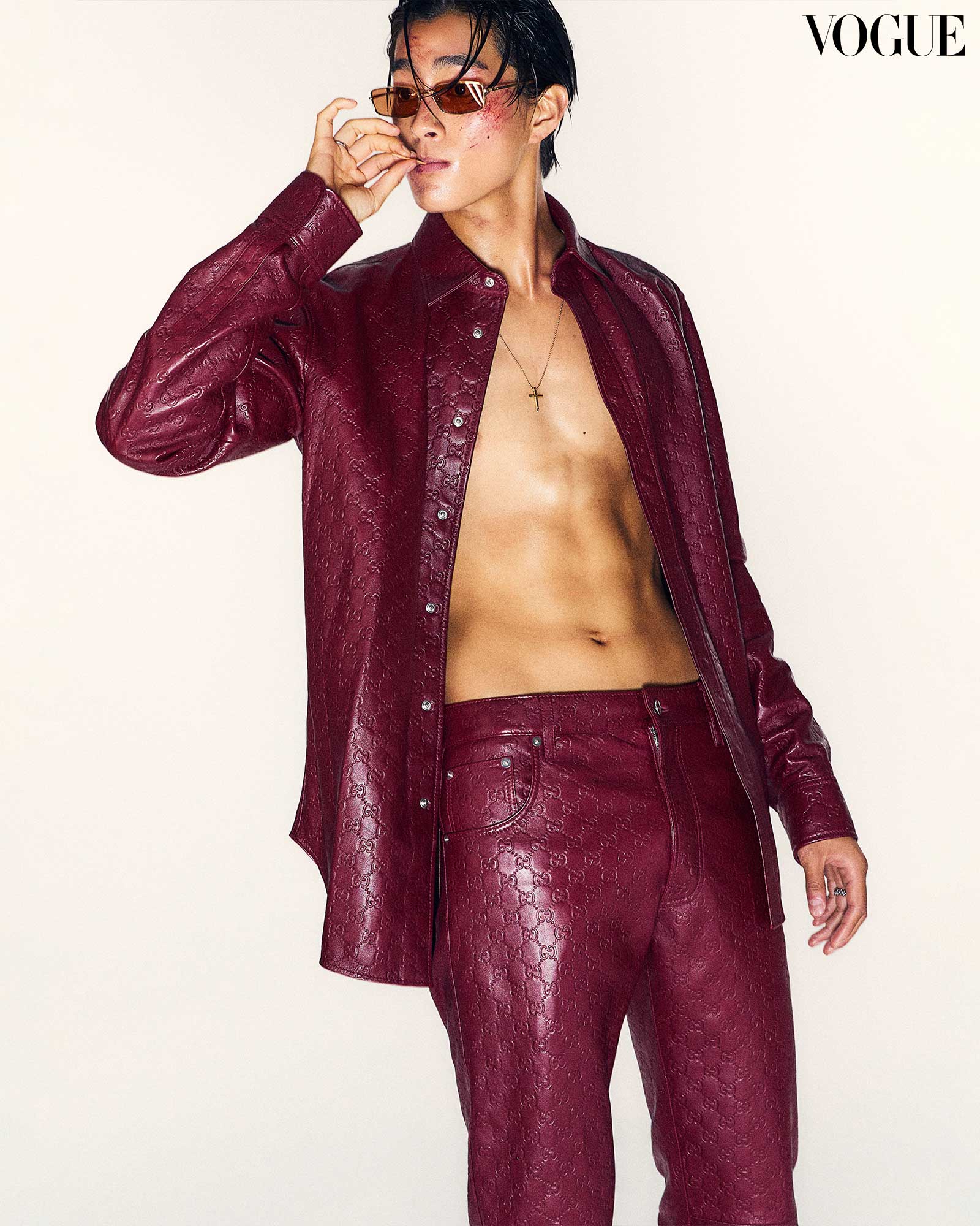 GUCCI jacket and trousers, PRADA sunglasses, CARTIER rings, NUMBERING necklace. Photographed by Sang Hun Lee for the August 2024 Issue of Vogue Man Philippines