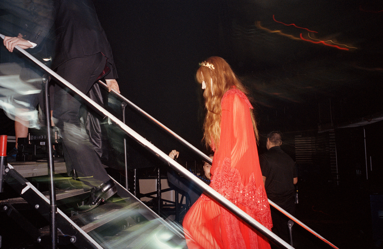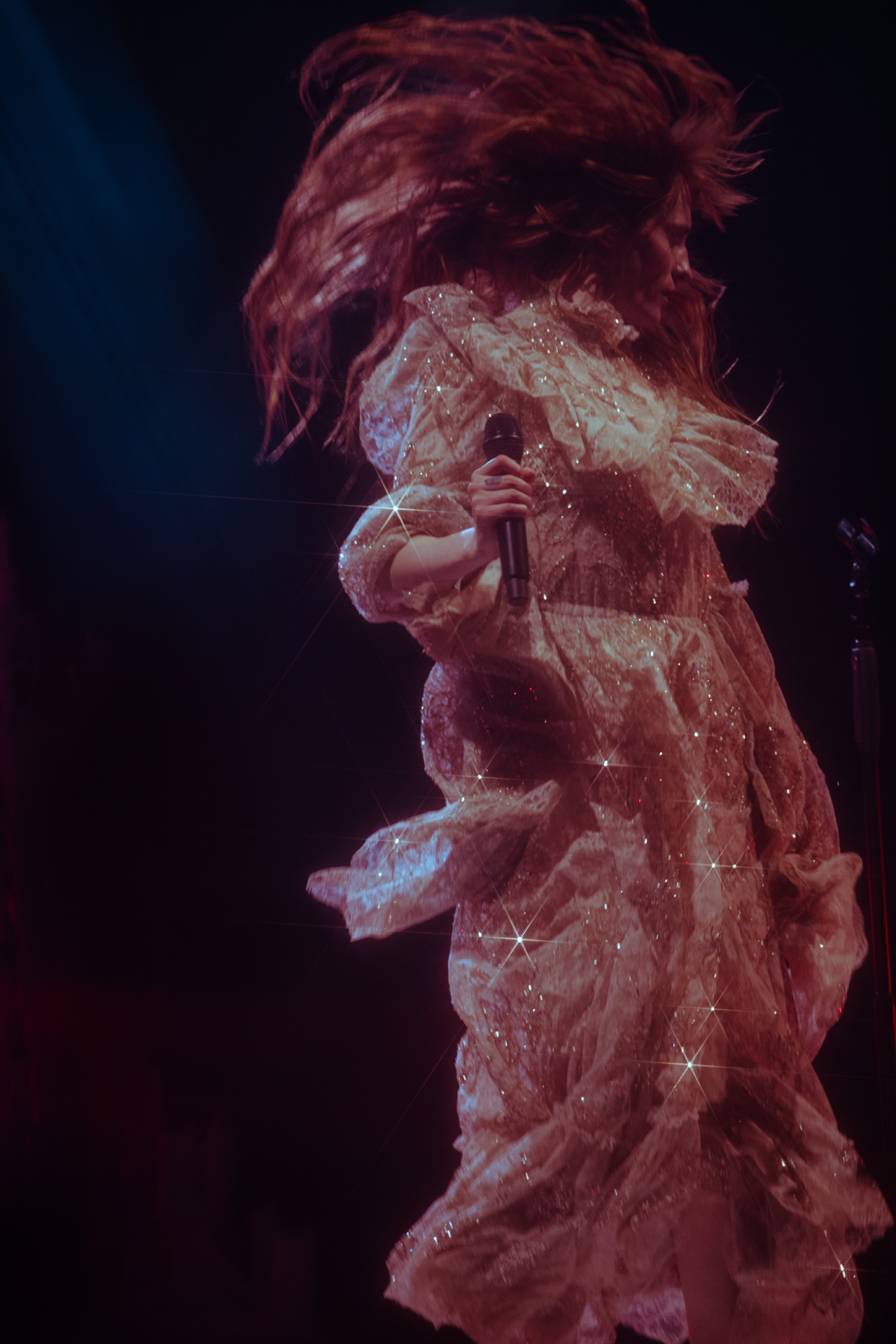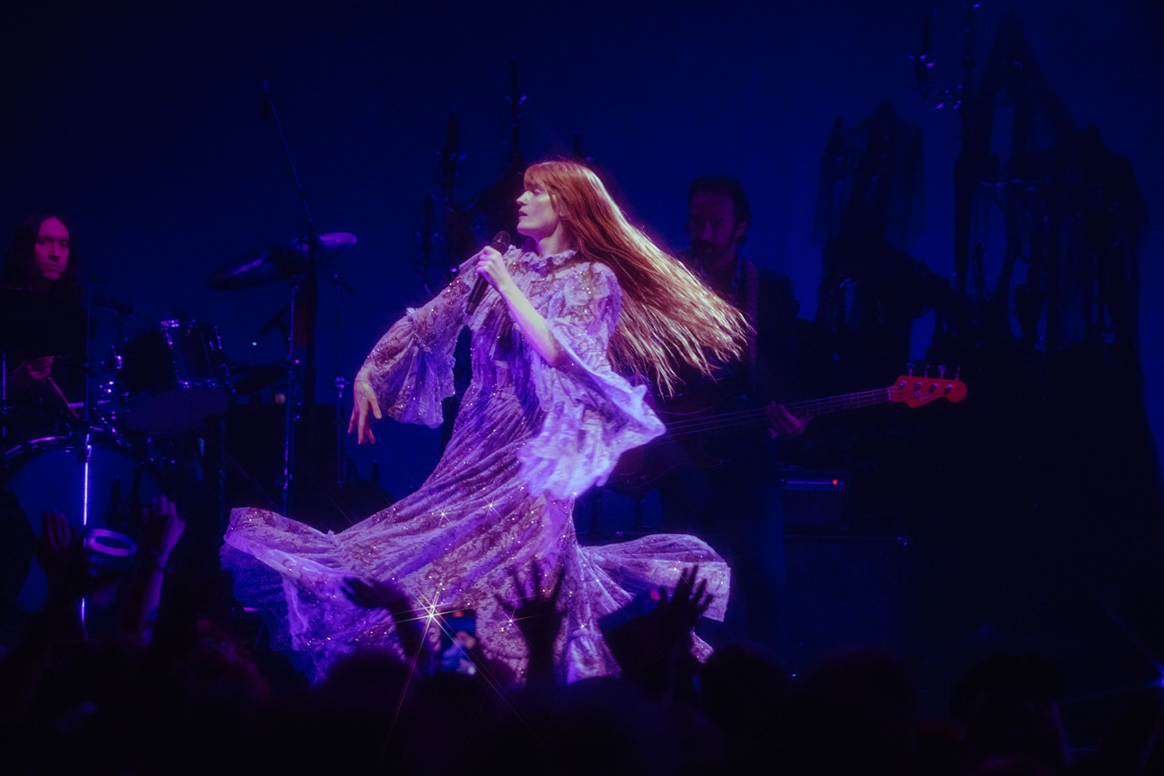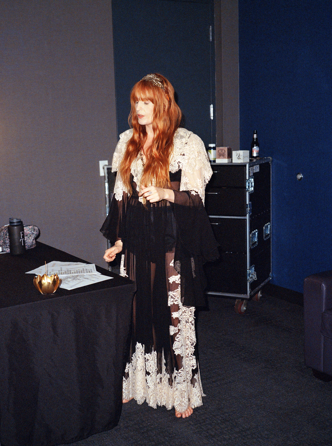 To riff off the vibe of the set, Welch’s tour wardrobe had a similar dark, romantic feel. She wanted her fashion on stage to reflect her songs and lyrics, albeit in a more theatrical way. “The iconic costumes for Lucy Westenra from Bram Stoker’s Dracula were a big influence,” says Welch of her looks. “Again, fairy tales and horror have been a big part of the references. Something beautiful but bedraggled. Trailing lace, embellishment, crowns, vampiric capes. This is a very theatrical album, so it gave us a lot of room to play.”