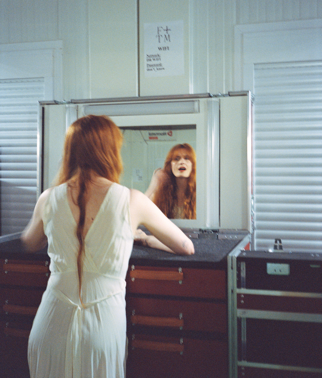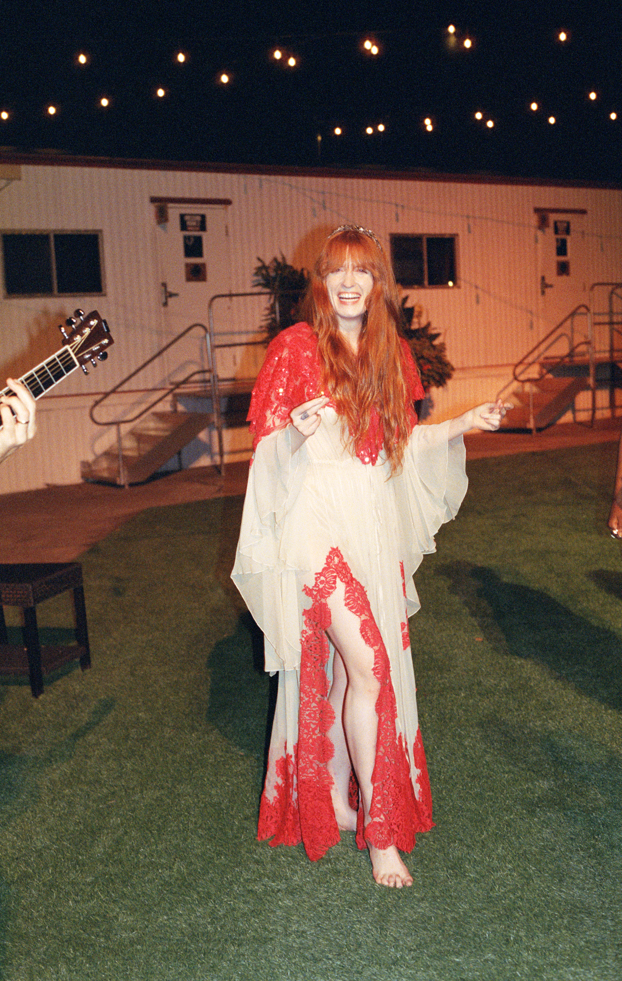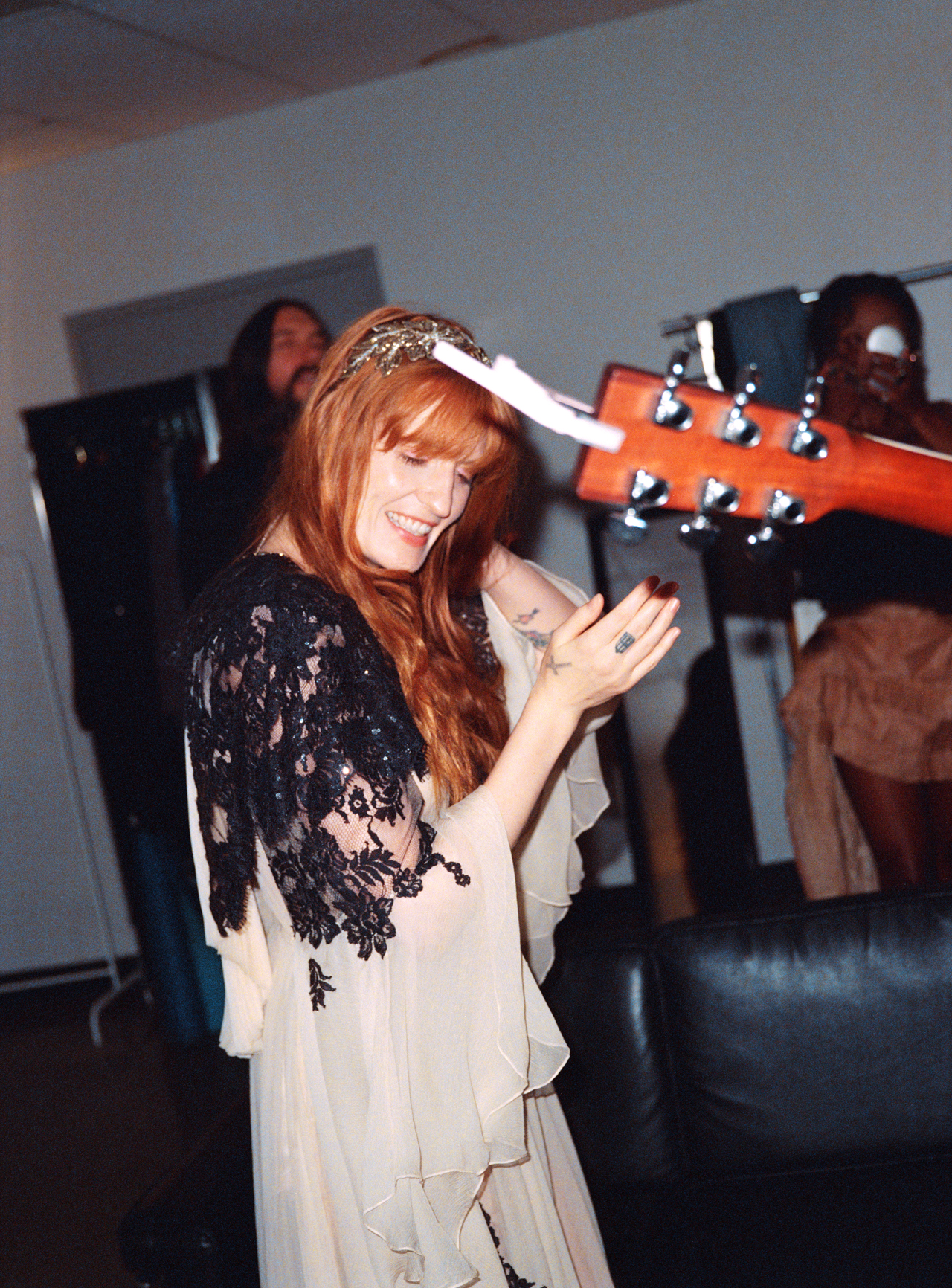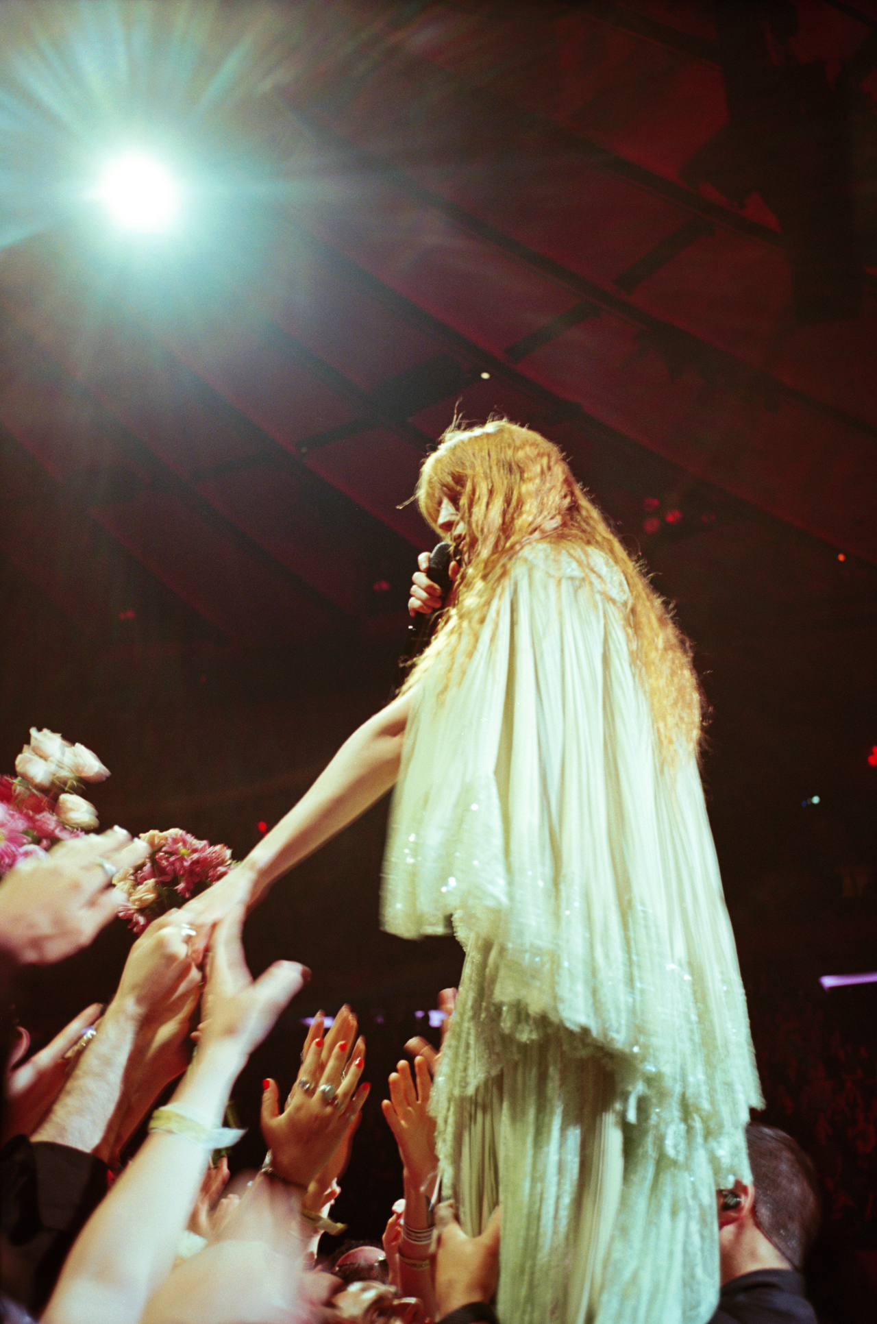 Outside of this particular album, movement has always been important to Welch, who is known for her twirling on-stage. As such, her performance costumes have to be practical. “I used to perform in suits, as I like invoking masculinity in my performances, but honestly I just can’t move as well in trousers,” says Welch. “As the show started to involve more and more contemporary dance, dresses became the only option for freedom of movement. So, I had to create masculinity through energy rather than clothes.” She adds Michele’s ethereal dresses were perfect for the tour. “You need something that is going to create romance and power,” she says. “And to be flattering no matter how you are throwing yourself around up there.”