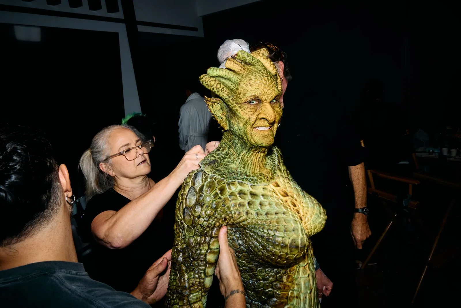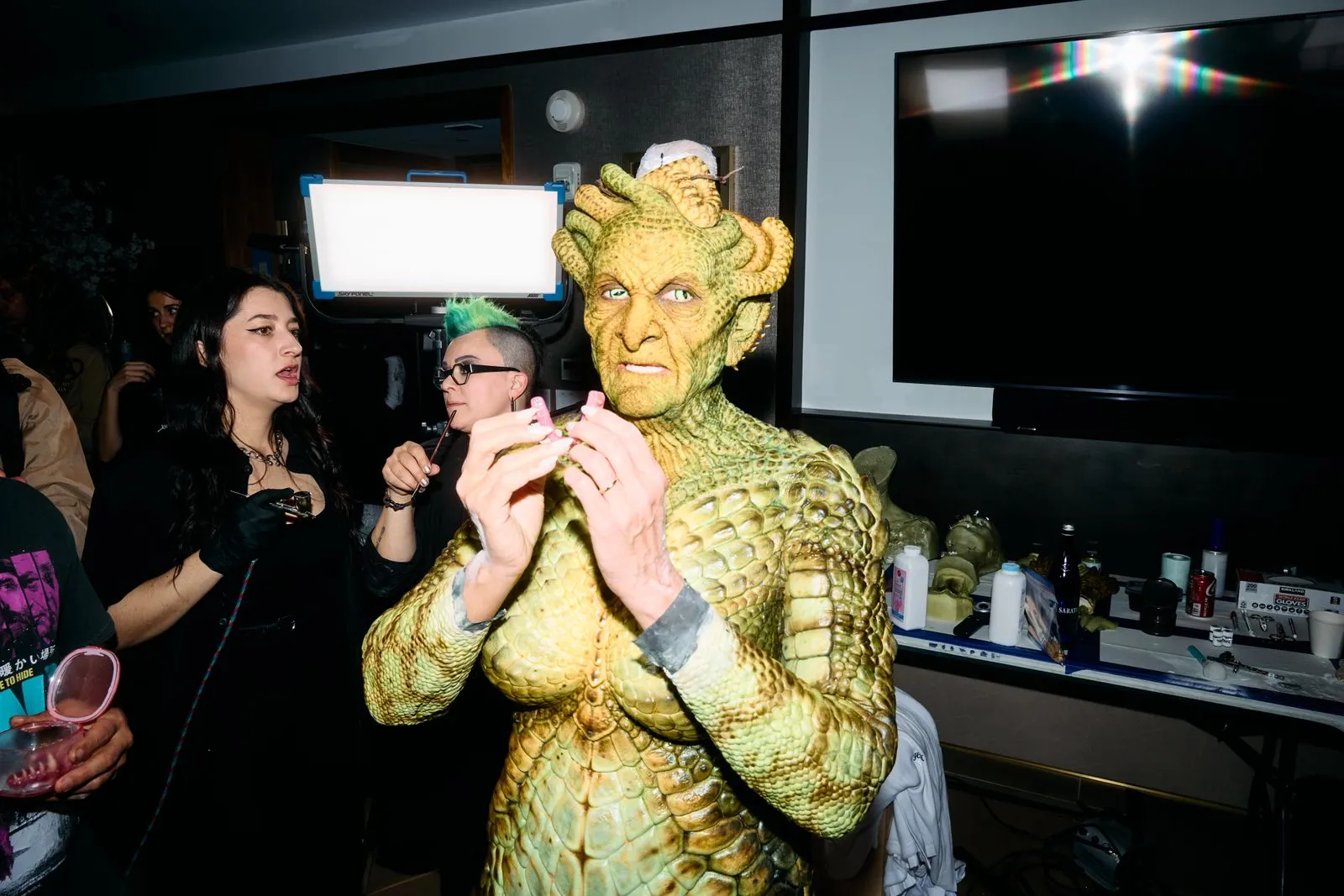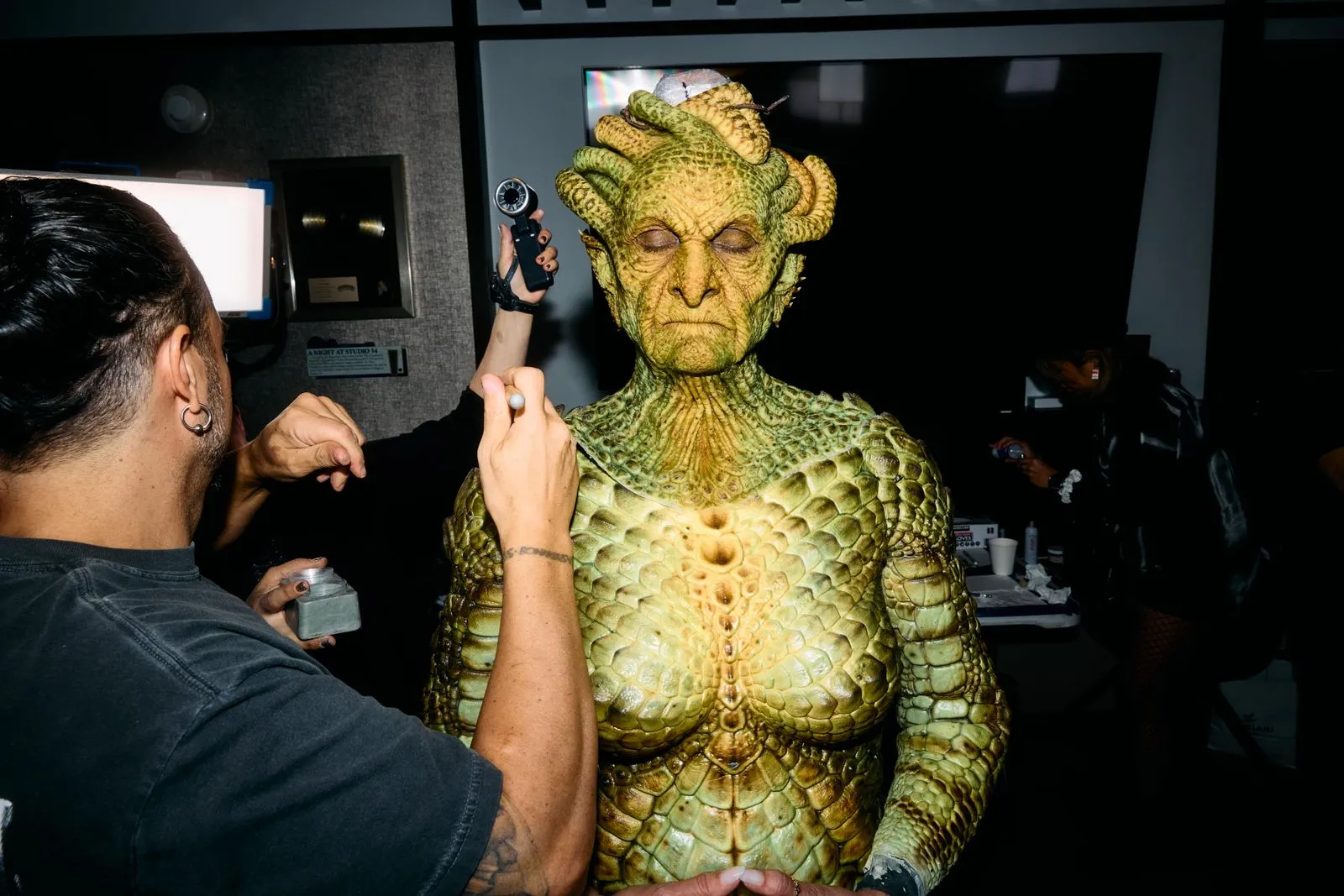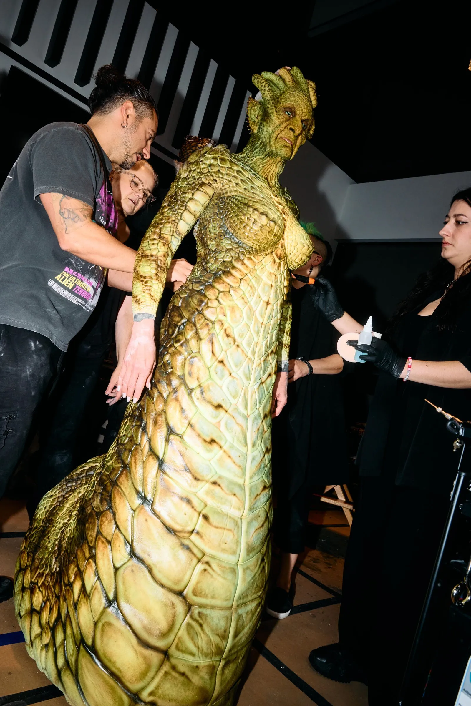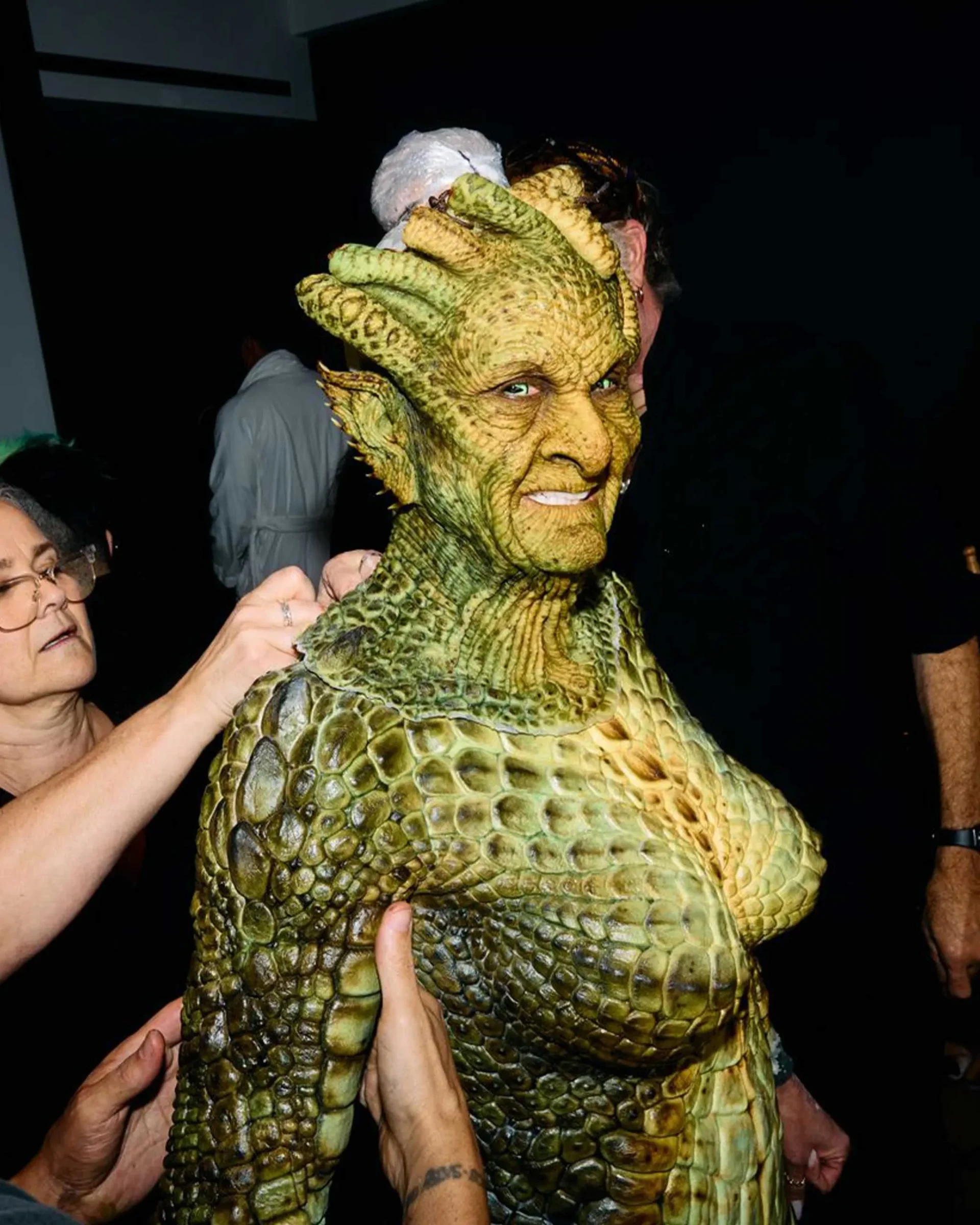 This was no last minute choice for Klum, who is known to plan her outlandish costumes years in advance. For her serpentine-chic look this evening, however, Klum did get a later start than usual. “But we still had few months to work on it,” she says. Around April, when the idea struck, Klum called up her close friend Mike Marino—the special effects artist who she works with every year—to make her vision a reality. “He immediately said, ‘Hell yeah!,’” says Klum. “He is a great collaborator, because he can not only bring the costume to life, but also comes up with ideas to make it even bigger and better.”