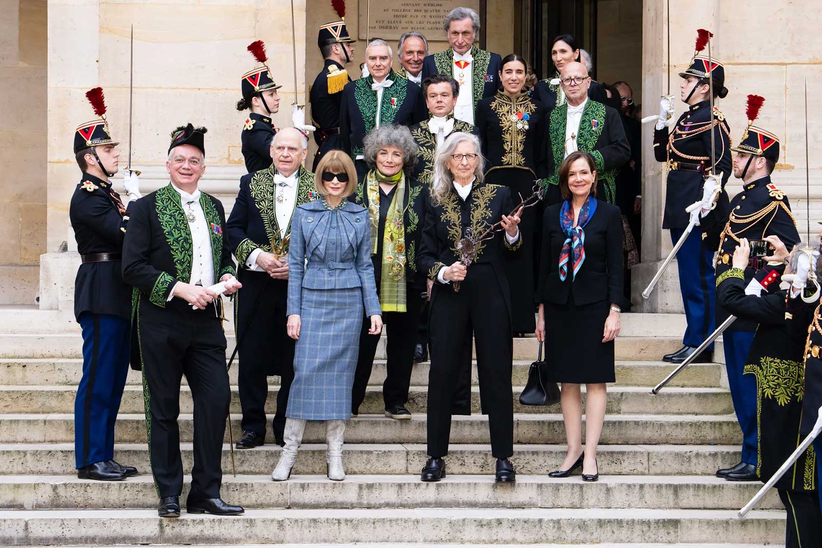 There to present Leibovitz with the award was Anna Wintour, who opened her remarks by sharing the esteem she has for the Académie, and referencing Leibovitz’s new accolade. “For a British or American person, the only thing more daunting than a French fashion show is a French academy—and by a similar principle, the only thing more intimidating than Annie Leibovitz is Annie Leibovitz brandishing a sword.”
