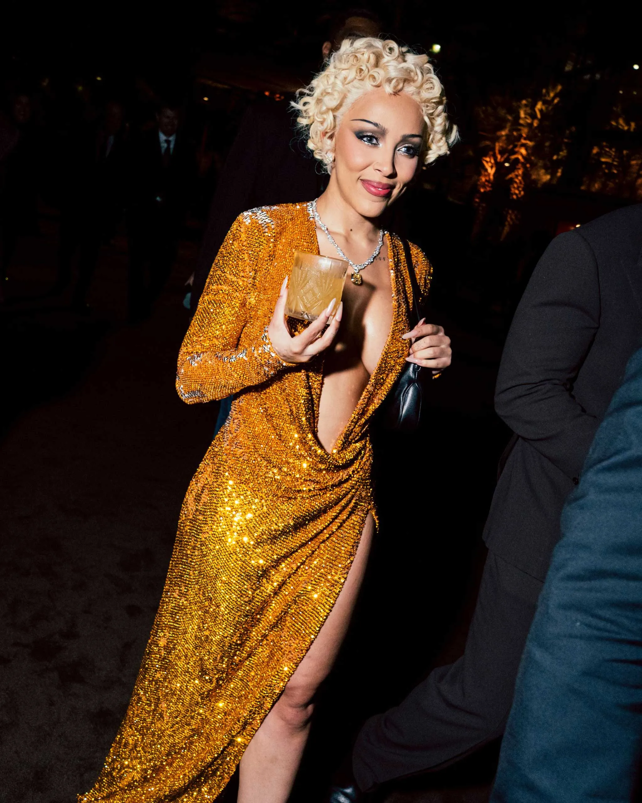 At 10:30 pm, the crowd gathered outside to enjoy a set by Doja Cat, who performed a crowd-pleasing medley including Kiss Me More while servers passed out espresso martinis with whipped cream and a cherry on top.