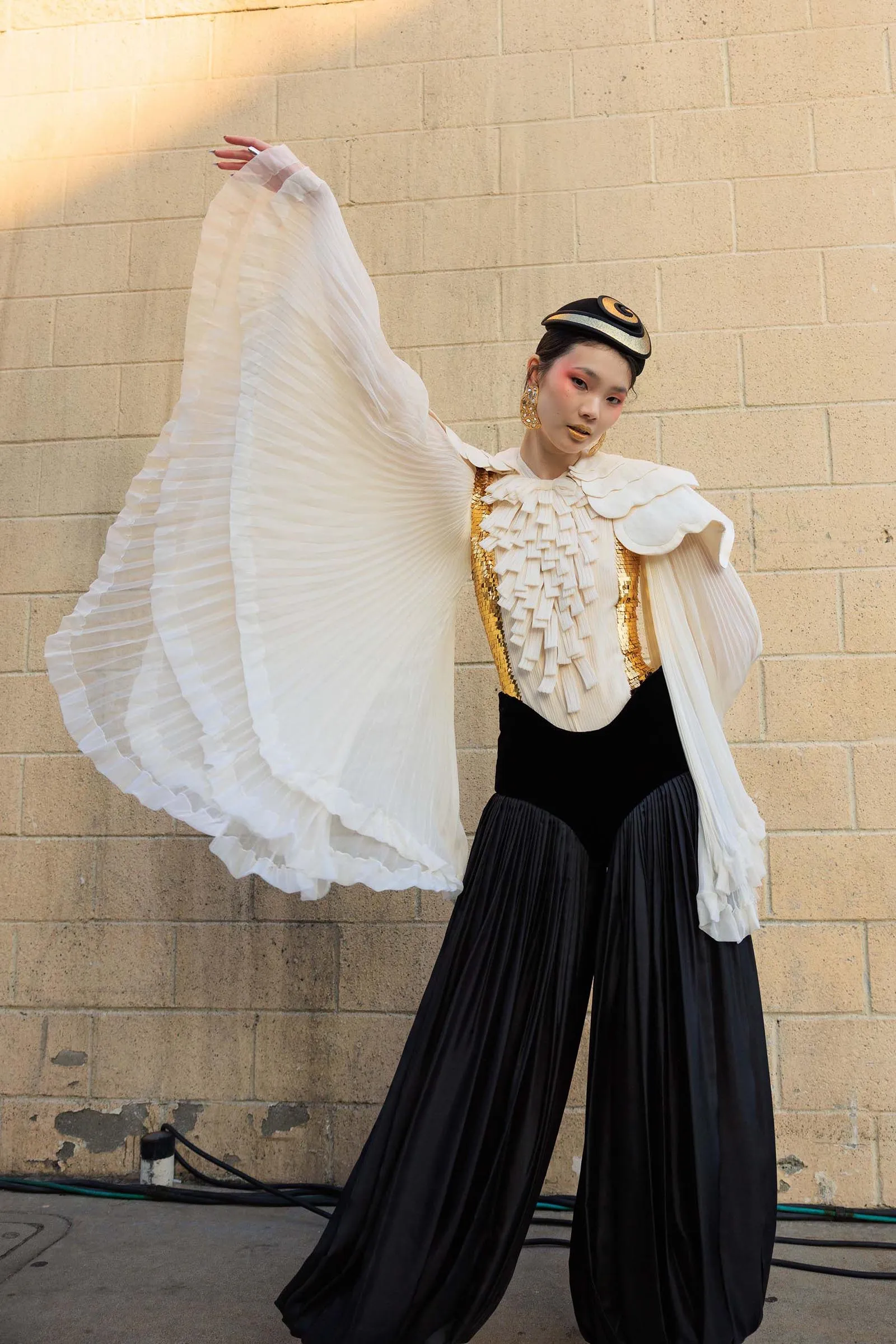 Vogue would like to thank American Airlines, Armand de Brignac, EmpireCLS, Fairmont Hotels & Resorts, Quixote, Sakara Life, Saratoga® Spring Water, Sweetgreen, Visit West Hollywood, and Warner Bros. for their generous support of Vogue World.