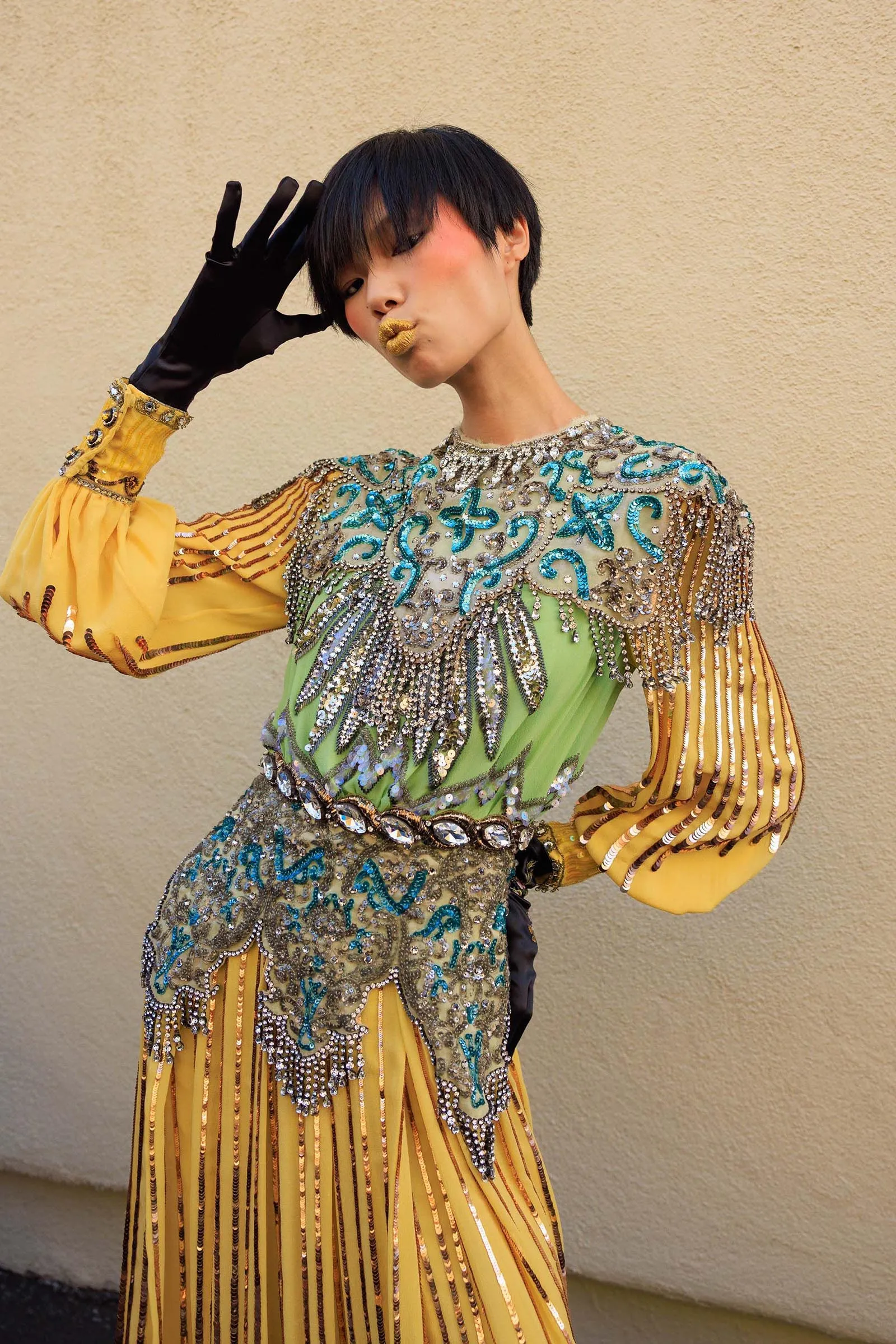 Beyond tapping houses like Alaïa, Balmain, Louis Vuitton, Marc Jacobs, Miu Miu, McQueen by Seán McGirr, and Valentino to whip up ensembles inspired by the movies, the sprawling fashion team that brought Vogue World: Hollywood to life also sourced wardrobe elements, props, and other set dressings from eBay, Vogue’s official pre-loved partner. (Thrillingly, a selection of items from the show—and a wider curation of goods—is headed to a Vogue x eBay vintage pop-up in West Hollywood on November 1. More on that here.)