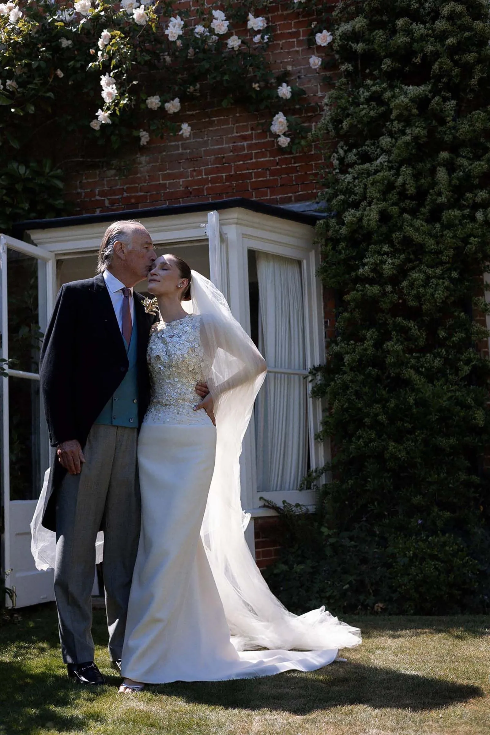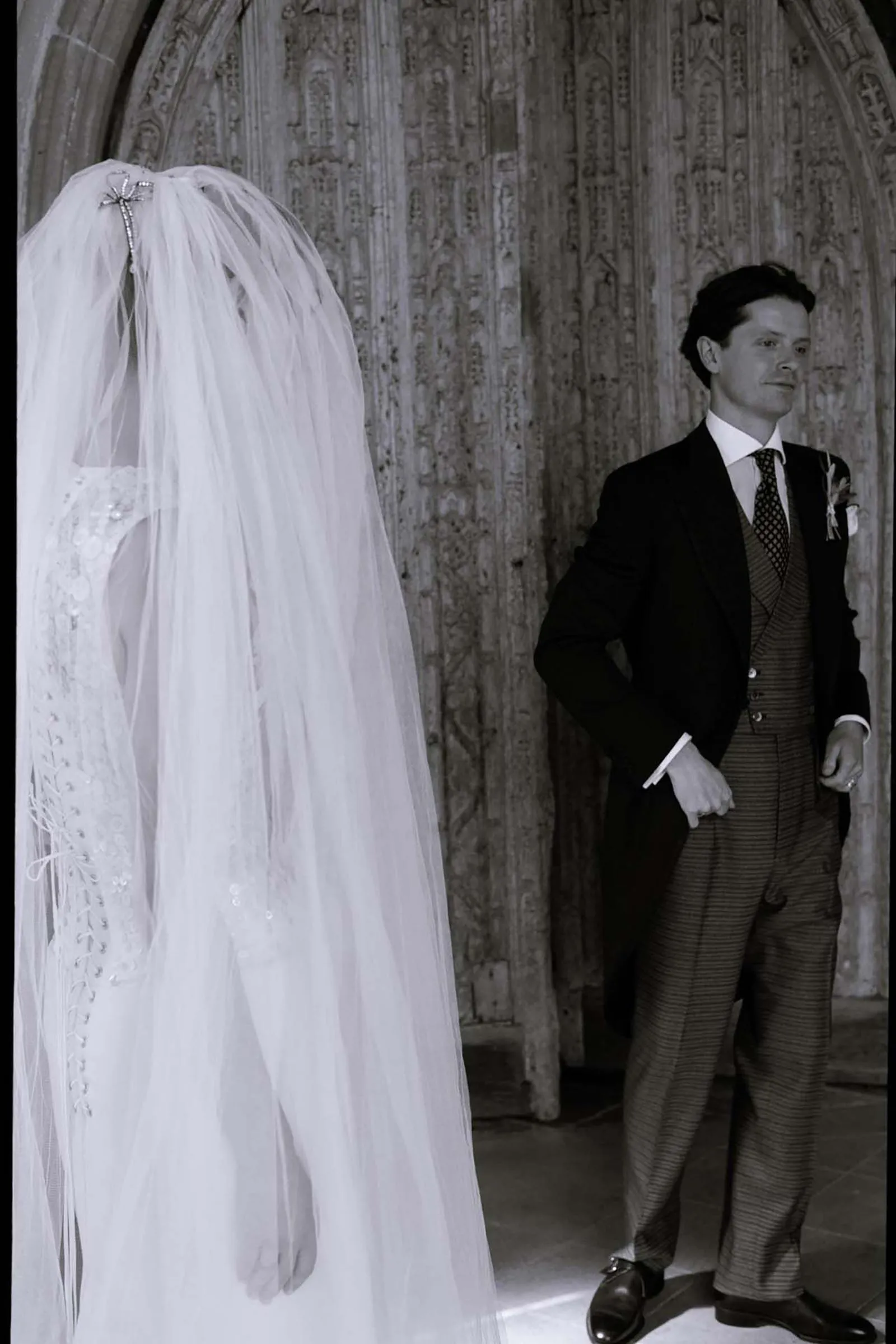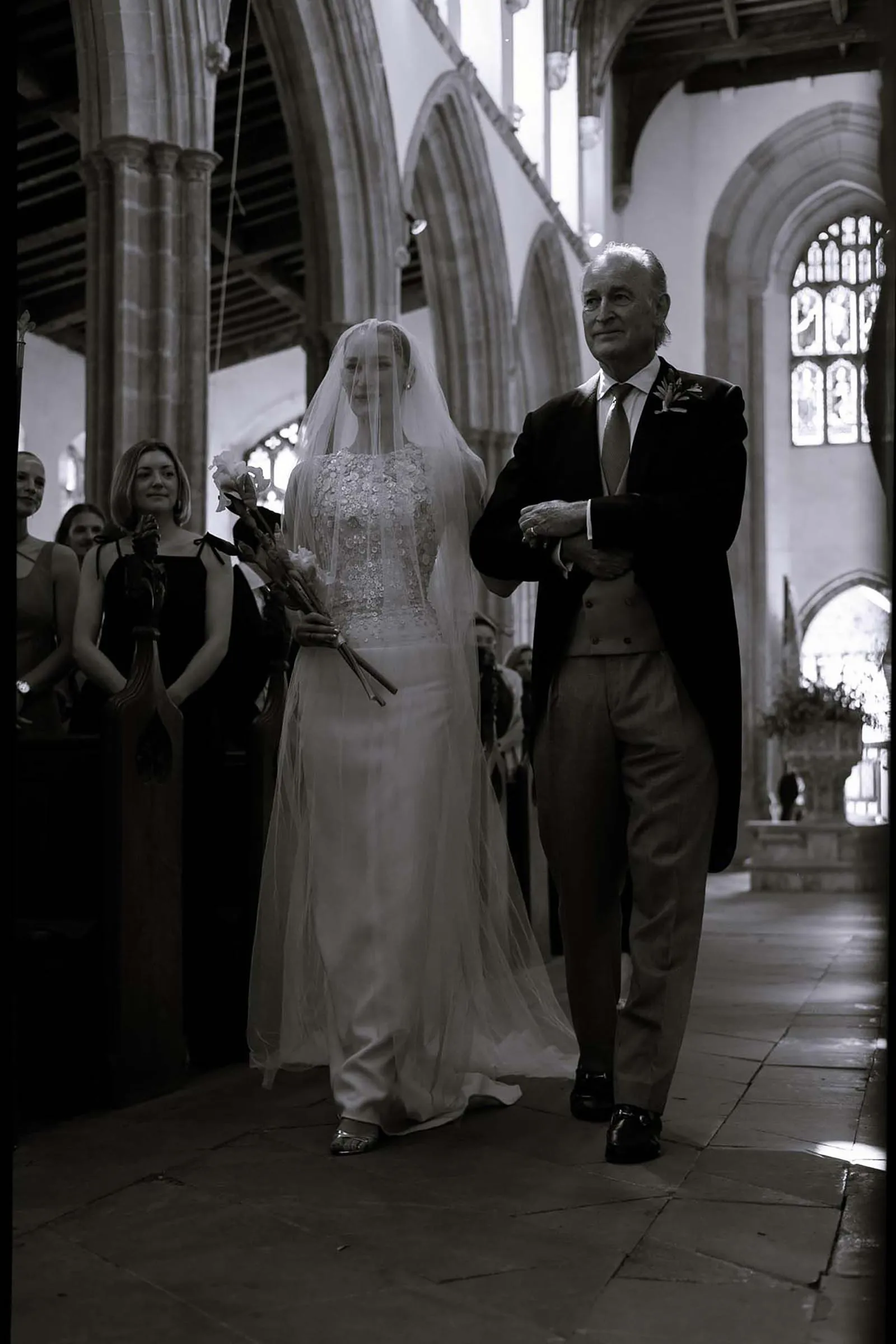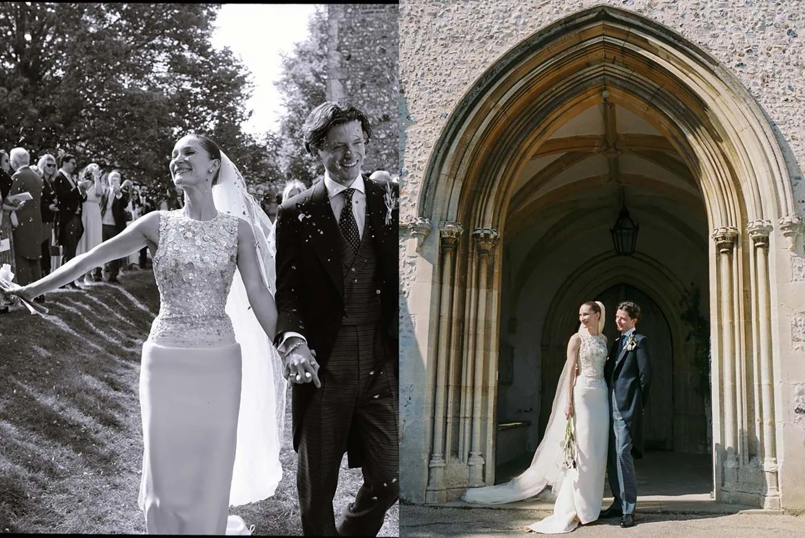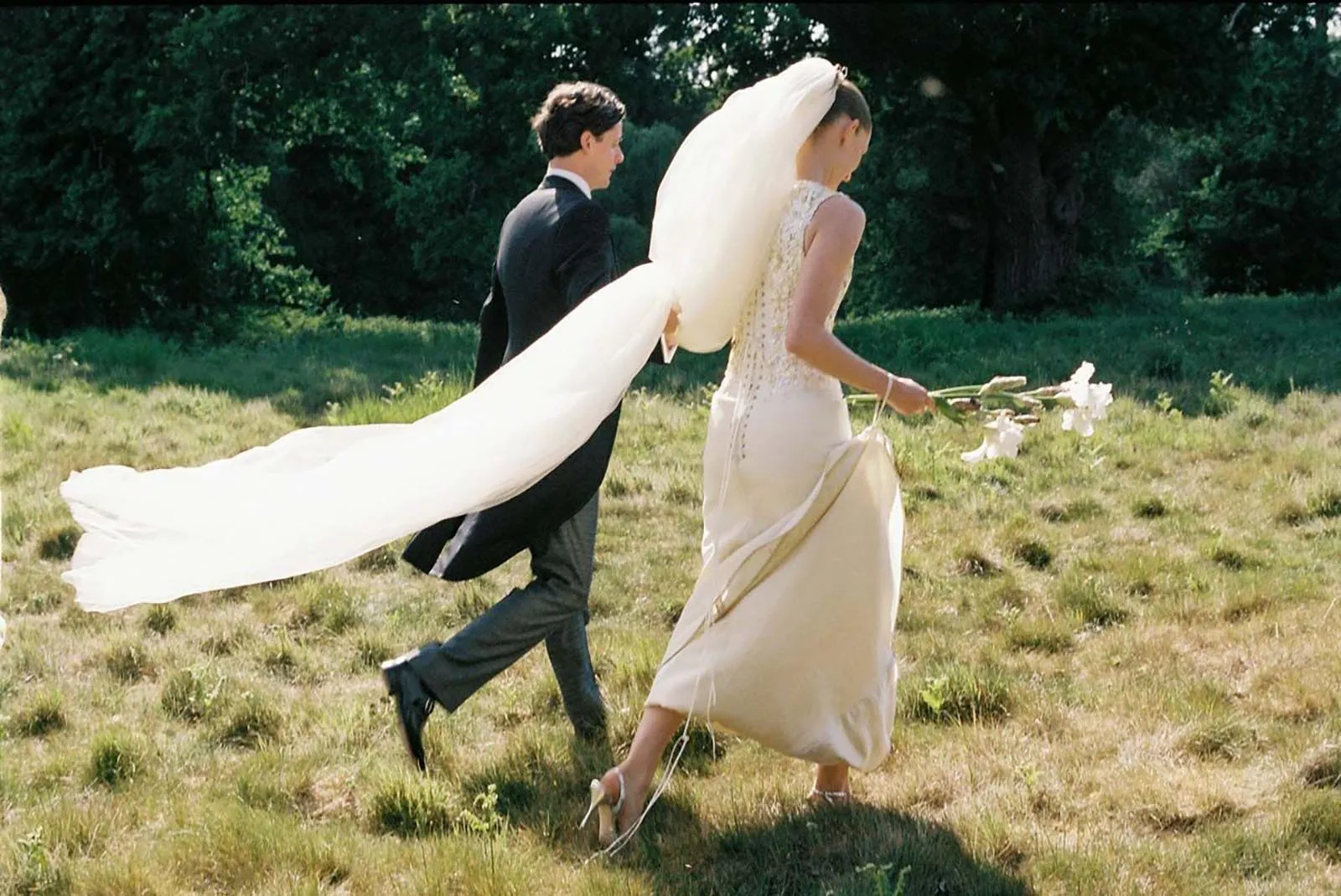 It took her sister 45 minutes to lace Judd into the dress, but by the time she said “I do”, two diamond bands, sourced vintage from Piccadilly Vaults, clasped around a bouquet of milk-white irises grown in her mother’s allotment, “I felt like a princess”. A choir serenaded the bride and groom – who runs a tailoring business with his father, and wore a bespoke Anthony Sinclair morning suit – with an arrangement of Oasis’s “Acquiesce”, as they made their way to the reception in an Aston Martin DB5. The car had a couple of false starts. Then along came a Greek-inspired feast, speeches, and the requisite outfit change into a mohair Éliane Vergès shorts set (Judd got her micro moment in the end) with a watteau-backed Henrietta Faire cape. “It was very Saint Laurent-inspired,” she says. “I felt like a diva.”