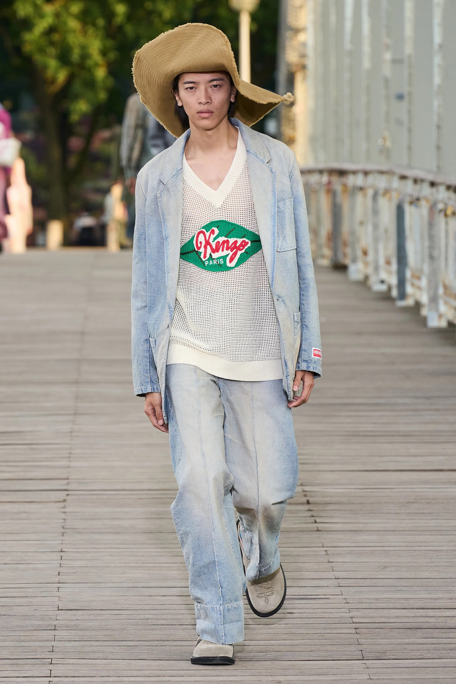 The June 2023 men’s shows will forever be remembered as the season of the bridge: when designers transformed the ponts of Paris into runways. It’s thanks to two dear friends whose indelible marks on fashion have contributed hugely to the way we’ve been dressing over the last two decades. On Friday evening, Nigo presented his fourth Kenzo collection on the Passerelle Debilly footbridge, echoing his creative soulmate Pharrell Williams, who staged his debut show for Louis Vuitton on the Pont Neuf three days before. Both friends attended each other’s shows, and when Nigo took his bow, Williams got a hug and a nod on the way.