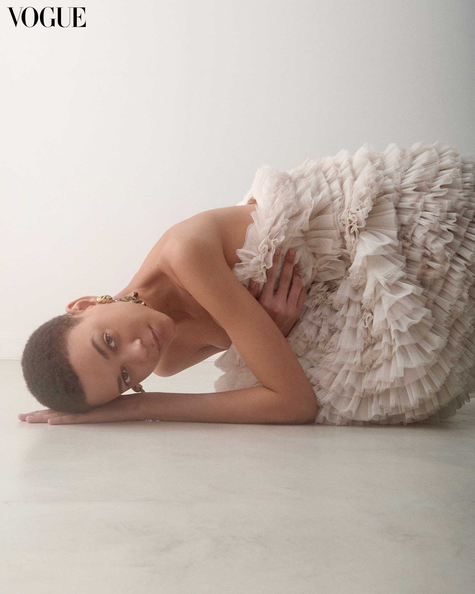 Indulge in the subtle sculpt with embellished drapes, layered laces, and ruffled accents, finished with statement gold adornments.