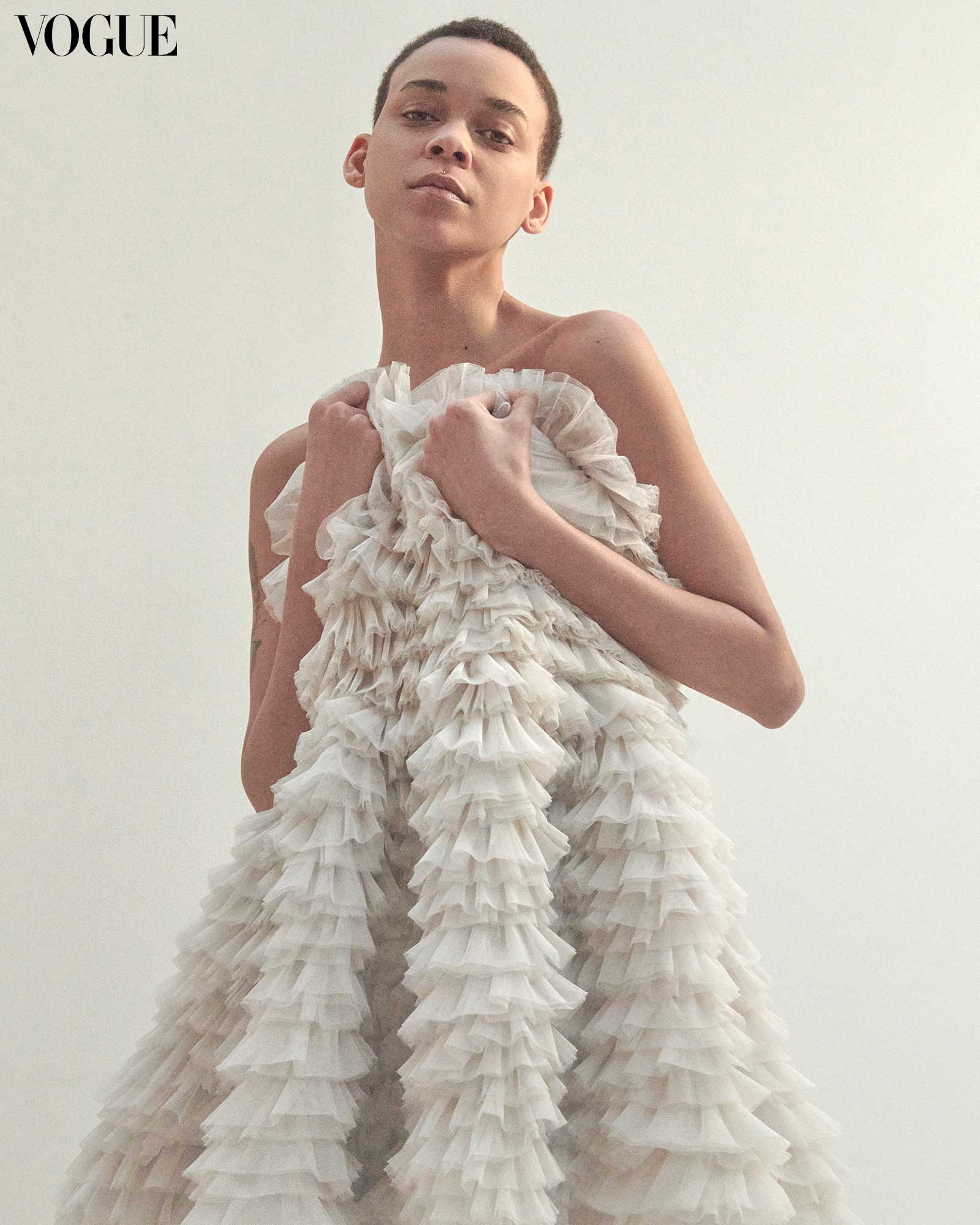 For this spring/summer season, the runways suggested a feeling of lightness; floaty layers add volume without the extra weight. Wispy, diaphanous trails of gossamer flitted about the models at Prada, while sheer ruffles trailed down ultrafine knitted lace dresses at Christian Dior. And at Victoria Beckham, delicate transparency emphasized asymmetrically pinned hemlines. If not sheer, designers were in favor of breezy poplins, fluid silk, and cotton voiles, which took form in billowing sleeves with ruffled accents at Patou, and sculptural draped tops at Louis Vuitton.