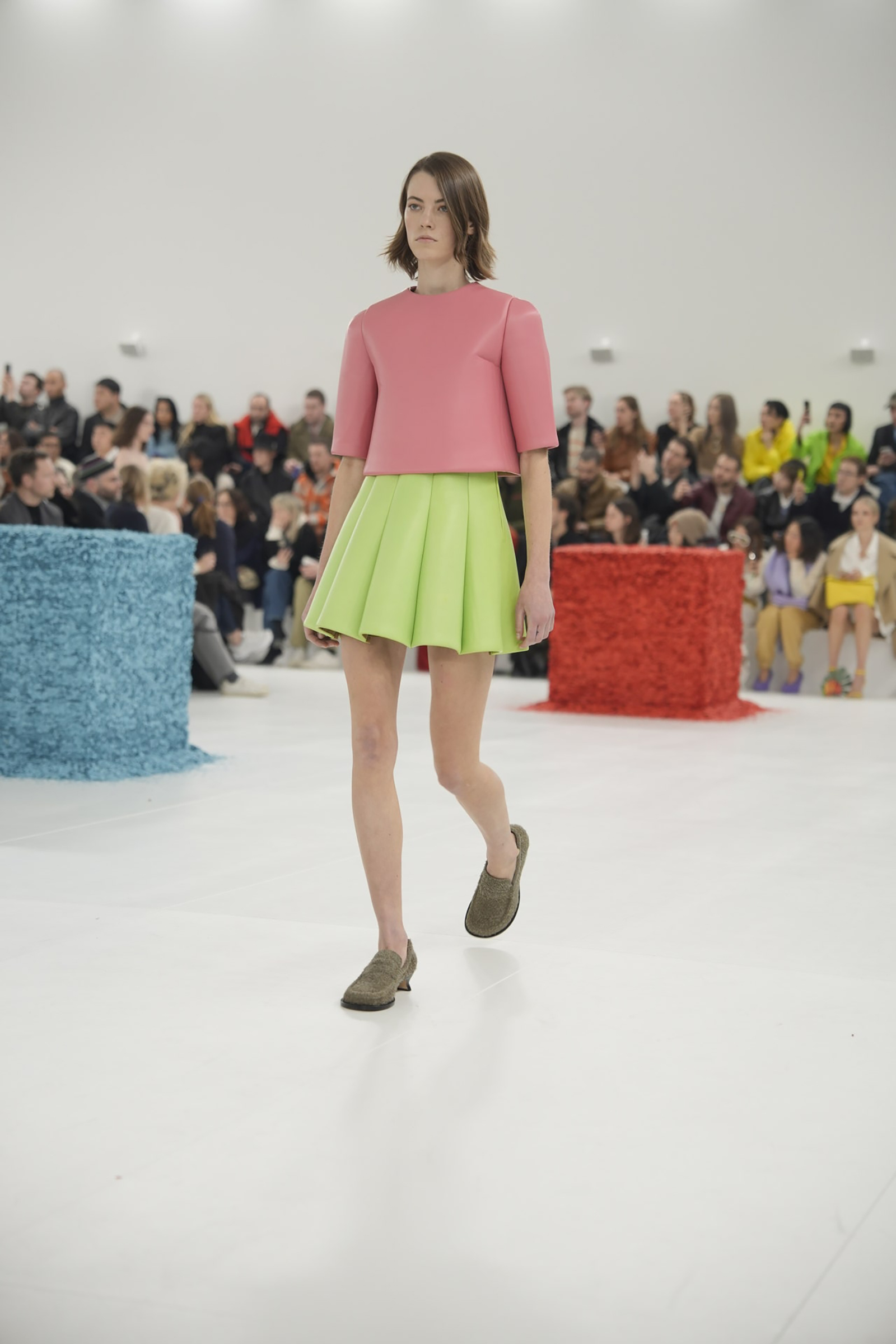 Just as the online experience of watching a show can be deceiving, a garment you’ve seen on a screen inevitably reveals a slightly different truth when it arrives in the post. They’re somehow transient experiences. With that in mind, Anderson invited the Italian artist Lara Favaretto to create a set of confetti boxes inside his white cube. “They’re not stuck together, they’re just blocks of confetti that she stamps into a shape,” he said. “Then she removes the mould. I like the idea that things are transient: it’s a cube in the beginning but then starts to decay,” he said. It illustrated the process we continuously go through in fashion—the ephemeral nature of seasons and trends, and, you might say, the fashion system overall.