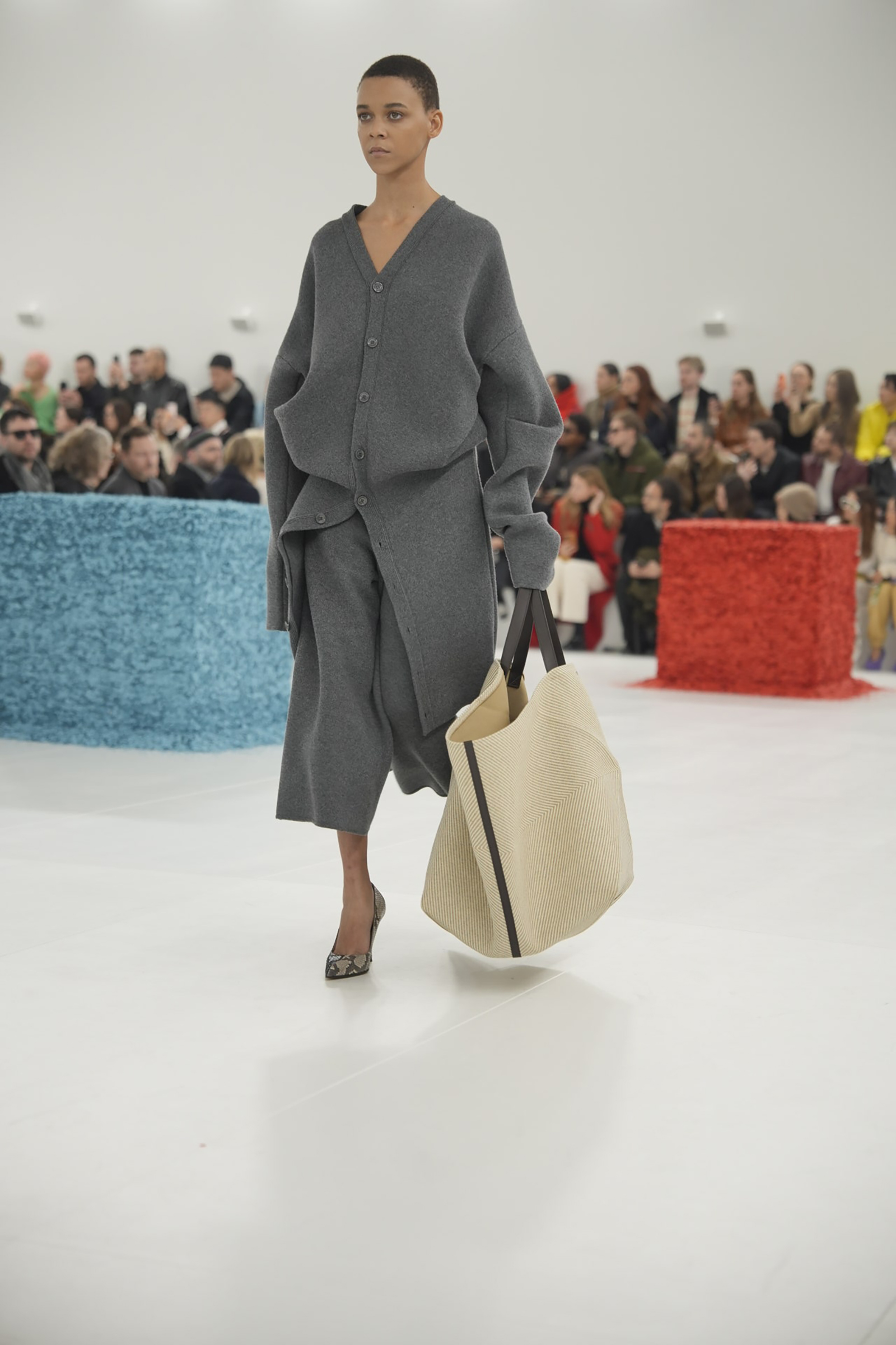 It was a typical fashion moment: after making the 45-minute drive to Chateau de Vincennes on the outskirts of Paris, the Loewe show took place in an isolated white box erected in its courtyard—not a turret in sight. “I like the idea that when guests arrive, you deal with the history. You have this history of a brand and suddenly you’re confronted by the white box,” Jonathan Anderson said after a show that dealt with themes of transiency and surrealism. Much of it was inspired by how differently live audiences experience a fashion show versus those watching online. As live guests, we knew we were in a castle. The digital audience would never have known.