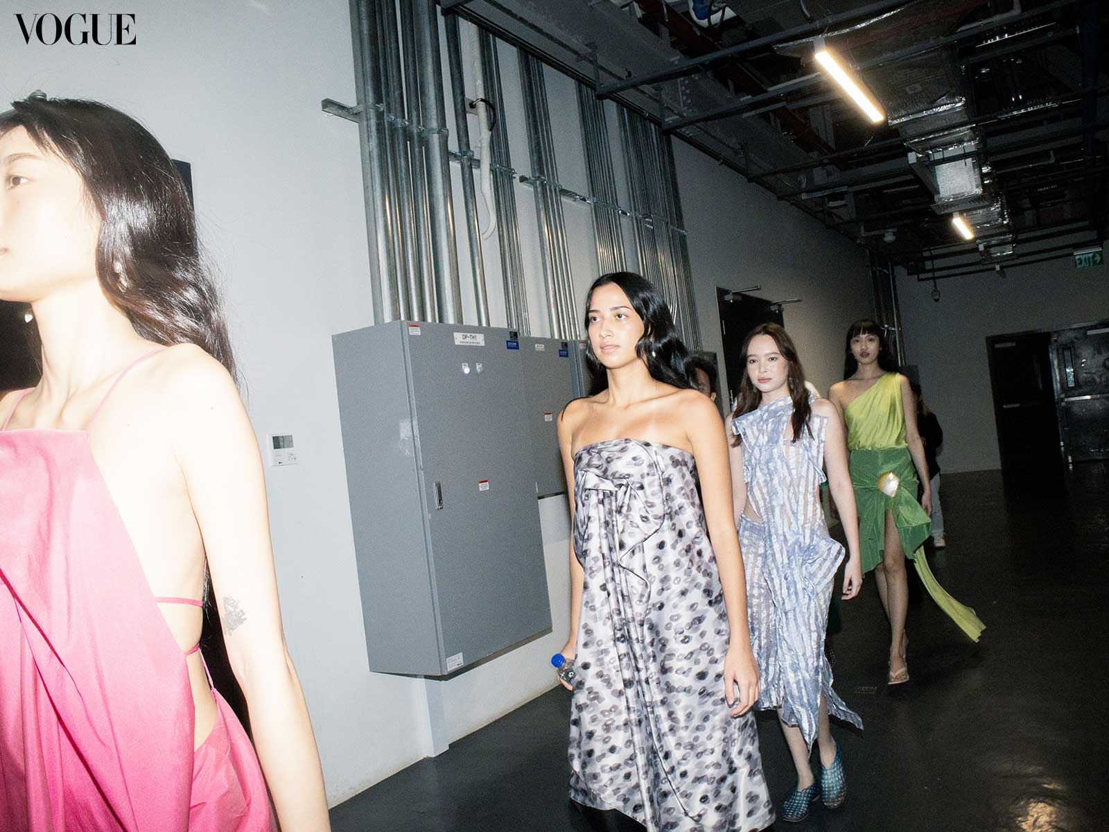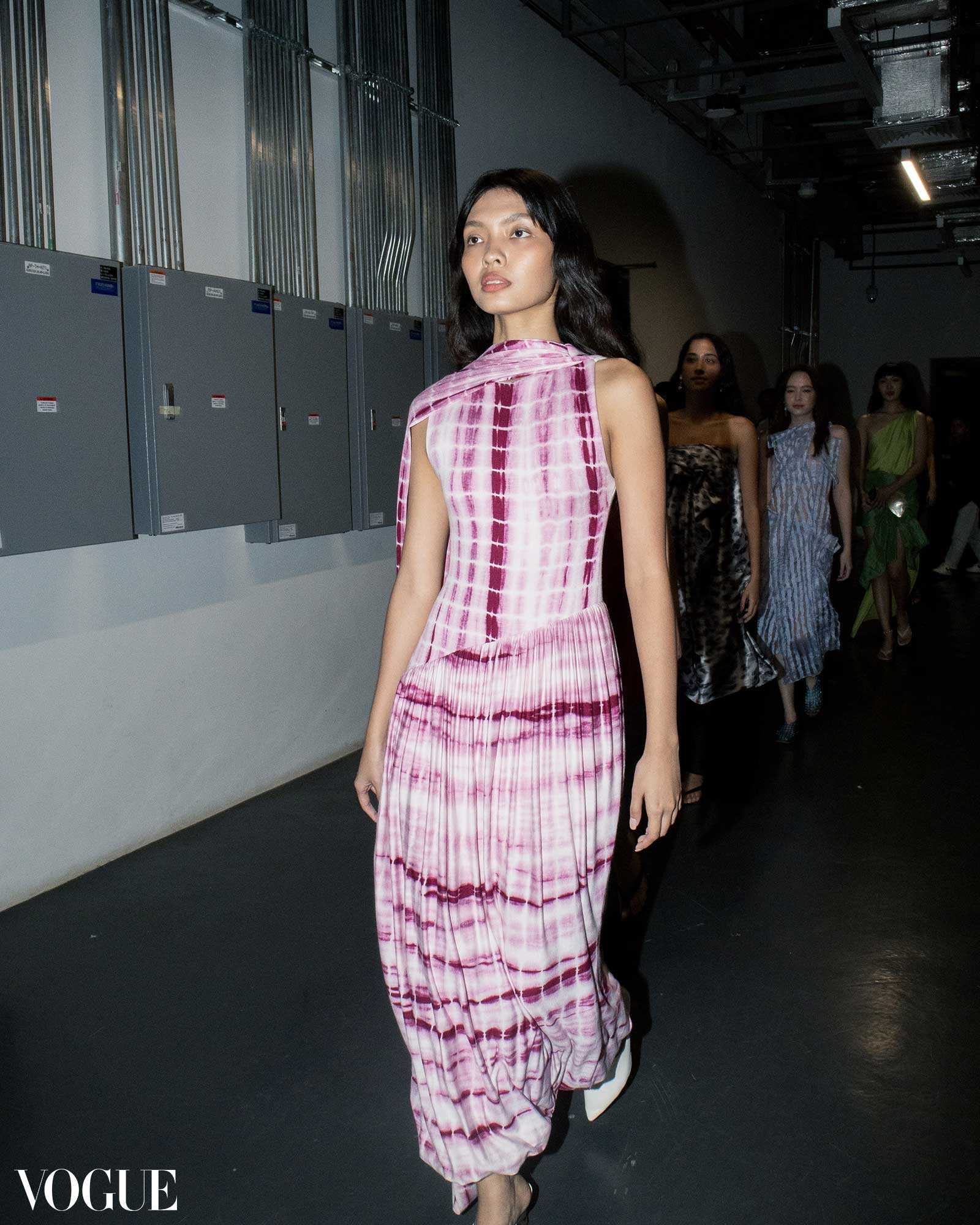 His palette flitted between neutrals, two-toned tie-dye, soft pastels, and fluorescent hues. If the slew of looks felt random, it was intentional. “I really wanted a ‘sabog’ (scattered) collection,” Martin laughs. He used deadstock fabric that he’s been collecting through the years, sourced from corners of the world he’s touched, from New York to Copenhagen to Tokyo. “I was getting whatever I thought was beautiful.”