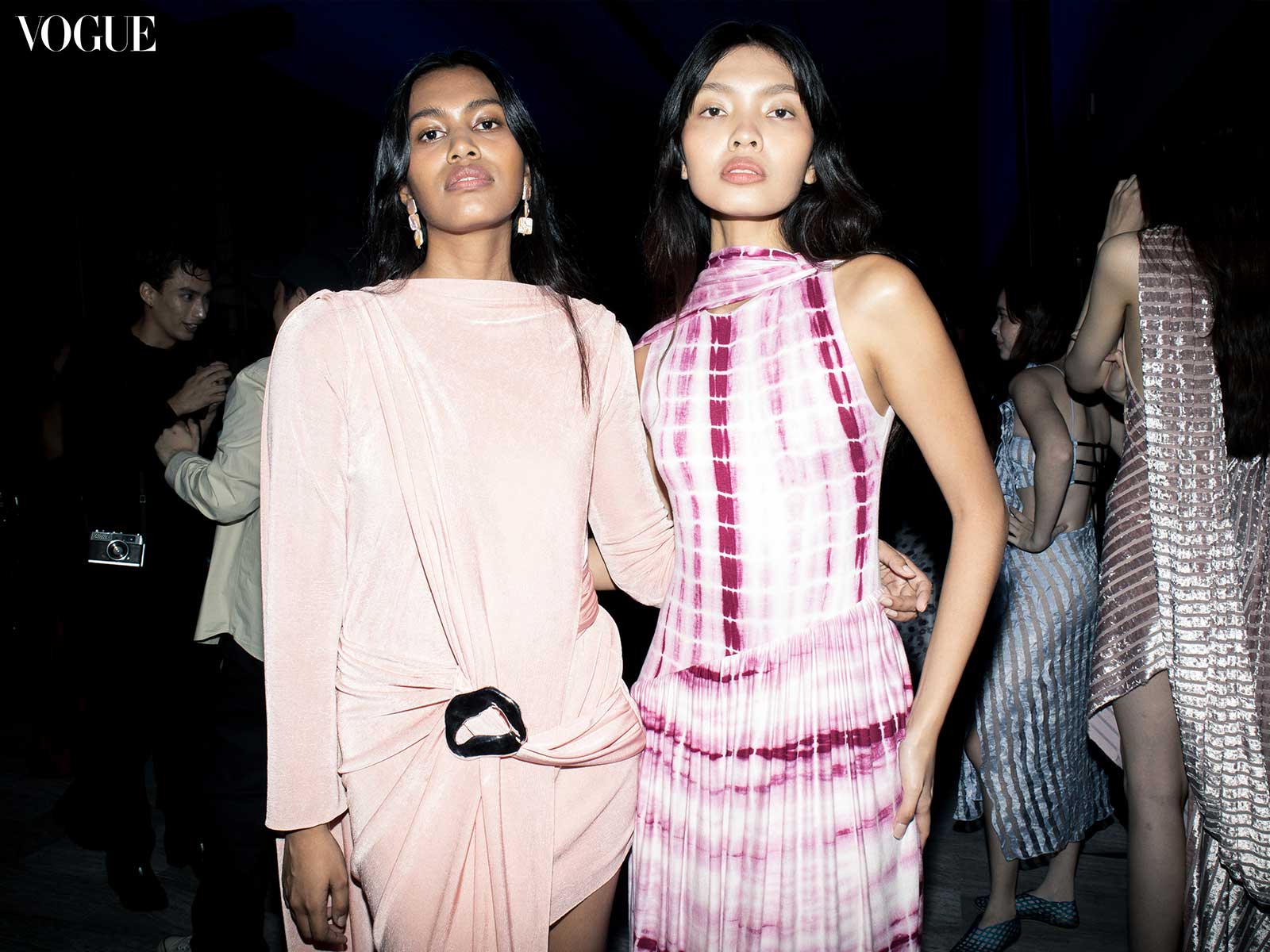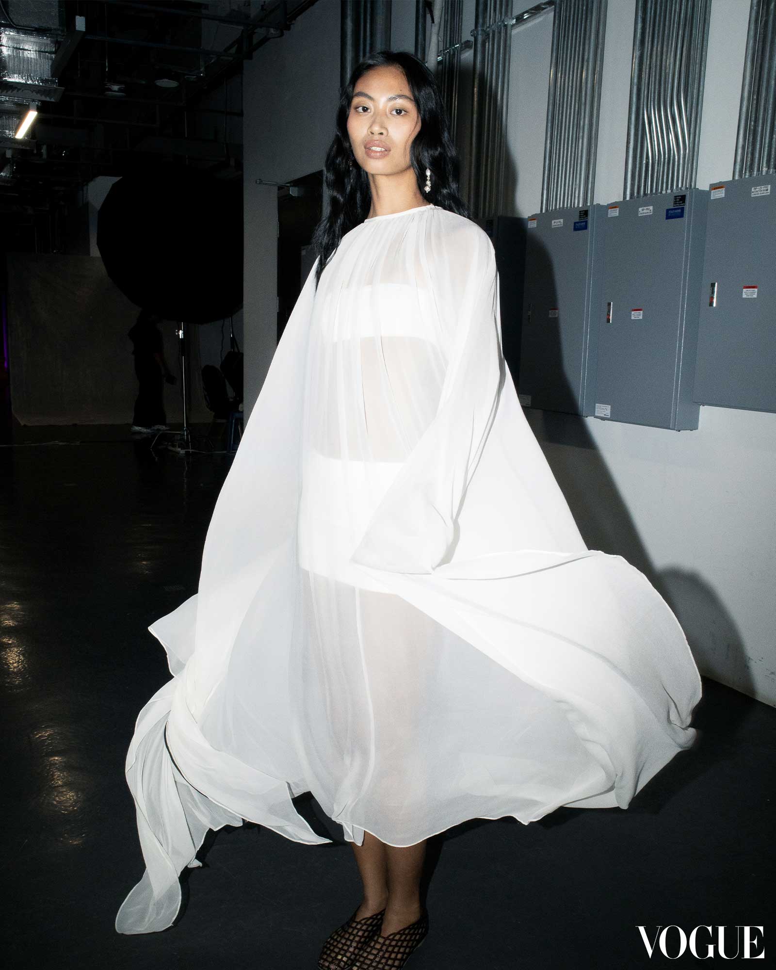 The range didn’t stop at color, either, as Martin looked to texture as a new medium of expression. Crumpled crepe and technical taffeta felt “rugged and edgy.” “[I thought], ‘How can that feel, you know, feminine and relatable for women today?’” he poses. “It was about mixing those two worlds and challenging, ‘What could this be?’”