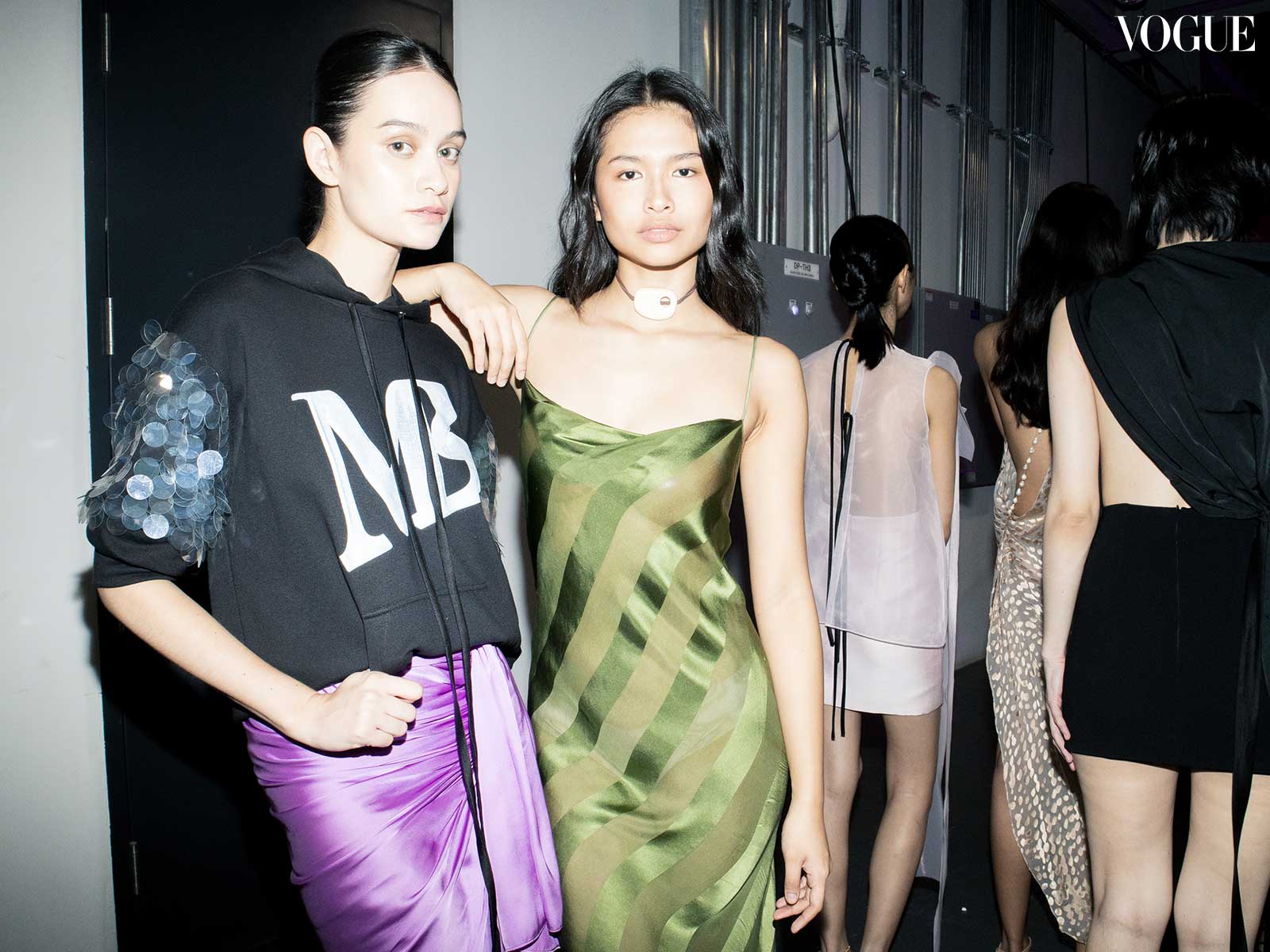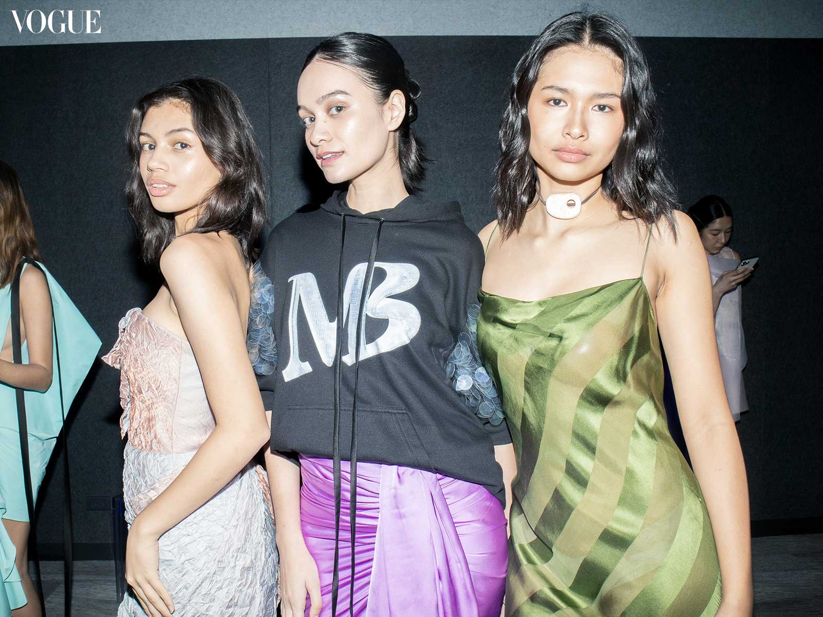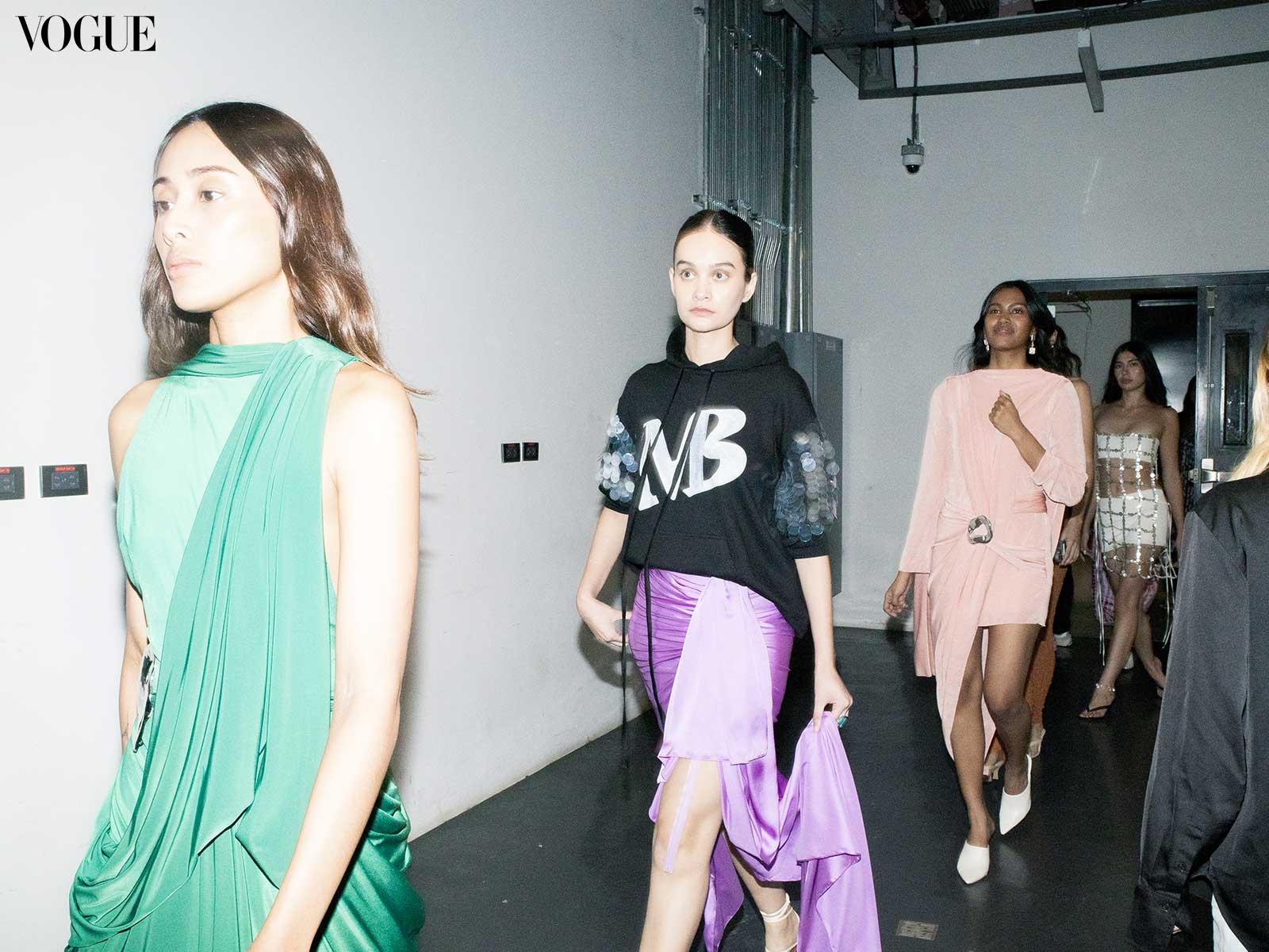 He’s describing the MB-emblazoned t-shirt and hoodie. Affixed with pailettes at the sleeves, they still held his tone, but he was still a bit hesitant about adding them to the final lineup. “I didn’t want to [put] a hoodie and a t-shirt in a show na puro [that was all] dresses, tops, and skirts,” Martin admits. “You know, parang I’m not known for it.” But they would serve as a sort of breaker to ultra-feminine forms, communicating his messaging in their simplicity.