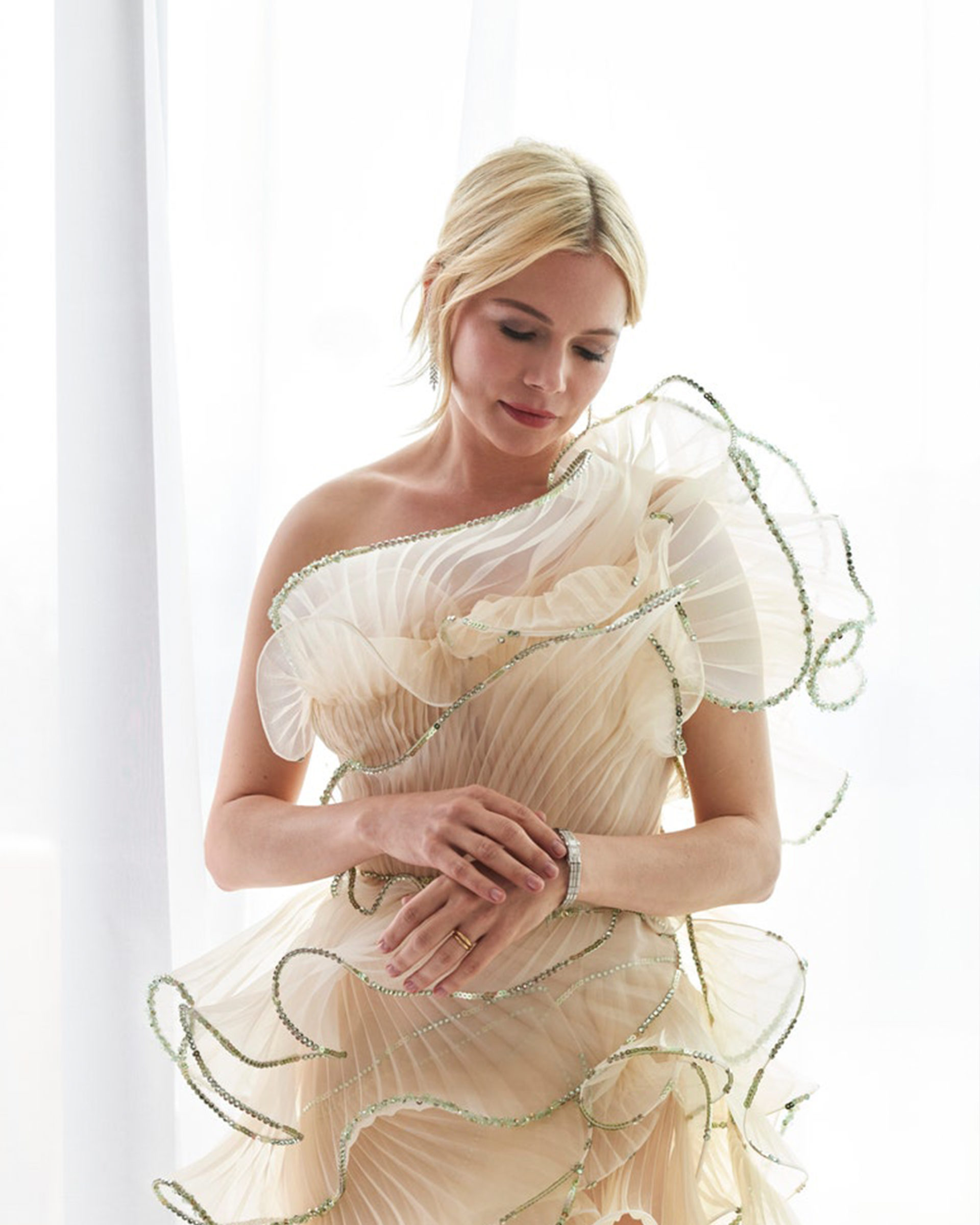 Williams tells Vogue walking the Golden Globes red carpet was a welcome break. “Red carpets are moments of escapism from daily life for me, so I try to have a bit of fun with it when I can,” she says, adding “This dress feels very special and the collaborative effort with the Gucci team and Kate was a great experience. I’m in awe of the craftsmanship that went into making it.”