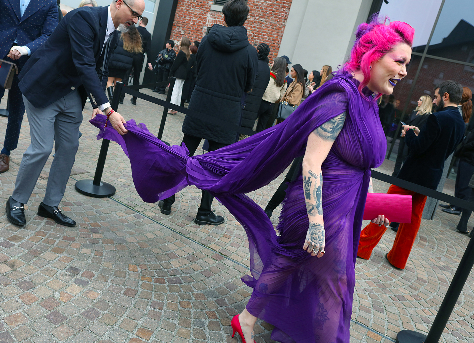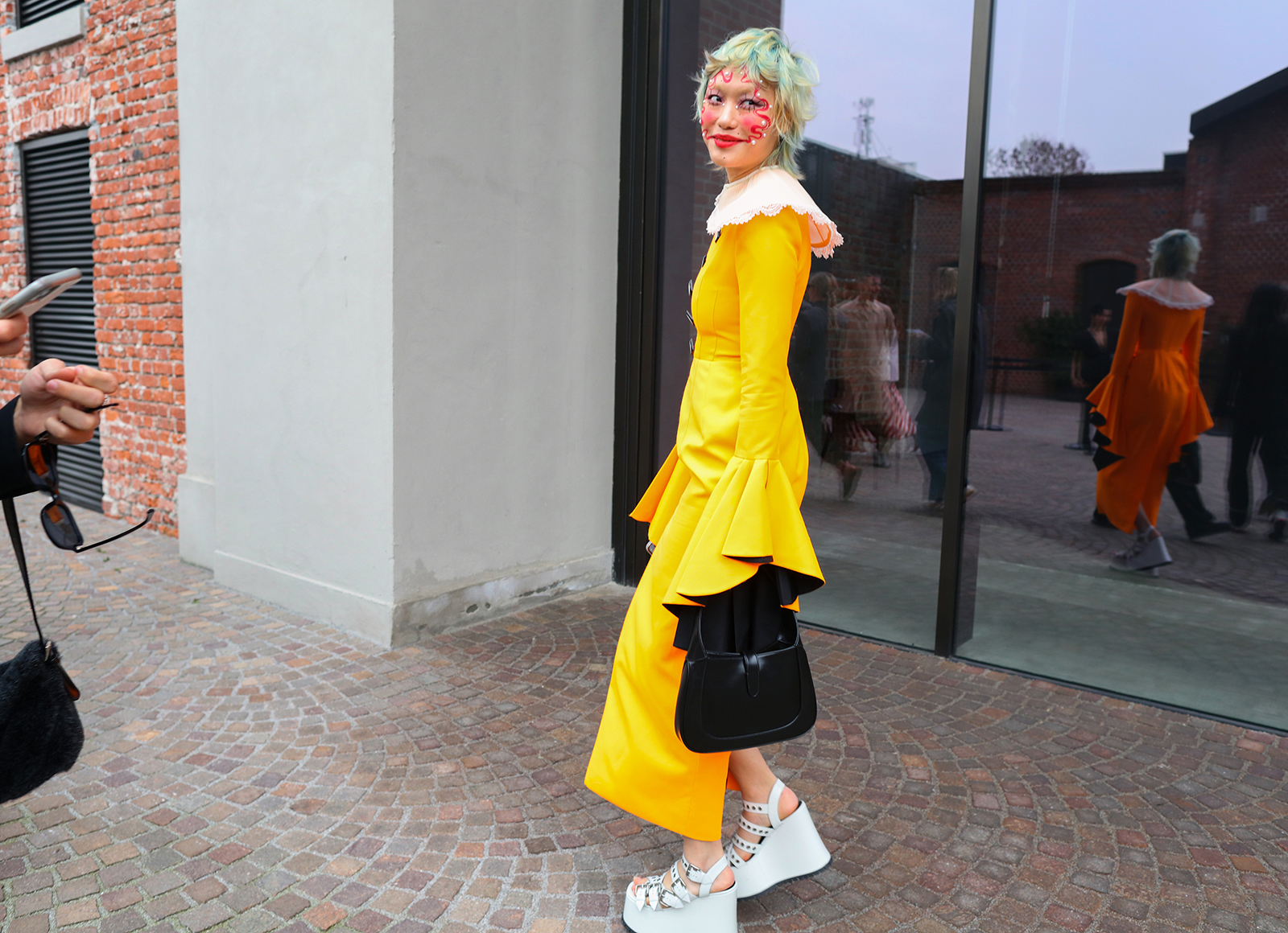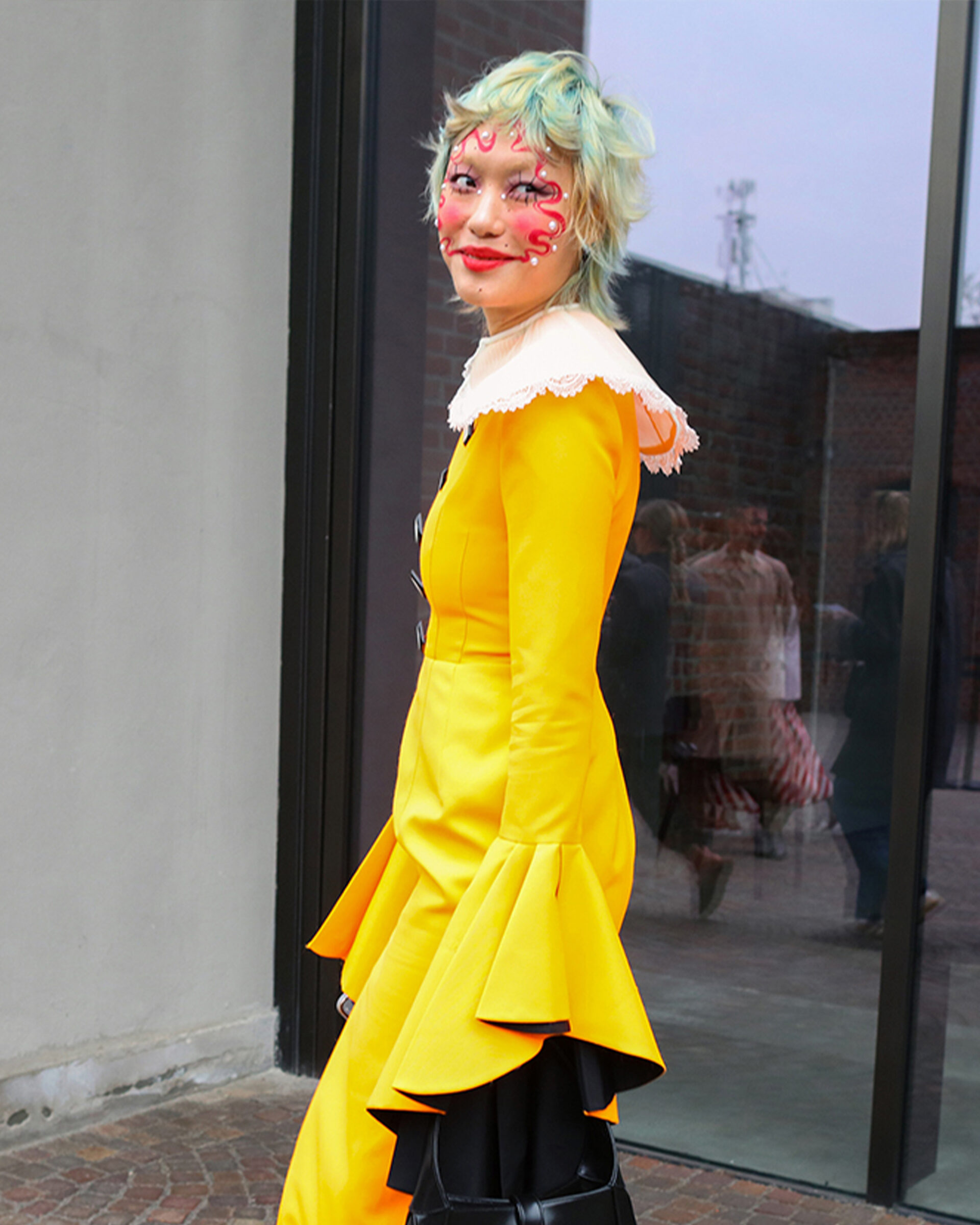 The more toned-down versions of the trend featured bleached eyebrows, still paired with a statement eye or lip color. However outlandish or held back these voguish attendees decided to go, it was clear that they fully committed to fashion’s ability to allow people to dream.
