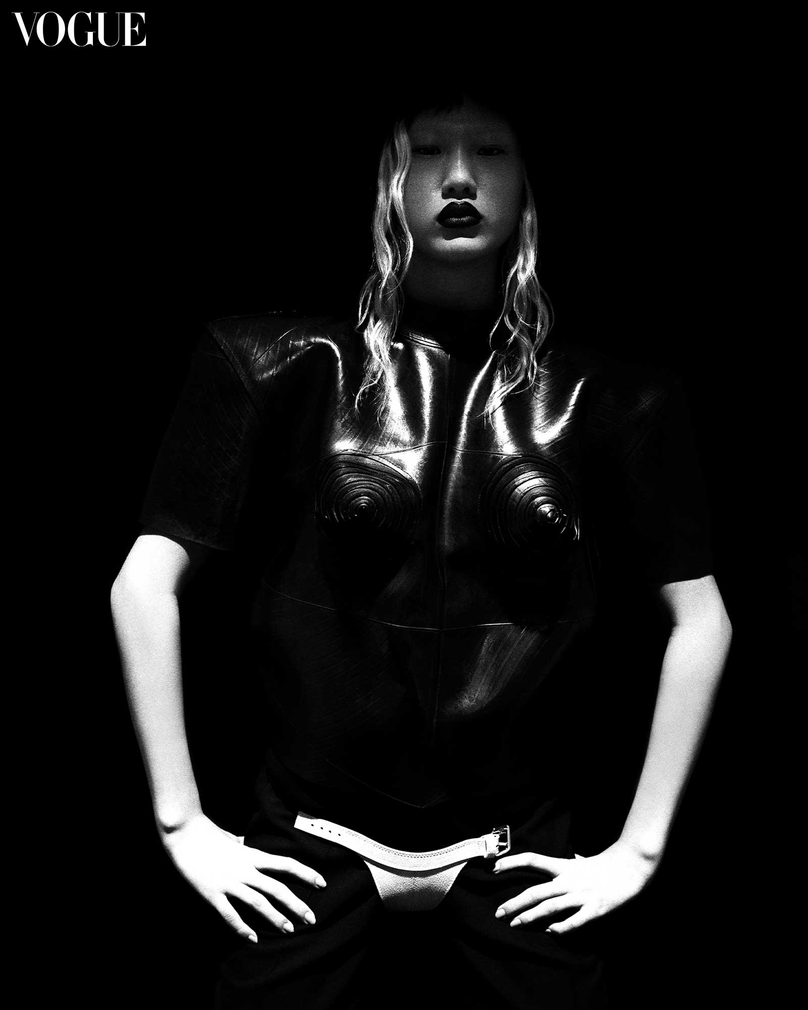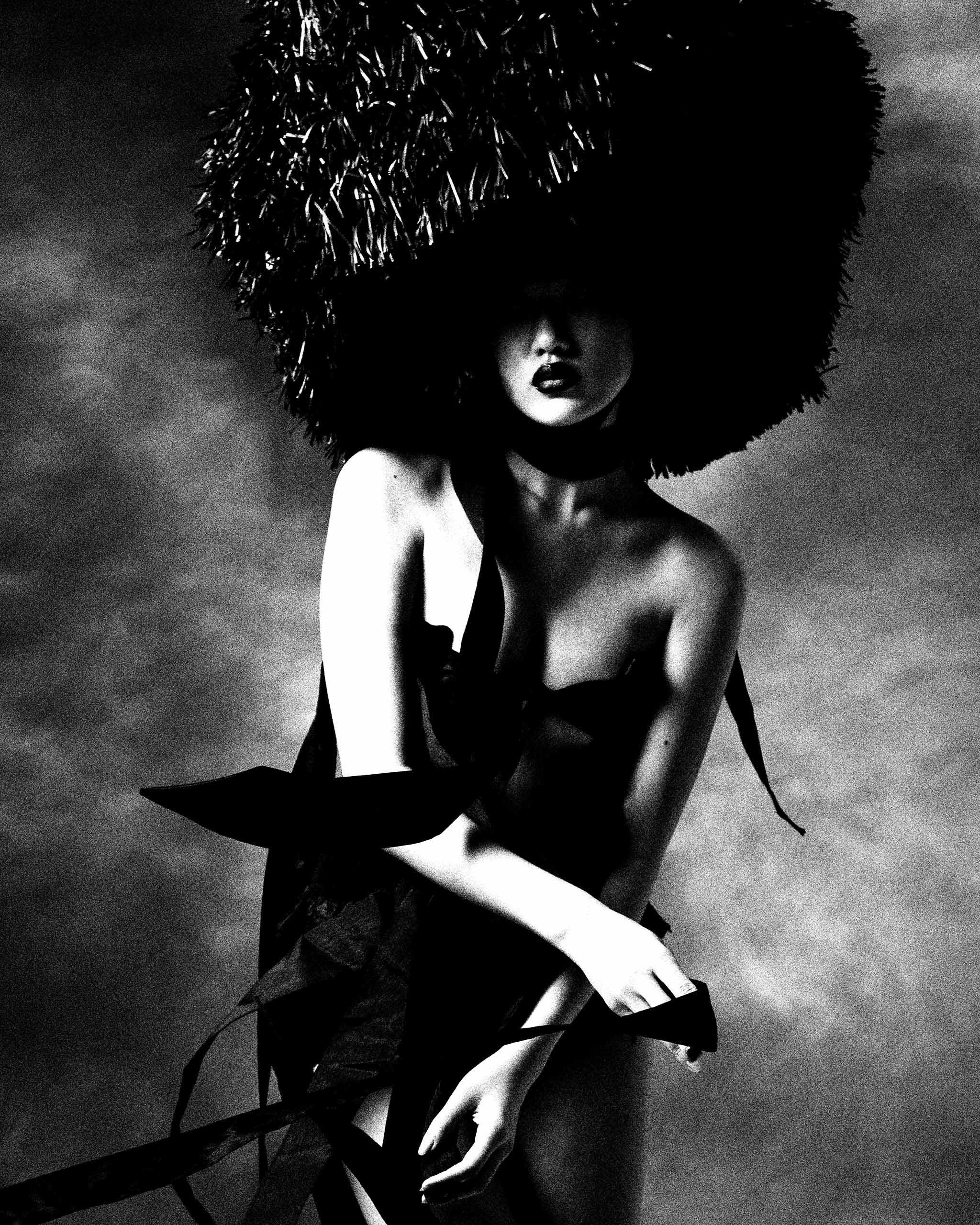 ESTUDIO DE DESIGN PAPELARIA head piece, BISPO DOS ANJOS corset and DOLCE & GABBANA hot pants. Photographed by Pedro Pradella, styled Alexandre Dornellas