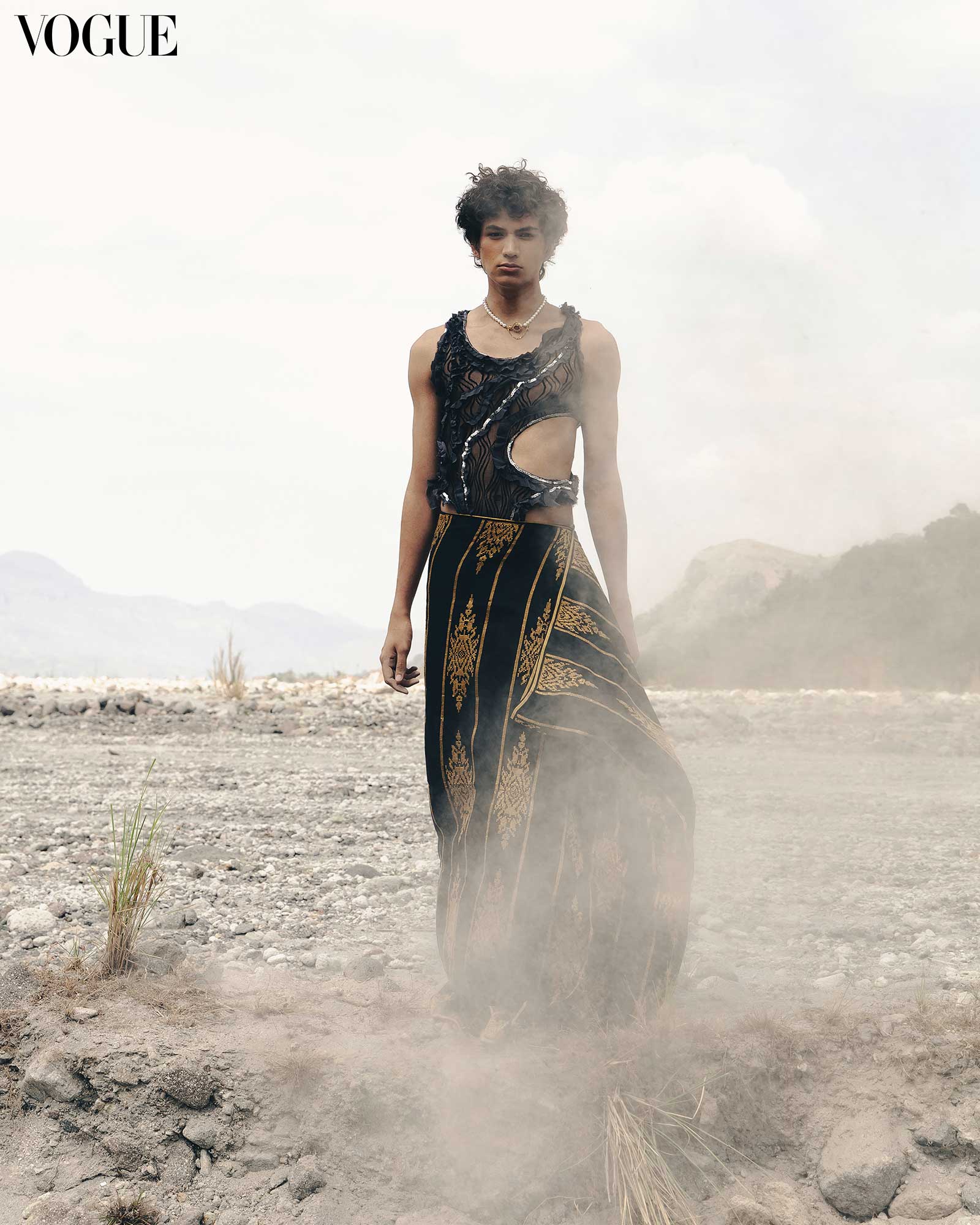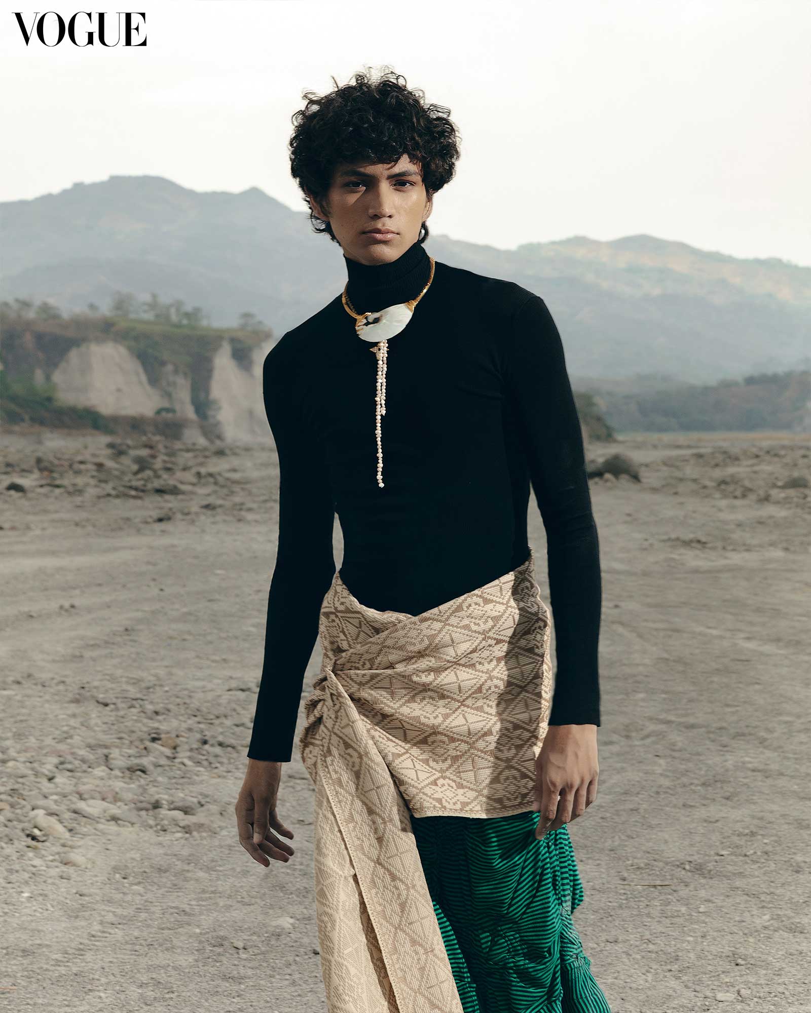 LOUIS VUITTON necklace, RAFA WORLDWIDE top, NARRA STUDIO Putri malong. Photographed by Borgy Angeles for the May 2024 Issue of Vogue Philippines.