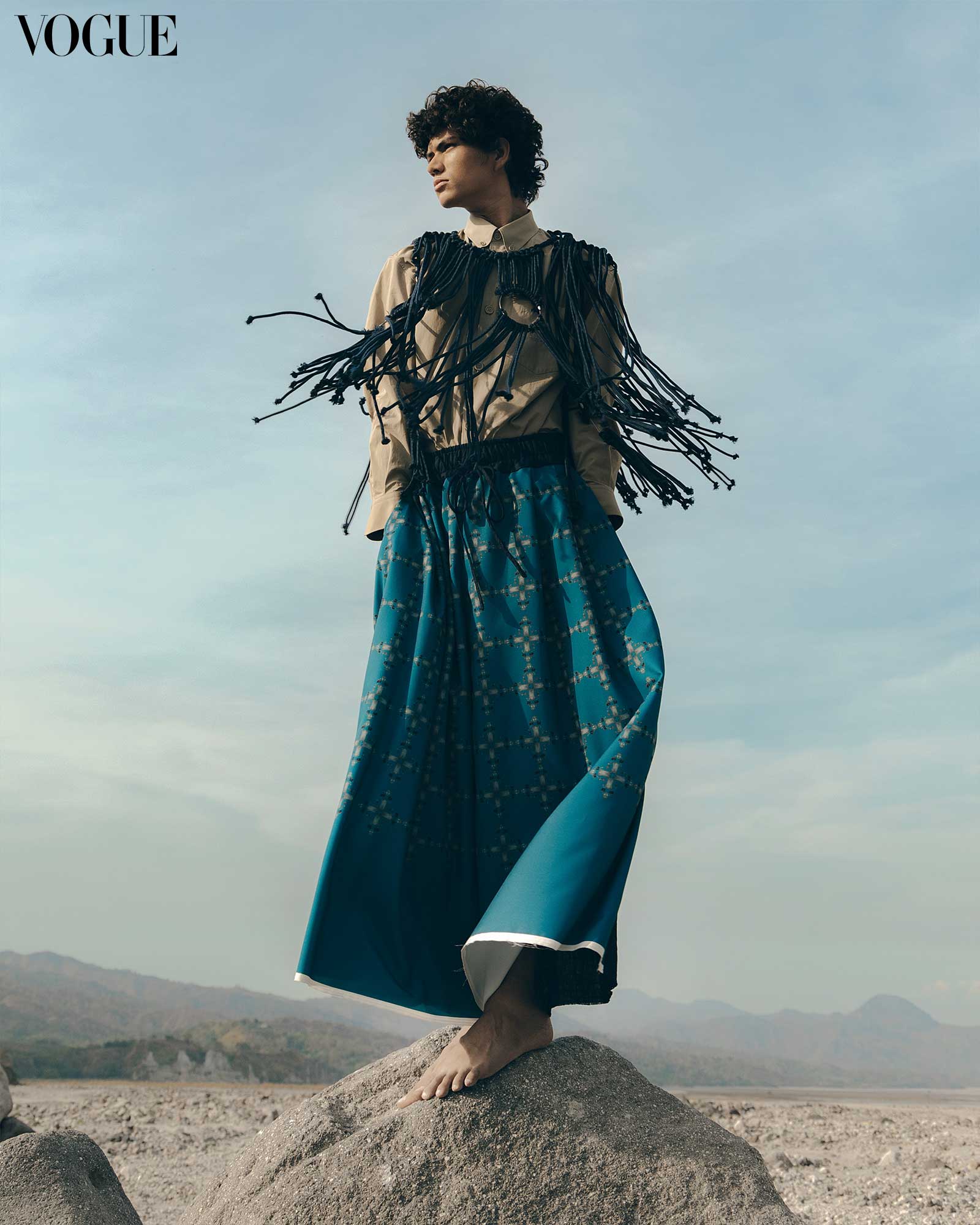 GUCCI shirt, LE NGOK bib, BITAGCOL trousers. Photographed by Borgy Angeles for the May 2024 Issue of Vogue Philippines.