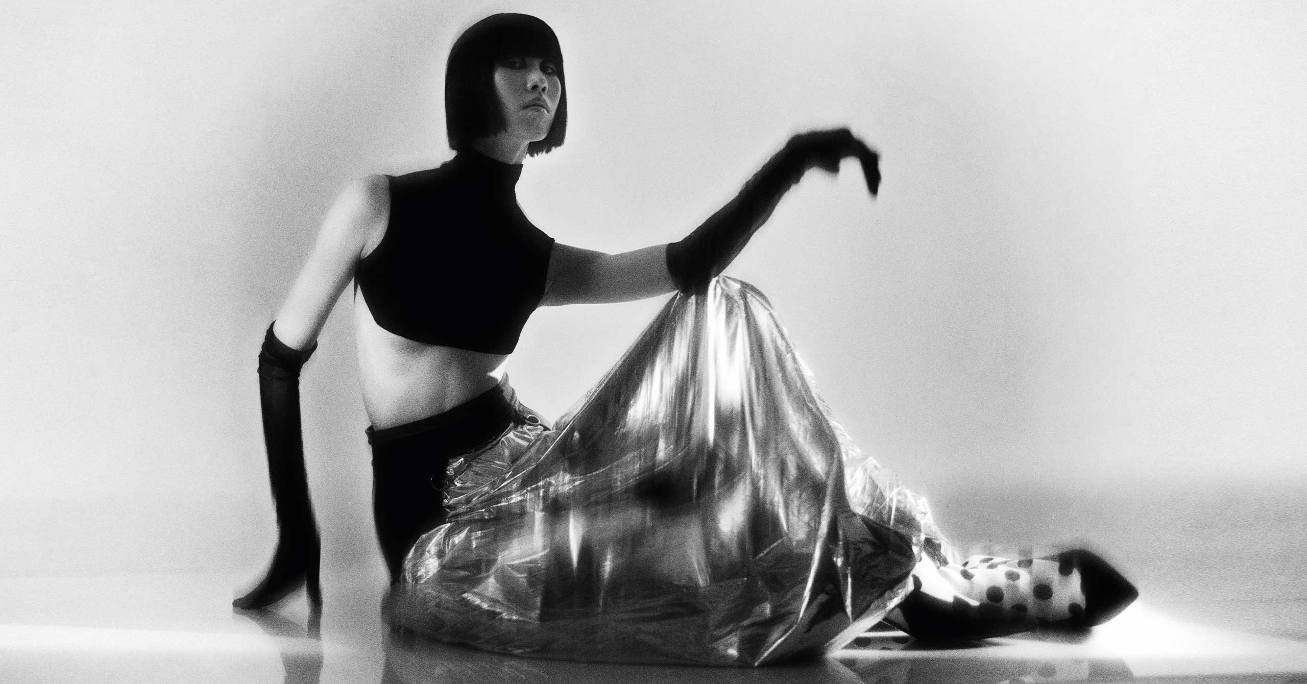In a fashion story for Vogue Philippines’ February 2024 issue, photographer Osman Ösel captures model J Moon between paper panels and the faint light rays that decorate a dusky wall. Stylist Peninah Amanda plays with weighty fabrics and printed surfaces from Marni, Versace, and Roksanda, formatting mediums through which light can bounce off and pass through.