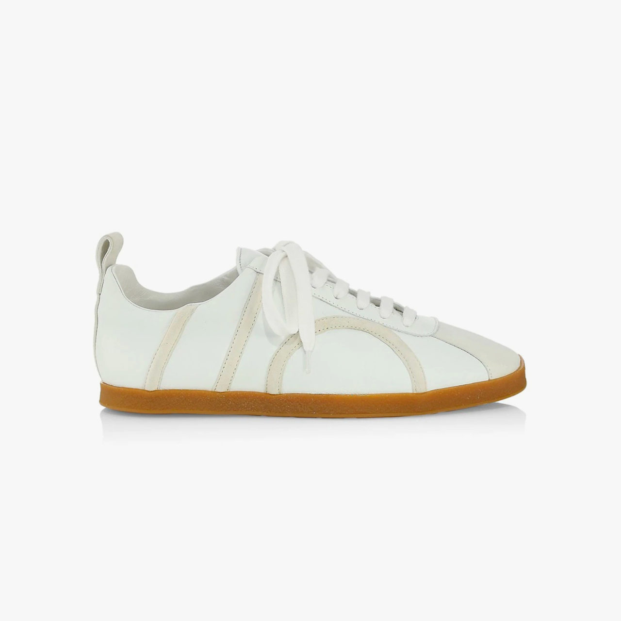 Buzzy brand Toteme is at the top of every It Girls’ wishlist—these sneakers, especially. Crafted with leather, there is suede piping that is shaped into Toteme’s graphic logo. Available here.