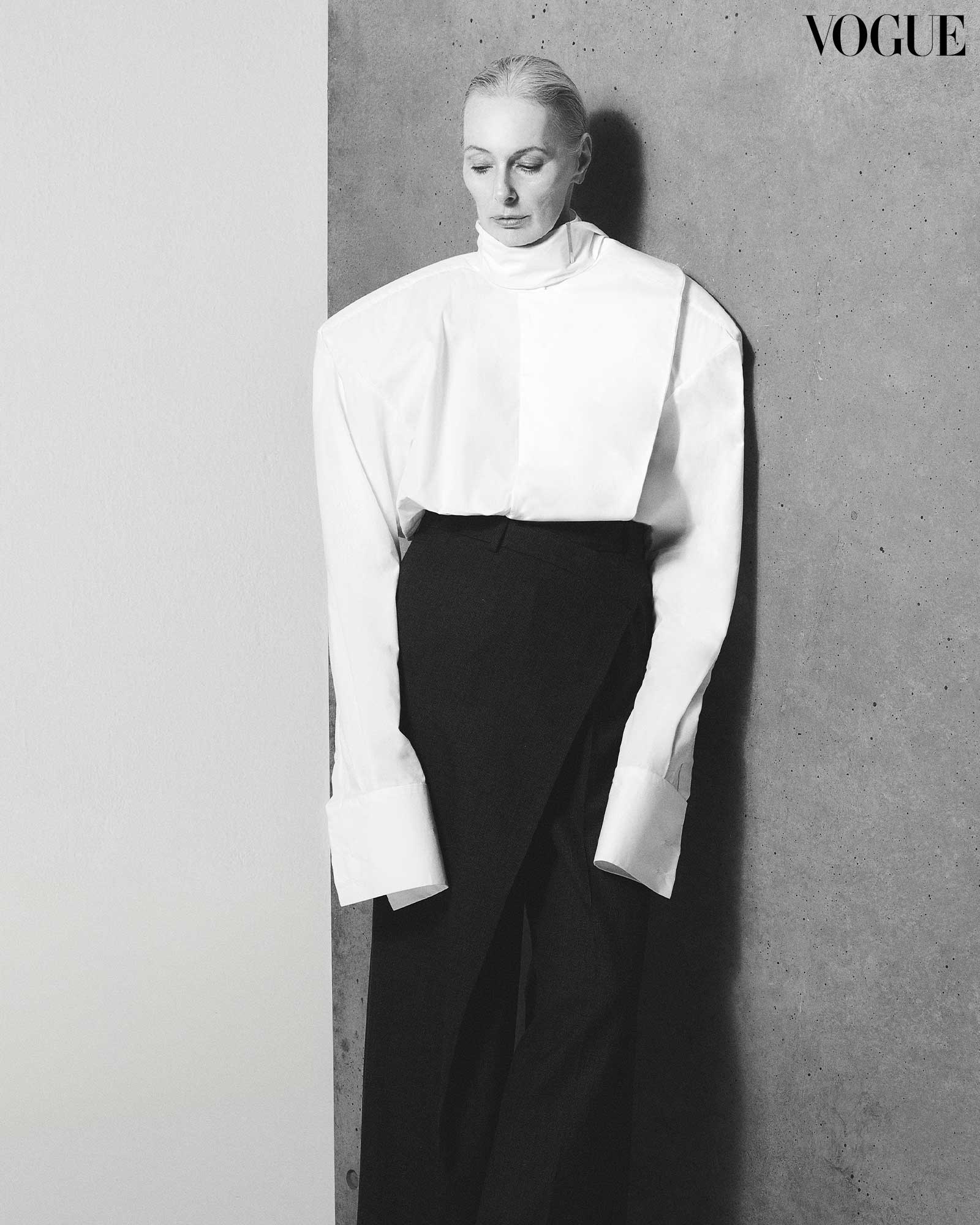LAURA CHLASS top, ACNE STUDIOS trousers. Photographed by Jakob Kotzmuth for the October 2024 Issue of Vogue Philippines