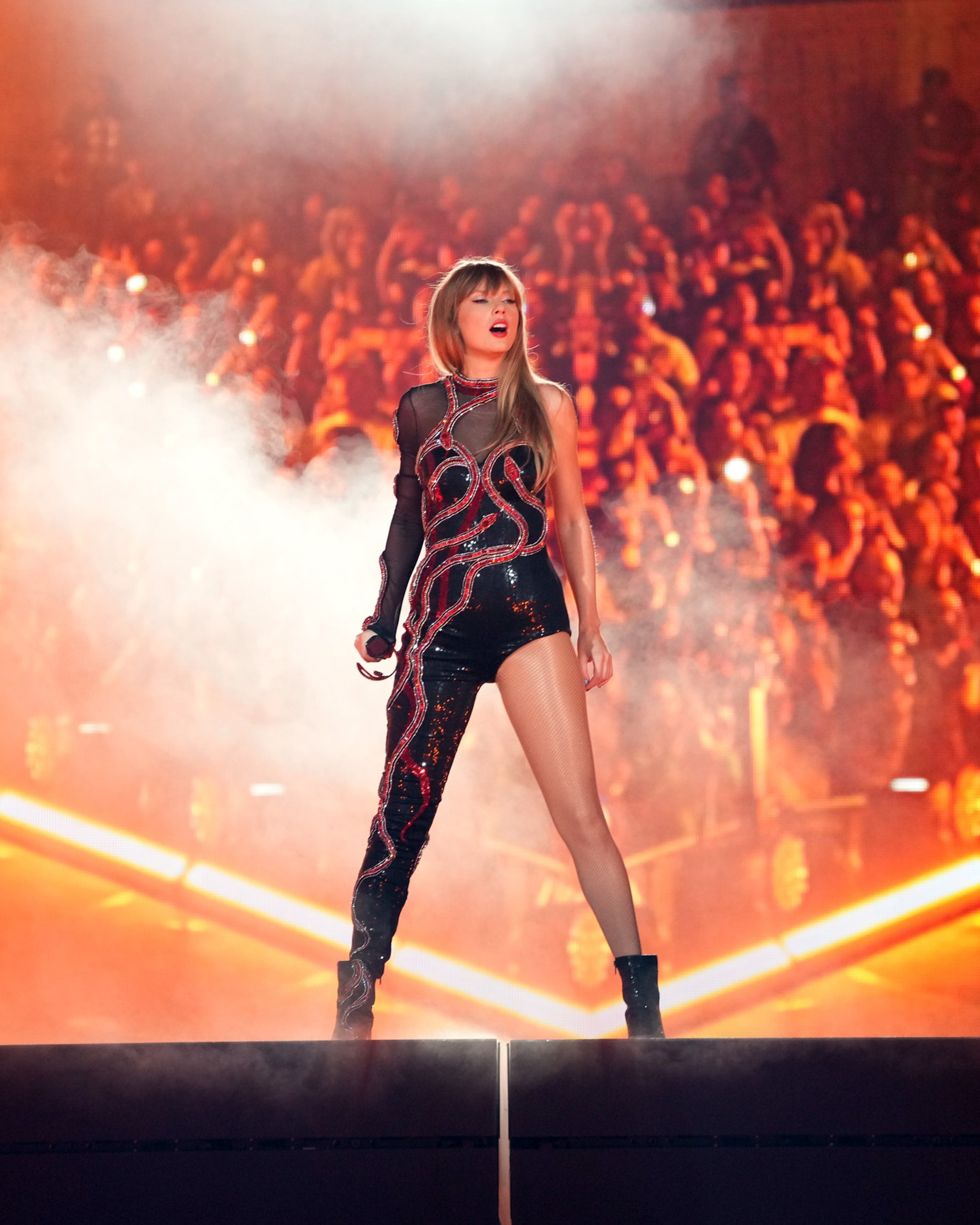 Swift famously adopted the slithery imagery during her Reputation era, when her haters flooded her social media with snake emojis. She reclaimed the term and symbol as a power move. “I wanted to send a message to you guys that if someone uses name-calling to bully you on social media, and even if a lot of people jump on board with it, that doesn’t have to beat you,” Swift said on stage during her opening night. (Fans have even been creating their own snake looks to wear to the show.)