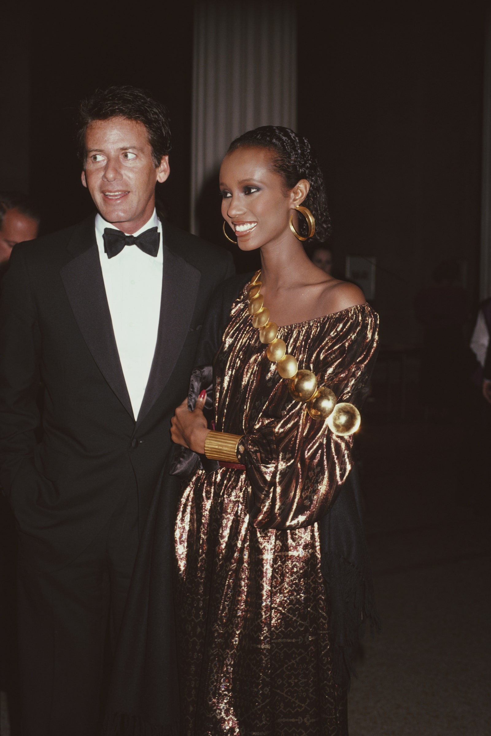Iman was a bronze goddess from head to toe when she arrived in 1981. With slicked back curls, a chic smoky eye and glossy lips, the model turned heads as she seemed to radiate light from every angle.