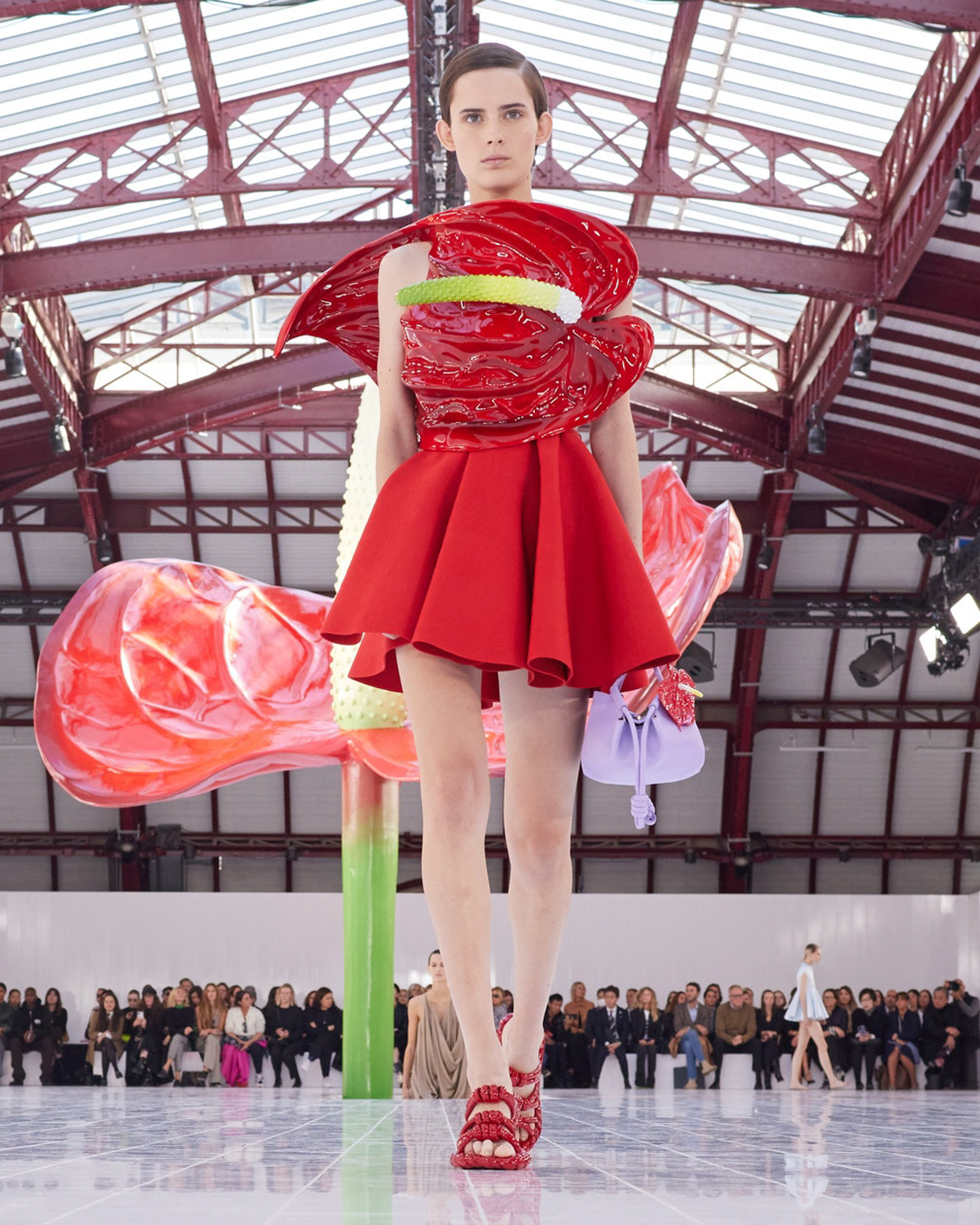 Whether with a new twist on a bouquet or with lifelike tropical flowers, Off-White (Ibrahim Kamara‘s debut collection), Loewe (with its giant anthurium) and Bottega Veneta transformed simple garments into blossoming works of art.