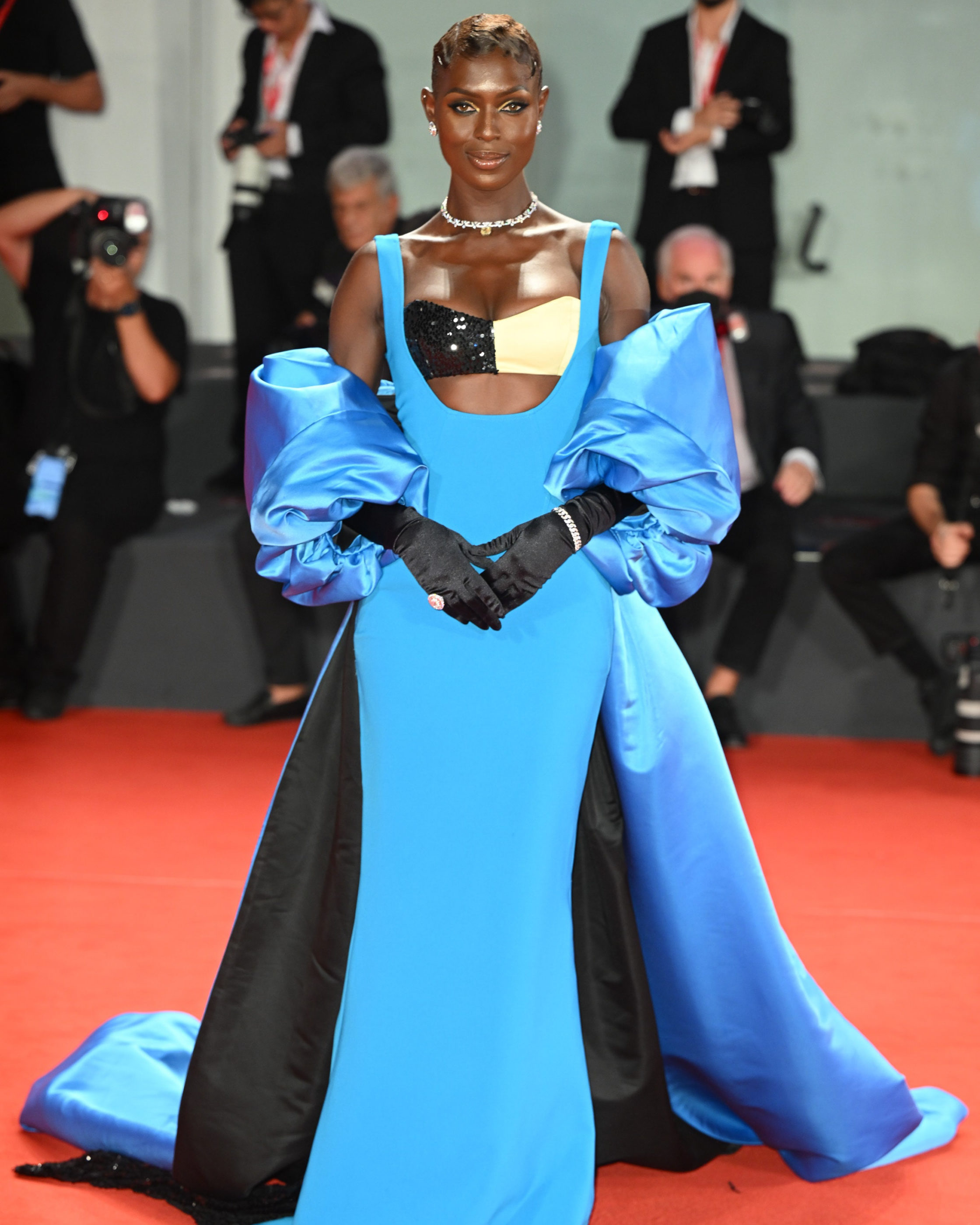 This was on full display at the Venice Film Festival this summer. Every day, Thompson and Turner-Smith stepped out in an ensemble more elaborate than the next. The duo would put Thompson in Interior’s hooded, black netted gown one day, then switch it up with Marc Jacobs’ metallic green ruffles the next. Turner-Smith pulled off denim Balmain evening wear (yes, really), then transitioned with ease into Christopher John Rogers’s abstract-print dress, complete with a dramatic train. Two words came to mind: Fashion drama!