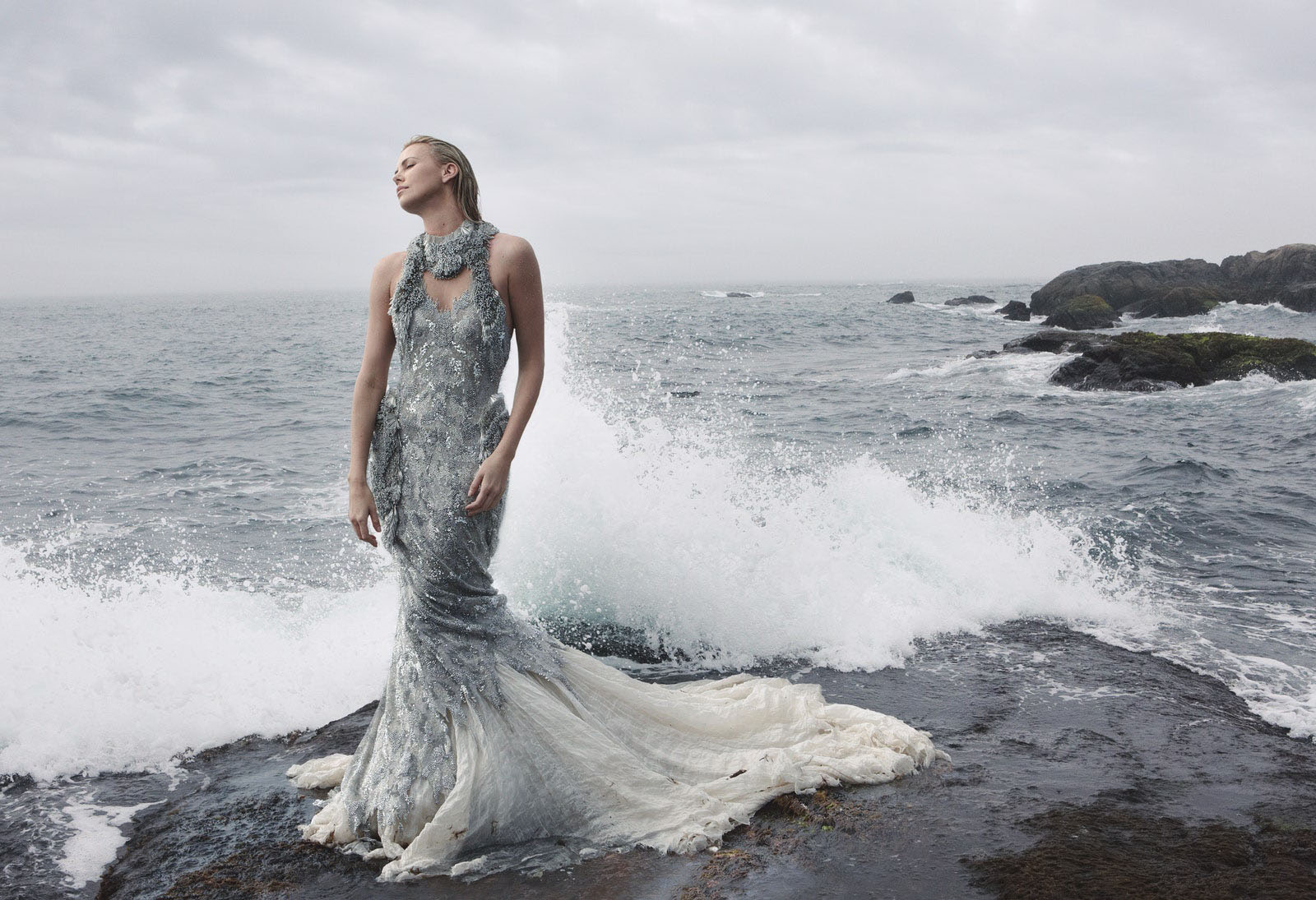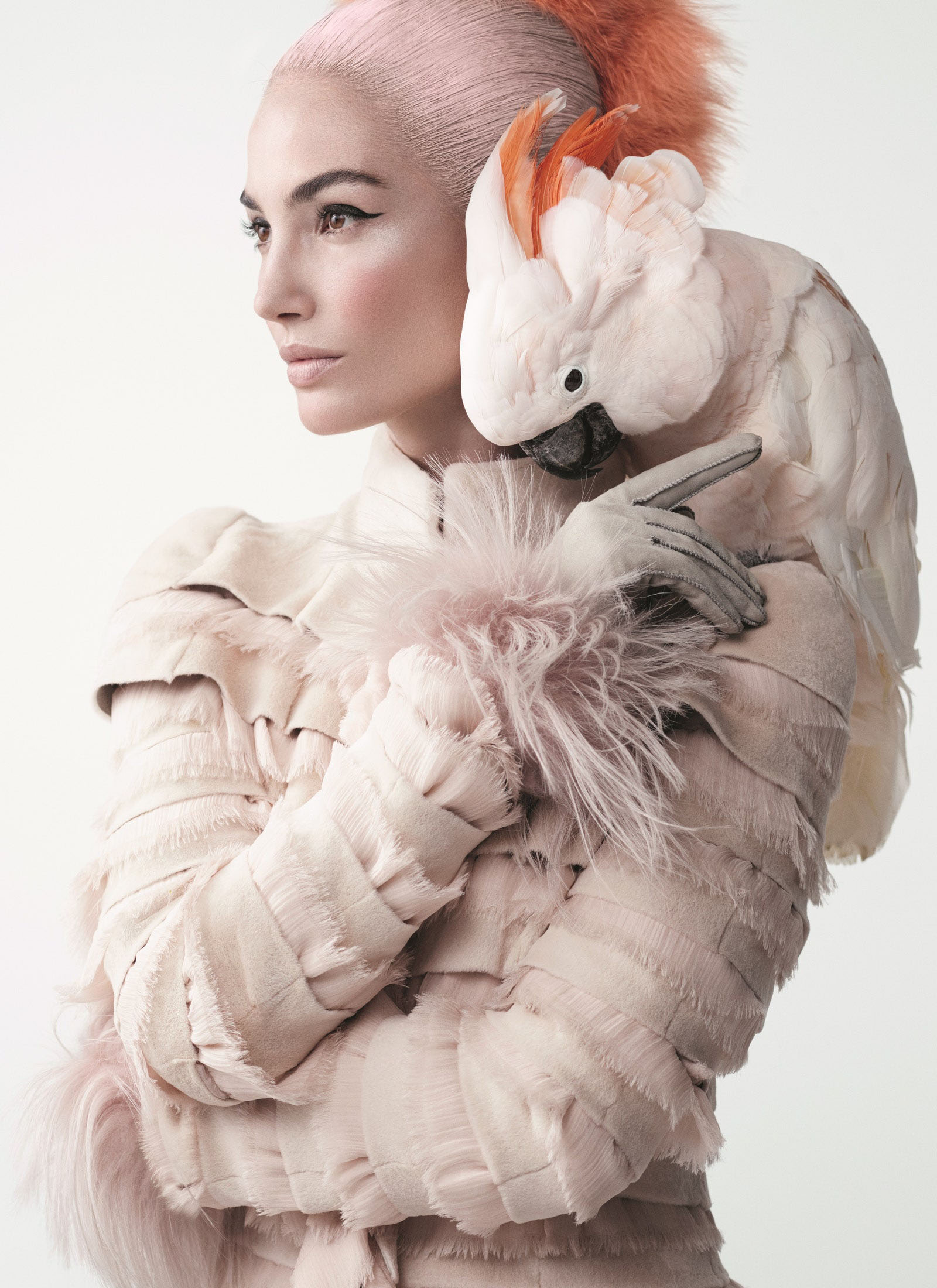 Lily Aldridge in an Alexander McQueen mink-and-shredded-chiffon coat Photographed by Willy Vanderperre, Vogue, October 2015