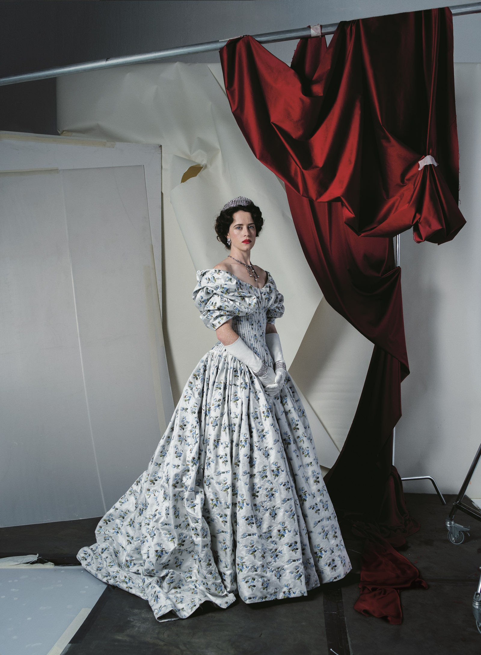Claire Foy in an Alexander McQueen dress and gloves Photographed by Tim Walker, Vogue, December 2017