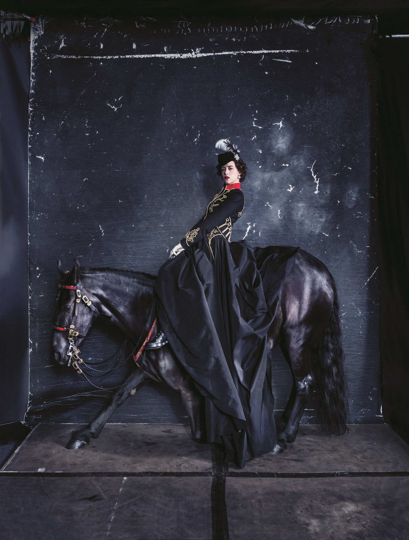 Claire Foy in an Alexander McQueen jacket, skirt, and boots Photographed by Tim Walker, Vogue, December 2017
