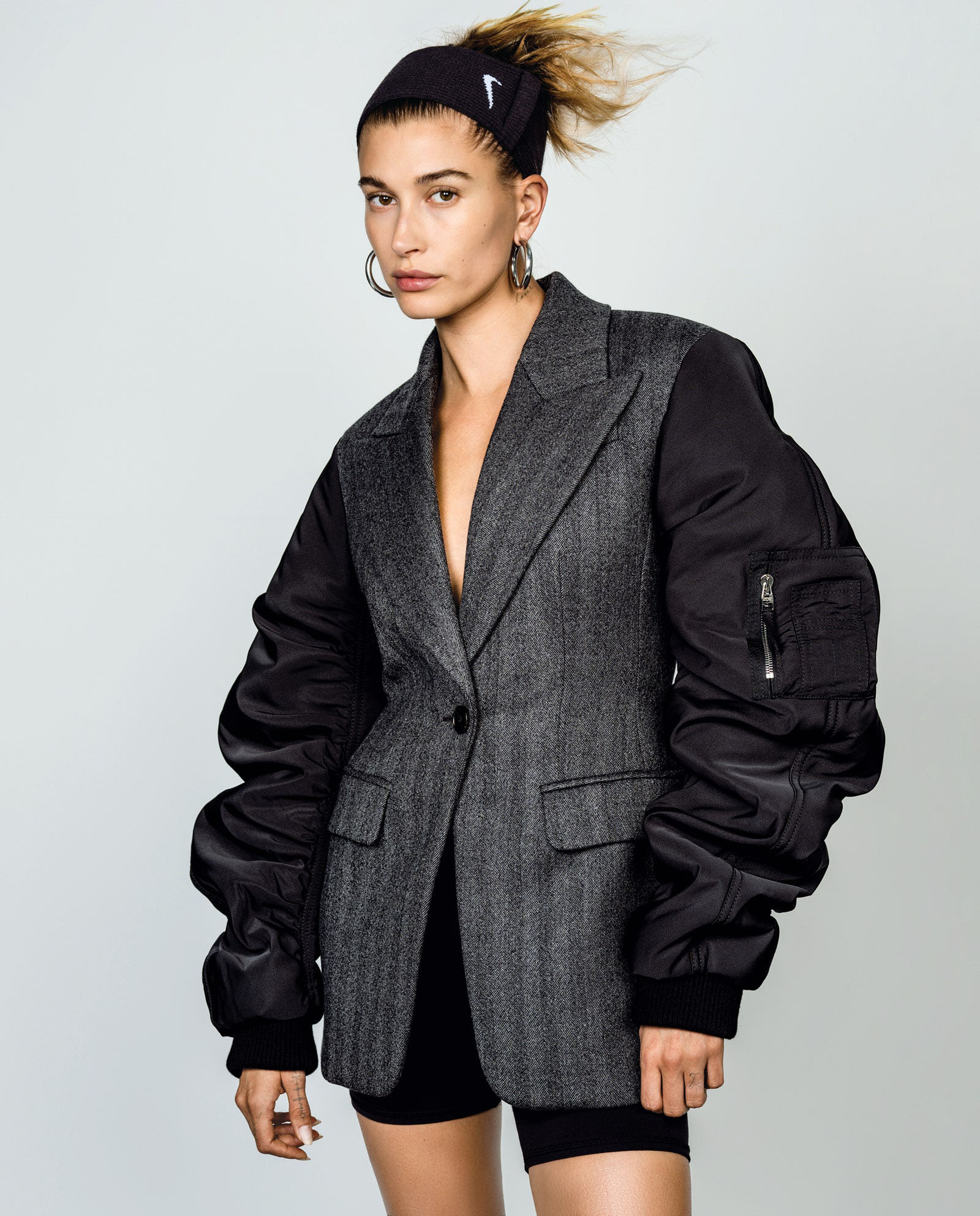 Hailey Bieber in an Alexander McQueen jacket Photographed by Stefan D. Ruiz, Vogue, August 2021