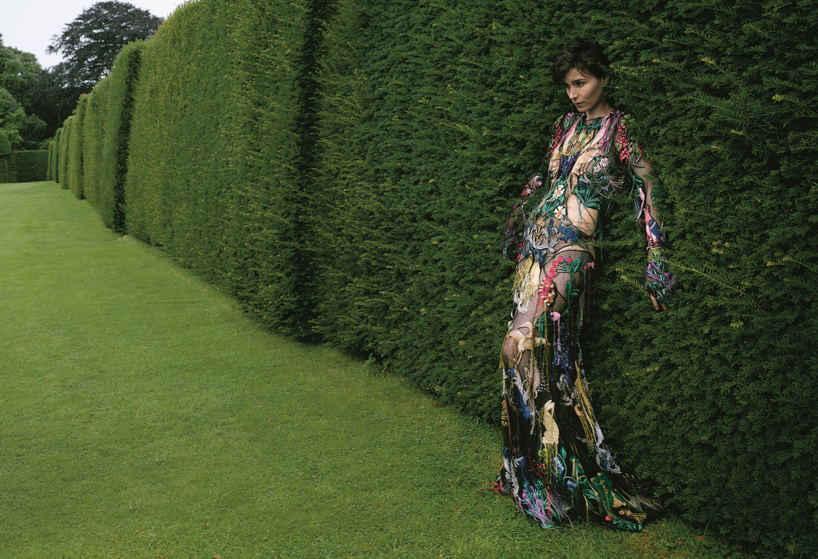 Rooney Mara in an Alexander McQueen dress with medieval motifs Photographed by Annie Leibovitz, Vogue, October 2017
