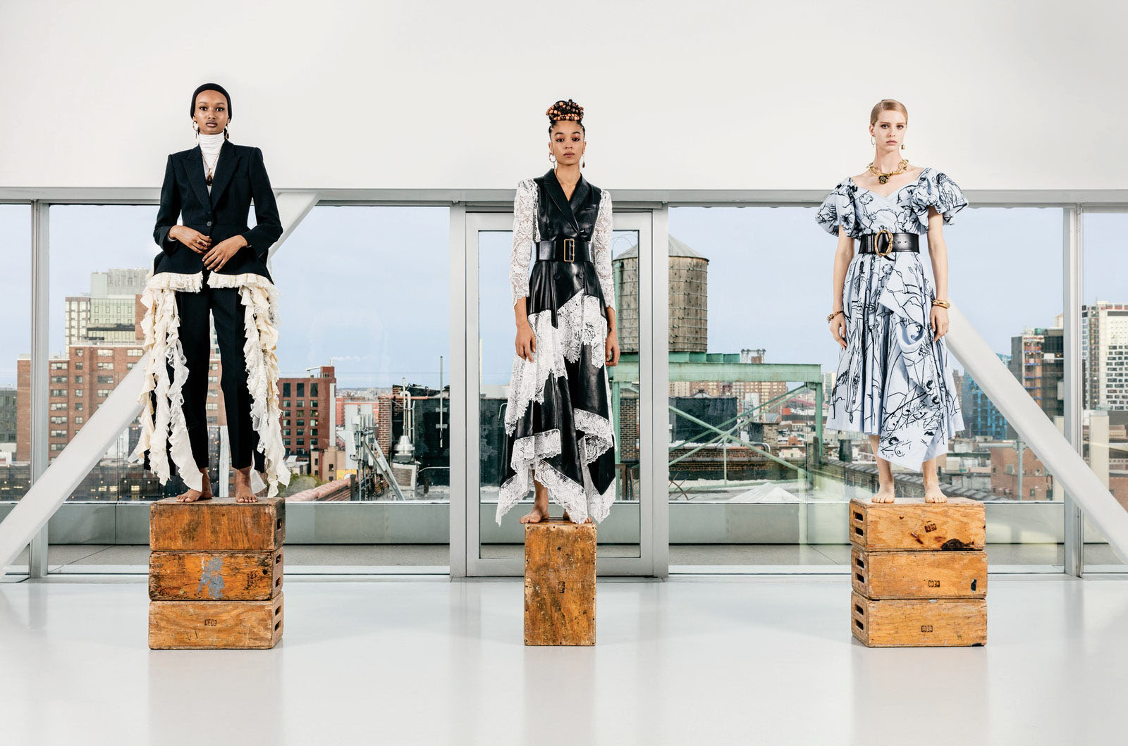 Ugbad Abdi, Indira Scott, and Abby Champion in Alexander McQueen Photographed by Stefan D. Ruiz, Vogue, January 2020