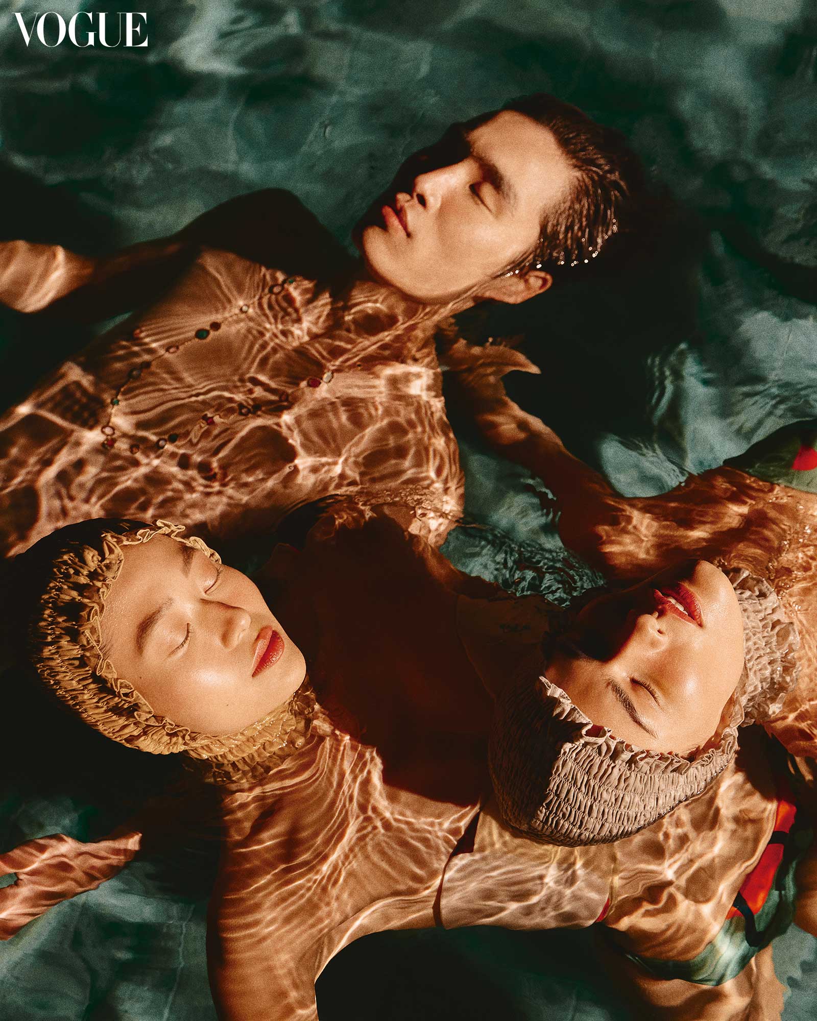 CHANEL hair band, JW ANDERSON dress, CALZEDONIA socks, and vintage swimfins from MINHA AVÓ TINHA. Photographed by Jonathan Zamora and styled by Alexandre Dornellas for the July 2024 Issue of Vogue Philippines.