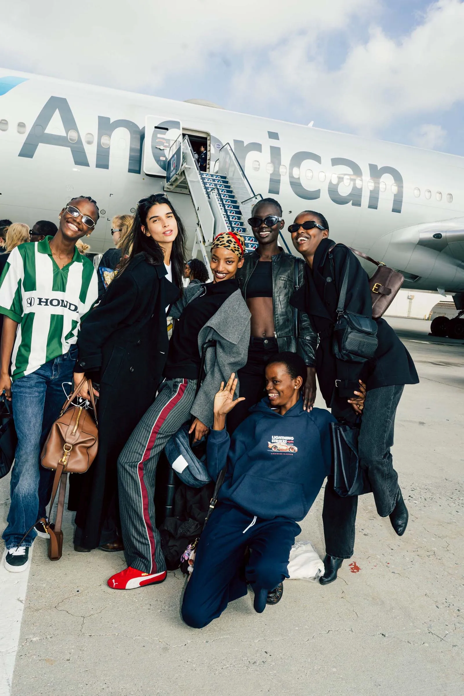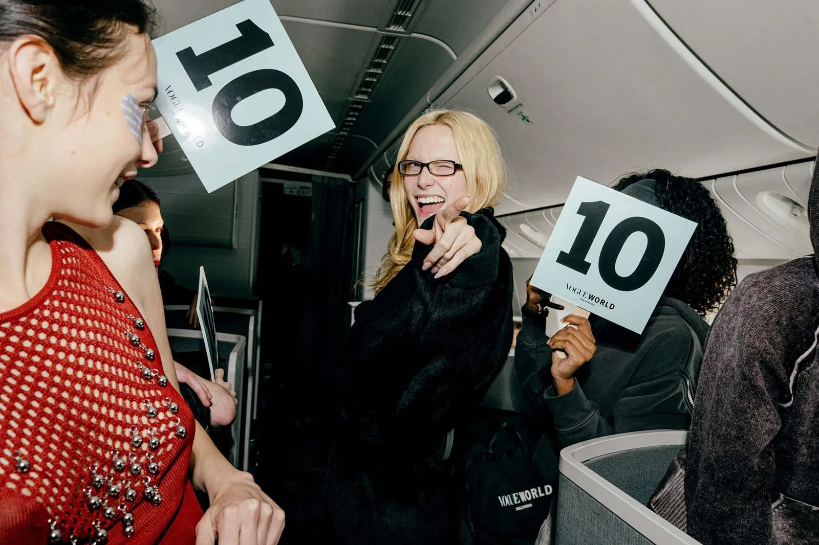 All aboard Vogue Airlines! Or, to be more specific, the private American Airlines shuttle that flew models, hair and makeup teams, and Vogue staff from JFK to LAX just in time for Vogue World: Hollywood. Luckily for all of you, what happens on Vogue Air doesn’t exactly stay on Vogue Air: Here, Florence and Irene recap the ultimate flight of fancy.