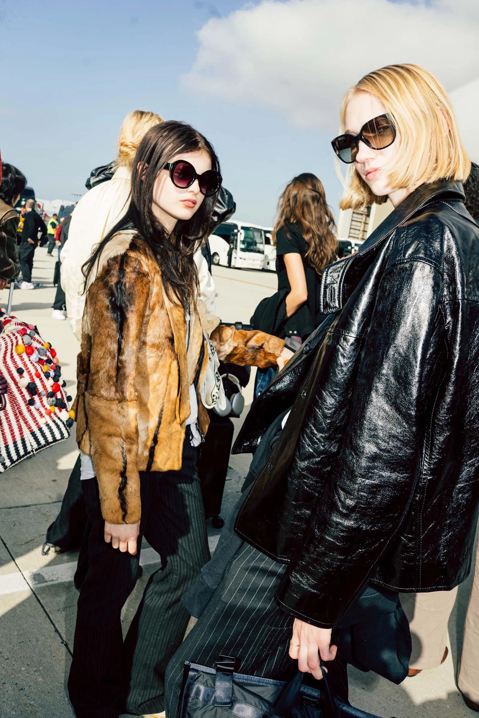 The line to board is long—so long, in fact, that we get stares from the other travelers at the airport trying to navigate around us. Then, after we’ve all found our seats, Vogue casting directors Iggy and Morgan are ready to let the models rest…until one of them, Lulu Tenney, tells photographer Acielle Tanbetova that she’s ready to shoot. Still, we let the girls rest for a few minutes before they have to get to work. At about the same time, we discover that we’re not seated together on the plane. This actually works out in our favor, because it means we can get our own beauty sleep instead of spending the entire six-hour flight gossiping.