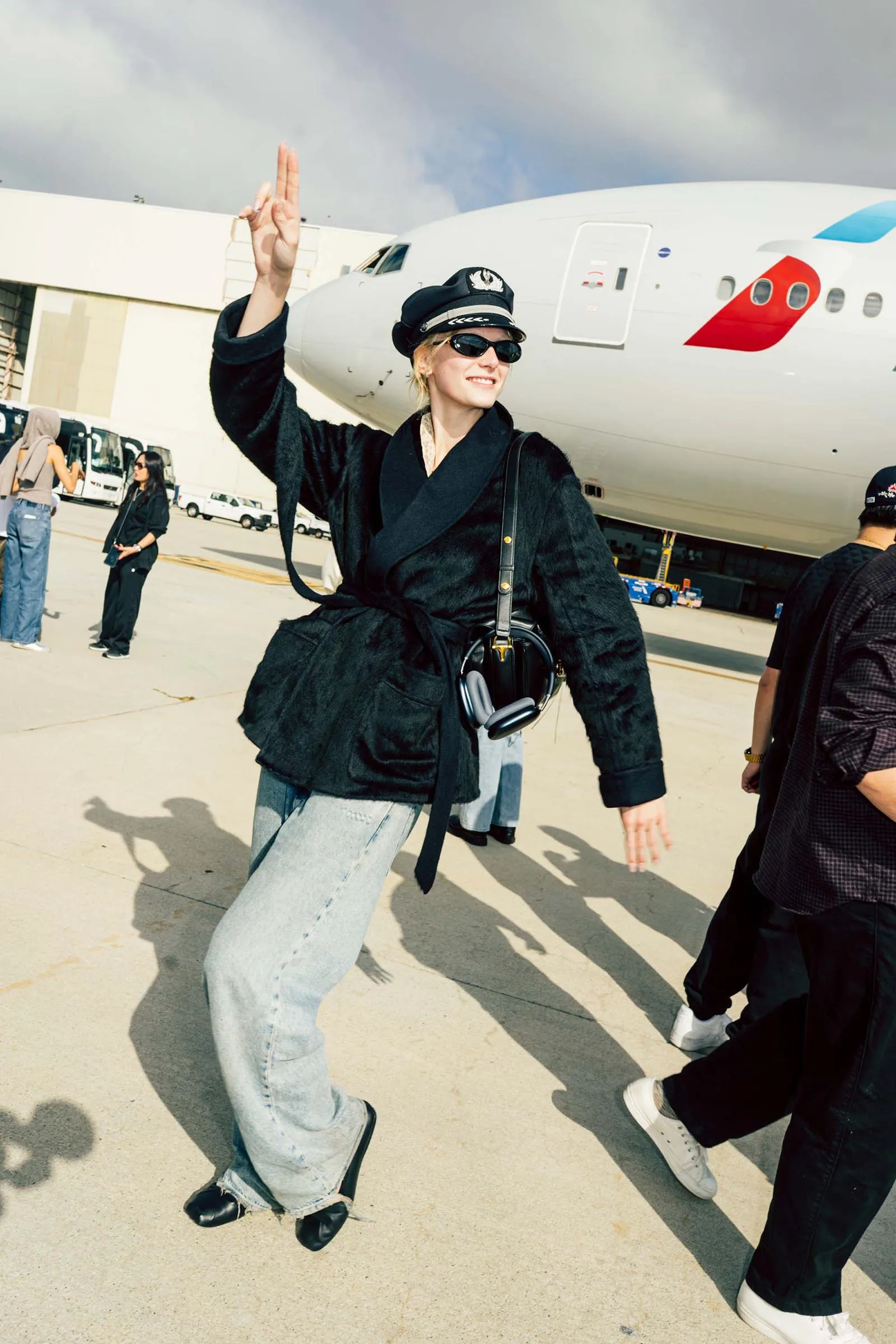 With hardly a bump, we land at LAX and the American Airlines Vogue World: Hollywood express has reached its final destination. But the fun is really only beginning, as we deplane directly onto the tarmac to see Alex Consani waving a Vogue World: Hollywood flag out the window of the cockpit to welcome us to Los Angeles. An iconic end to an iconic journey. Until next time, American Airlines!
