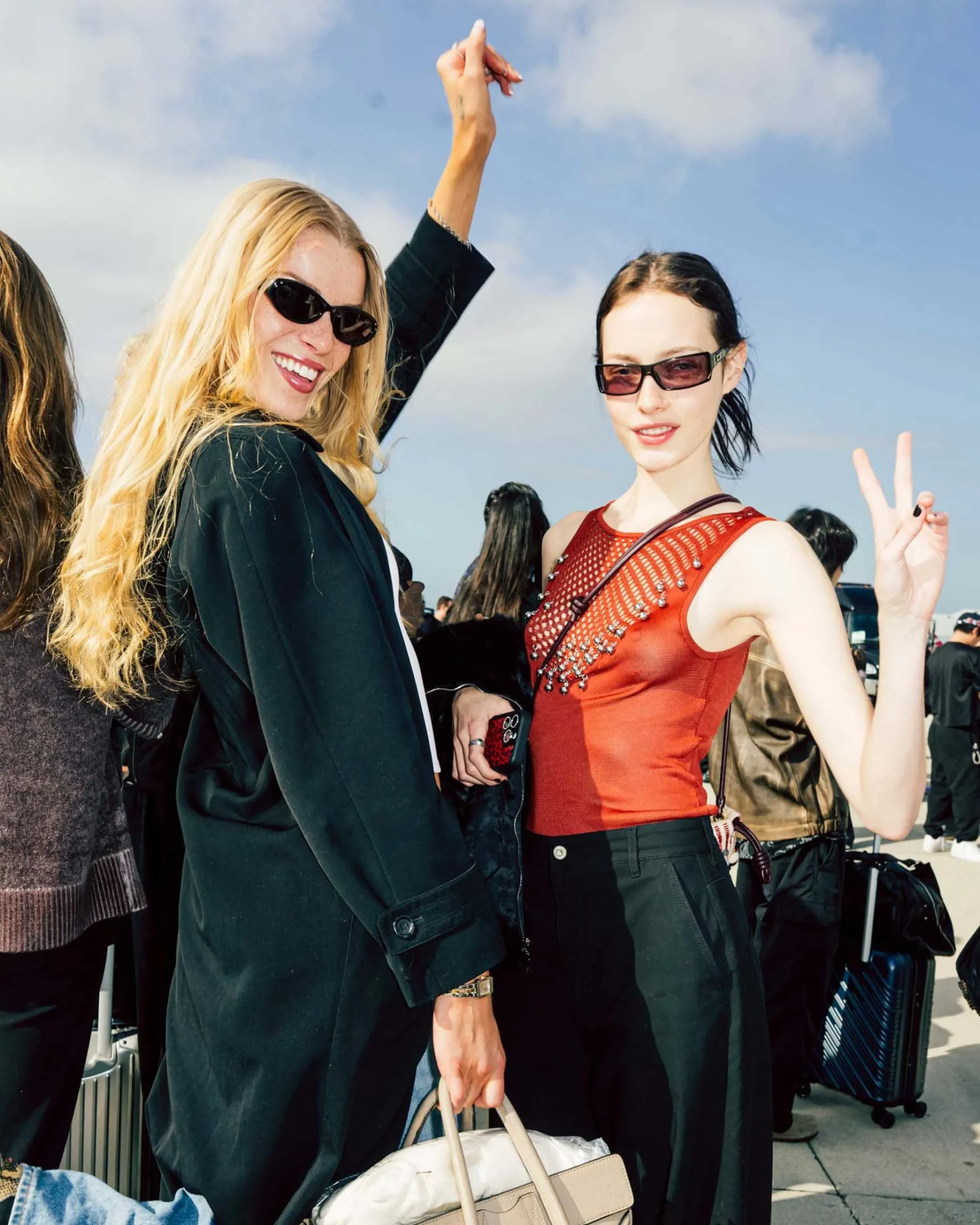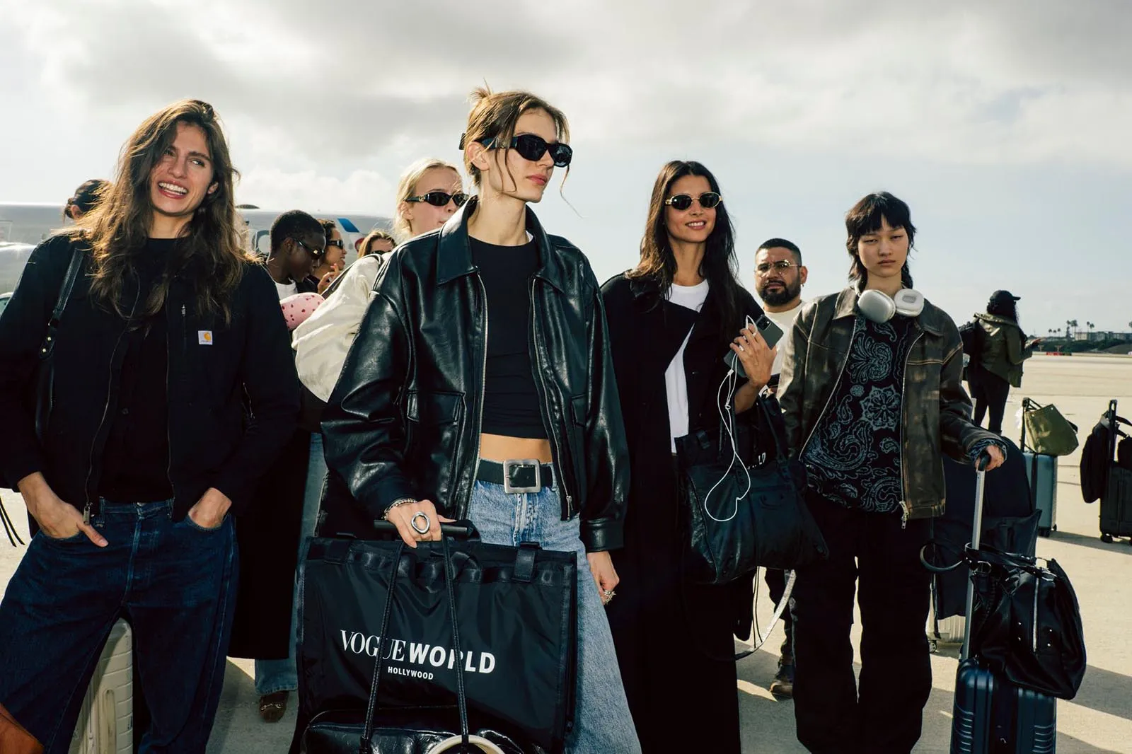 We arrive at the airport at 4:30 a.m. The line to check in for Vogue World: Hollywood is long, despite the fact that we’re 30 minutes ahead of our call time. We don’t mind waiting, however, because the excitement is through the roof and we feel very VIP with our dedicated Vogue World check-in. In line we already see some of fashion’s biggest names, including Liya Kebede, Lila Moss, and Alex Consani, all waiting to get their seat assignments for Vogue Air.