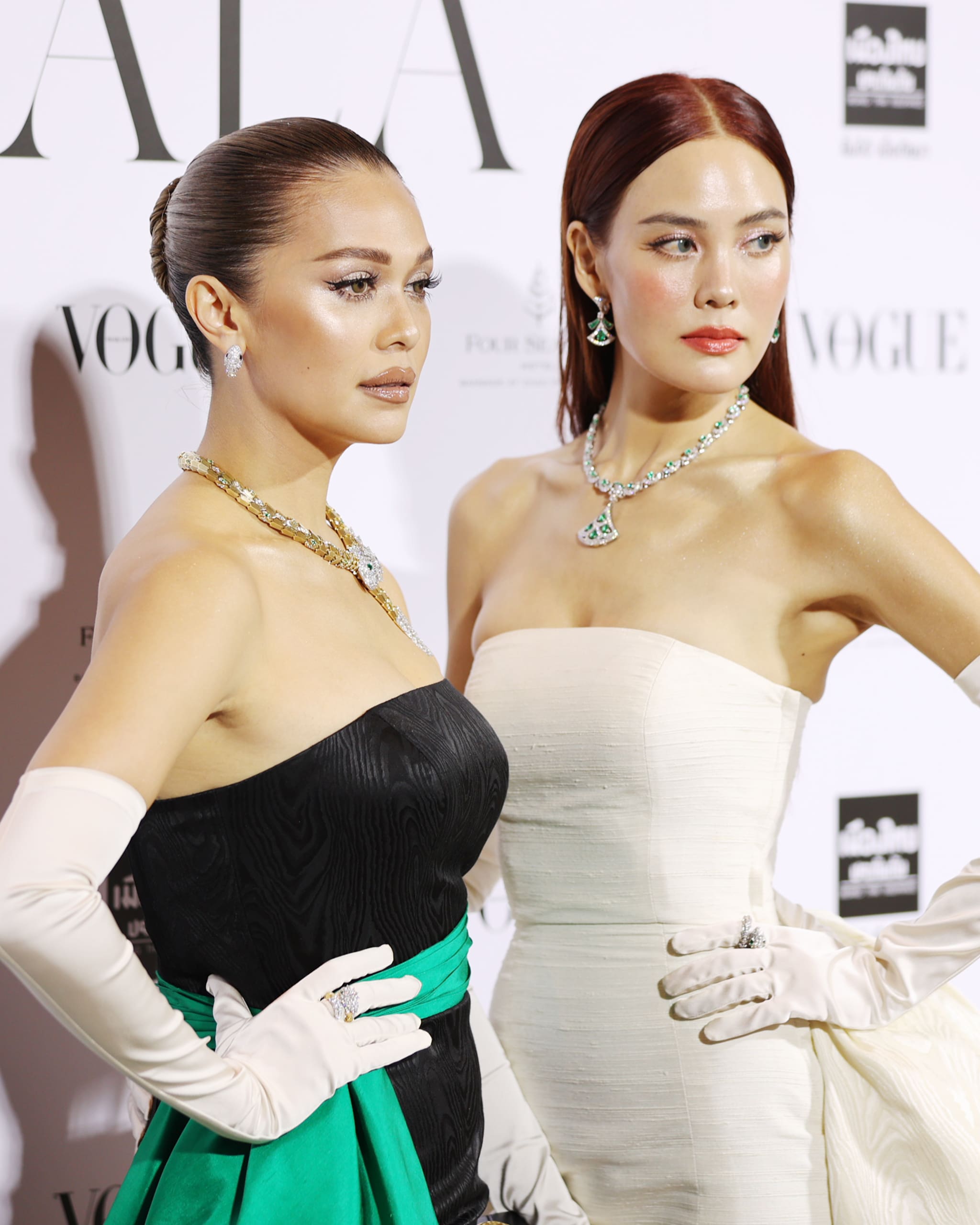 Other attendees included Thai actors like Kimberley Anne Woltemas (The Unidentical Twins), Phakphum Romsaithong (KinnPorsche), Diana Flipo (Buang Hong), Janie Tienphosuwan (Plerng Boon), Thanapob Leeratanakachorn (May Who?), and Sky Wongravee (My Ambulance). Members of the Bulgari international team also graced the event, wearing Thai fabrics.