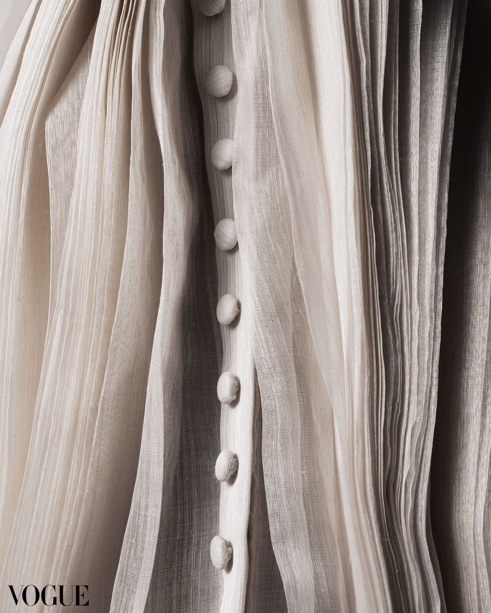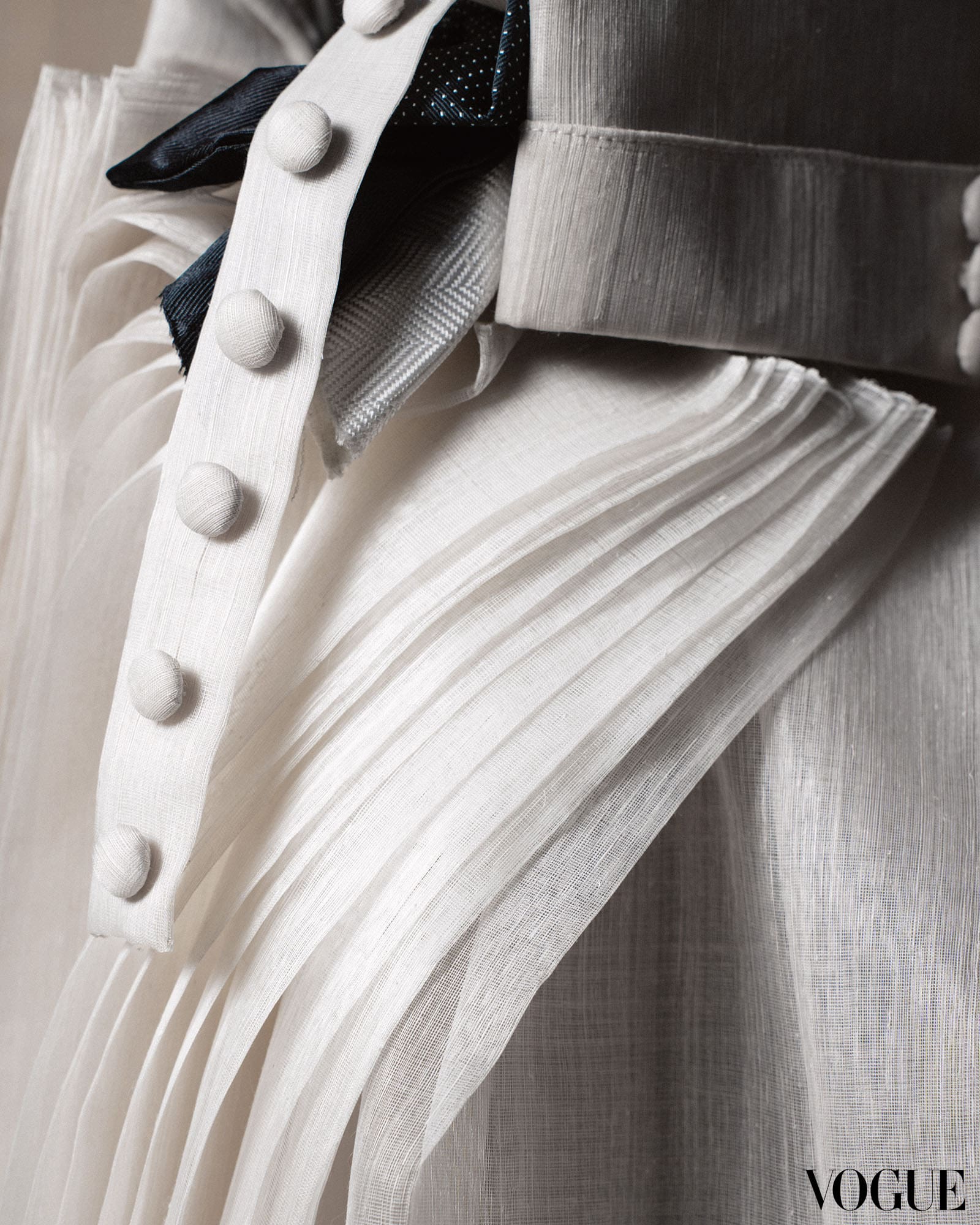 Using piña, Joey employs the bookleaf technique that has figured in past works, including a skirt in Vogue’s September 2024 feature on the terno. In this particular context, he calls to mind the pages of Philippine history that “despite the tears and the snags, [makes] you understand where we came from and where we’re headed.”