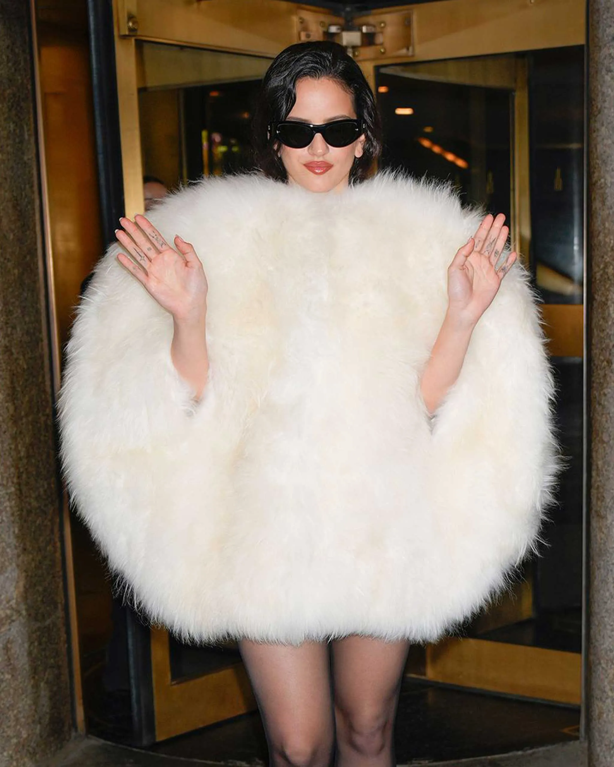 A quick deep stalk later, and it became clear Rosalía has never worn a bad outfit. Whether it’s a full Celine puff-ball coat moment or ballet tights paired with Miu Miu heels, she can truly do no wrong. On top of speaking 13 languages (a true renaissance woman), her mix of custom couture, tutu skirts, slogan tees and oversized sunglasses has cemented her as my new style obsession.
